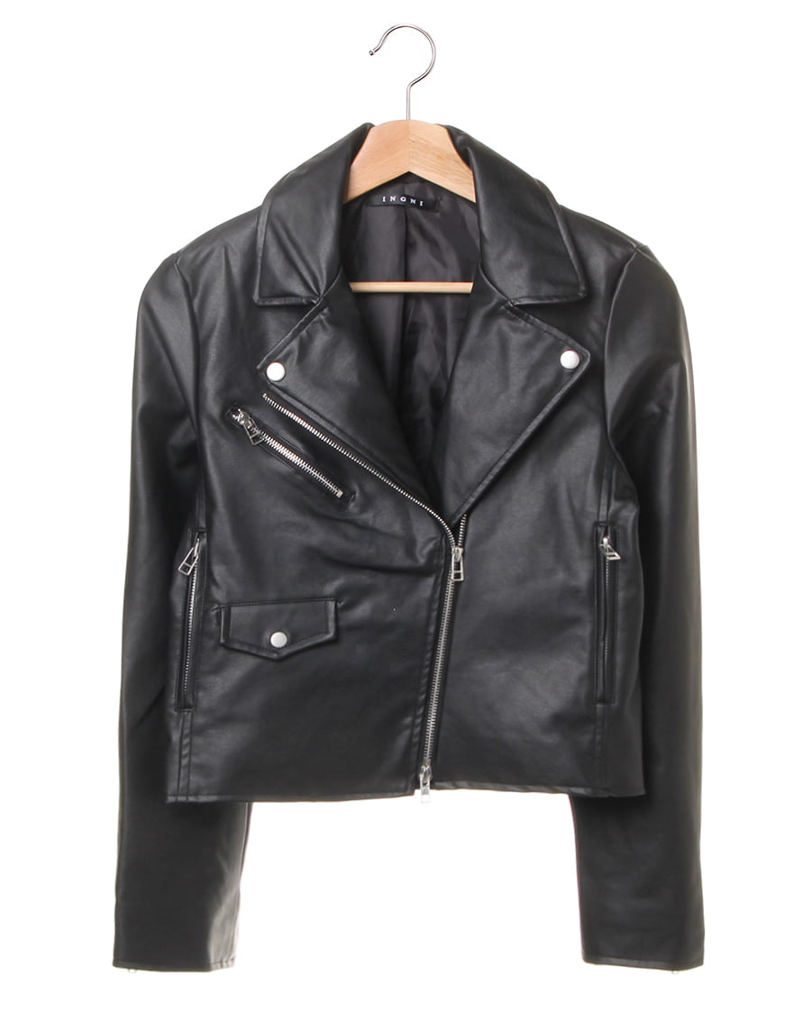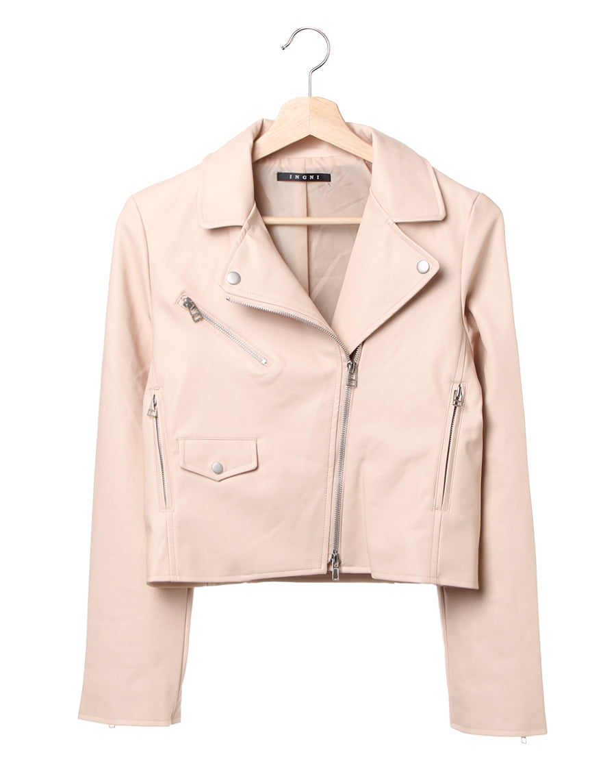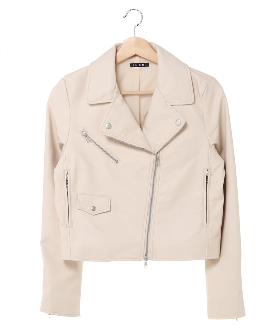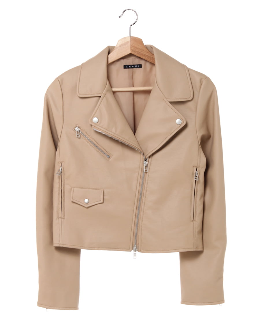 上質感のあるフェイクレザーで仕立てたライダースジャケットは、ミニマルなサイジングが女性らしく着られるアイテム。柔らかな生地と裏地付きなので、ごわつきを感じさせない着心地を実現。細部にこだわったデザインがライダース特有のハード感を抑え、バランス良くスタイリングできるのも魅力的なポイント◎。一着持っていて損のないアウターです。