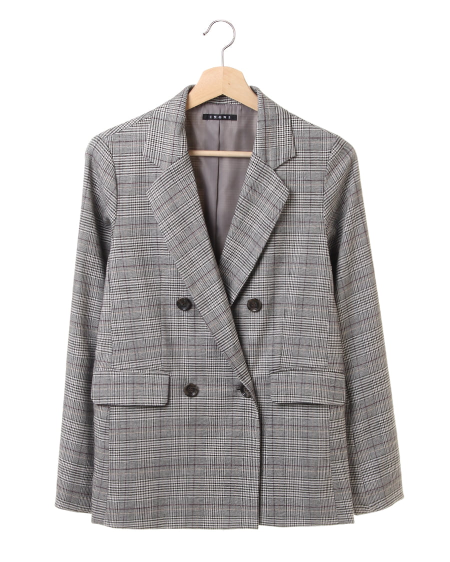 ダブルデザインがトラディショナルなジャケットは羽織るだけで旬のコーディネートが完成する優秀アウター。落ち着いたチェック柄がシンプルスタイルのアクセントになってくれます。大きめのテーラードは顔周りをすっきり見せてくれるのでバランスが取りやすいのもポイント。ゆったりめの身頃はインナーを合わせてももたつかないので、デイリー使いにぴったりです。
