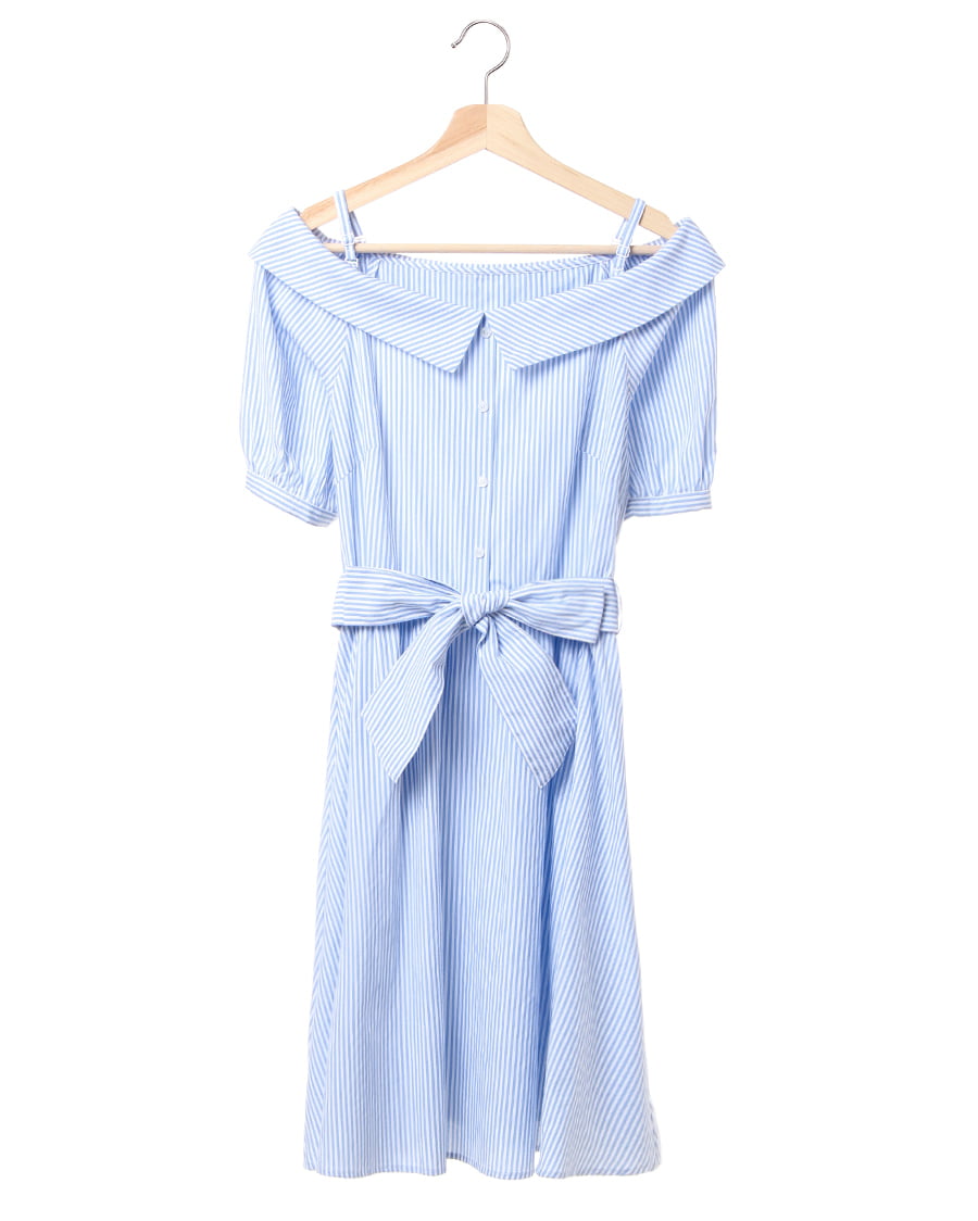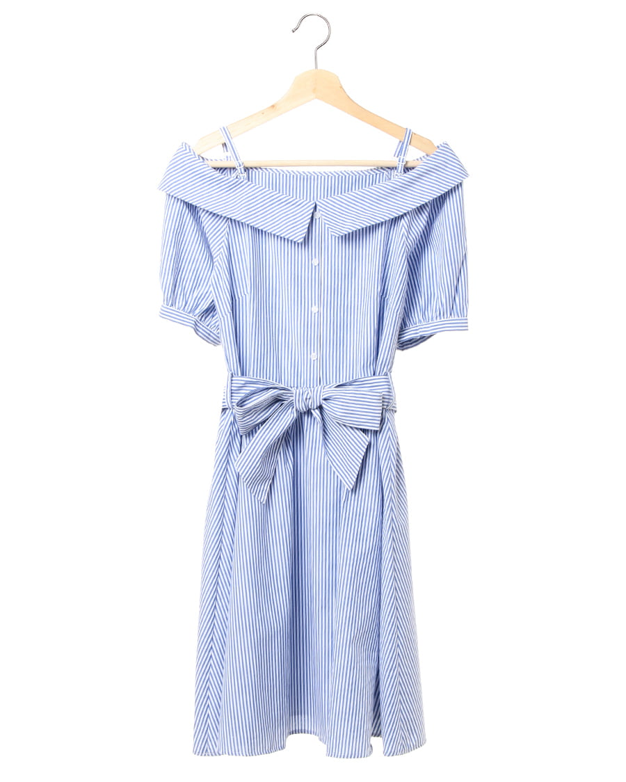 清涼感あふれるストライプ柄が上品なワンピースに人気のオフショルデザインを落とし込みました。爽やかな柄とさらさらした素材がこれからの季節にぴったり、肌触りも抜群でデイリー使いに重宝します。フィット&フレアのシルエットや共布のサッシュでメリハリのあるスタイルを叶えます。取り外し可能な肩紐が着崩れを軽減してくれるのも魅力的。