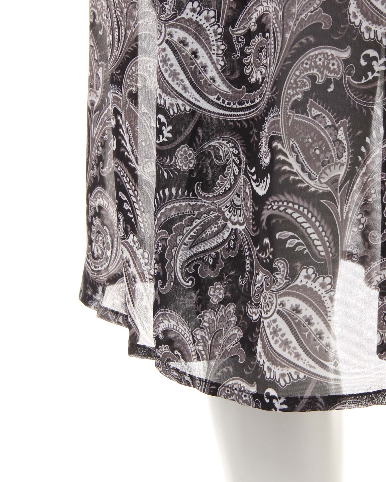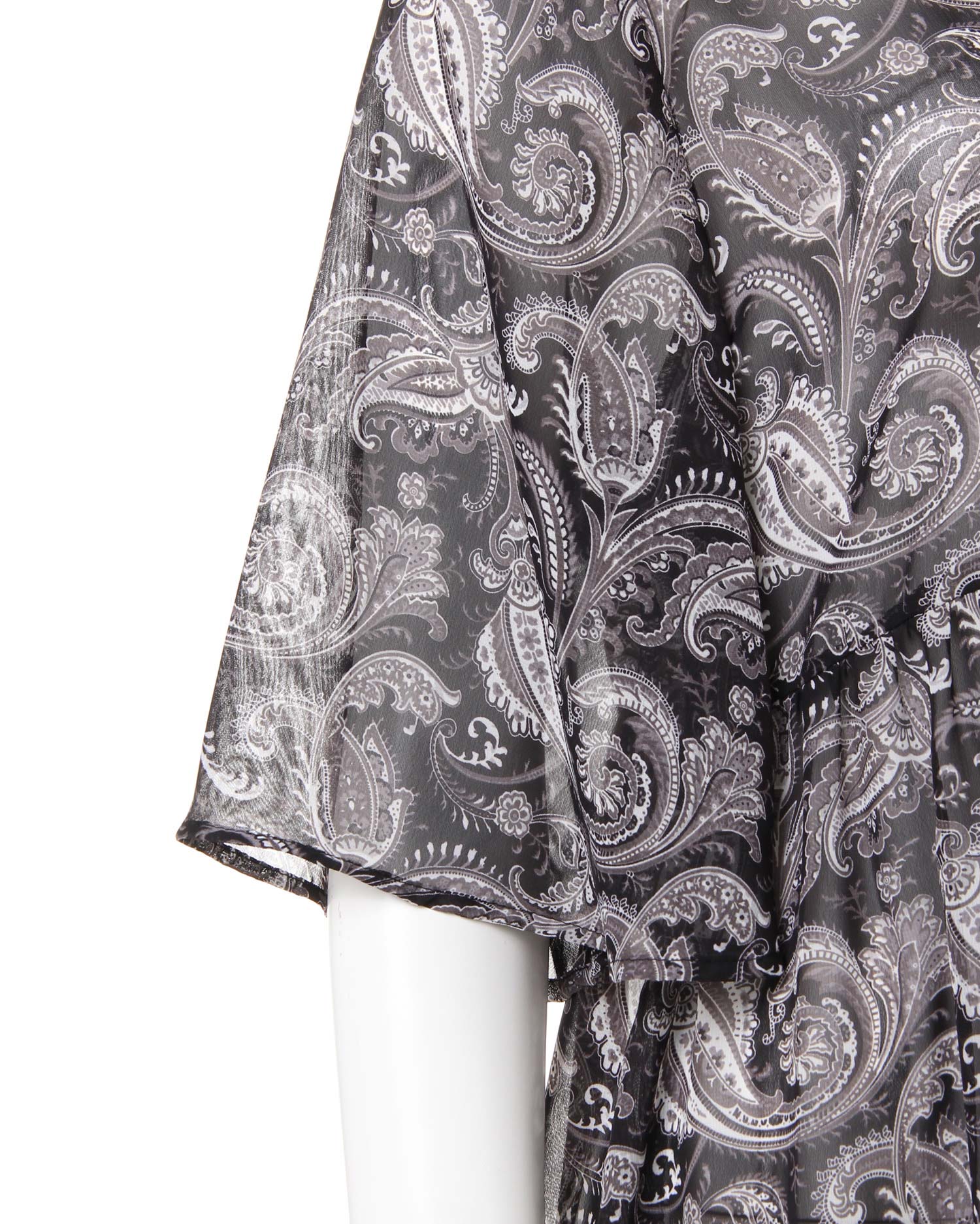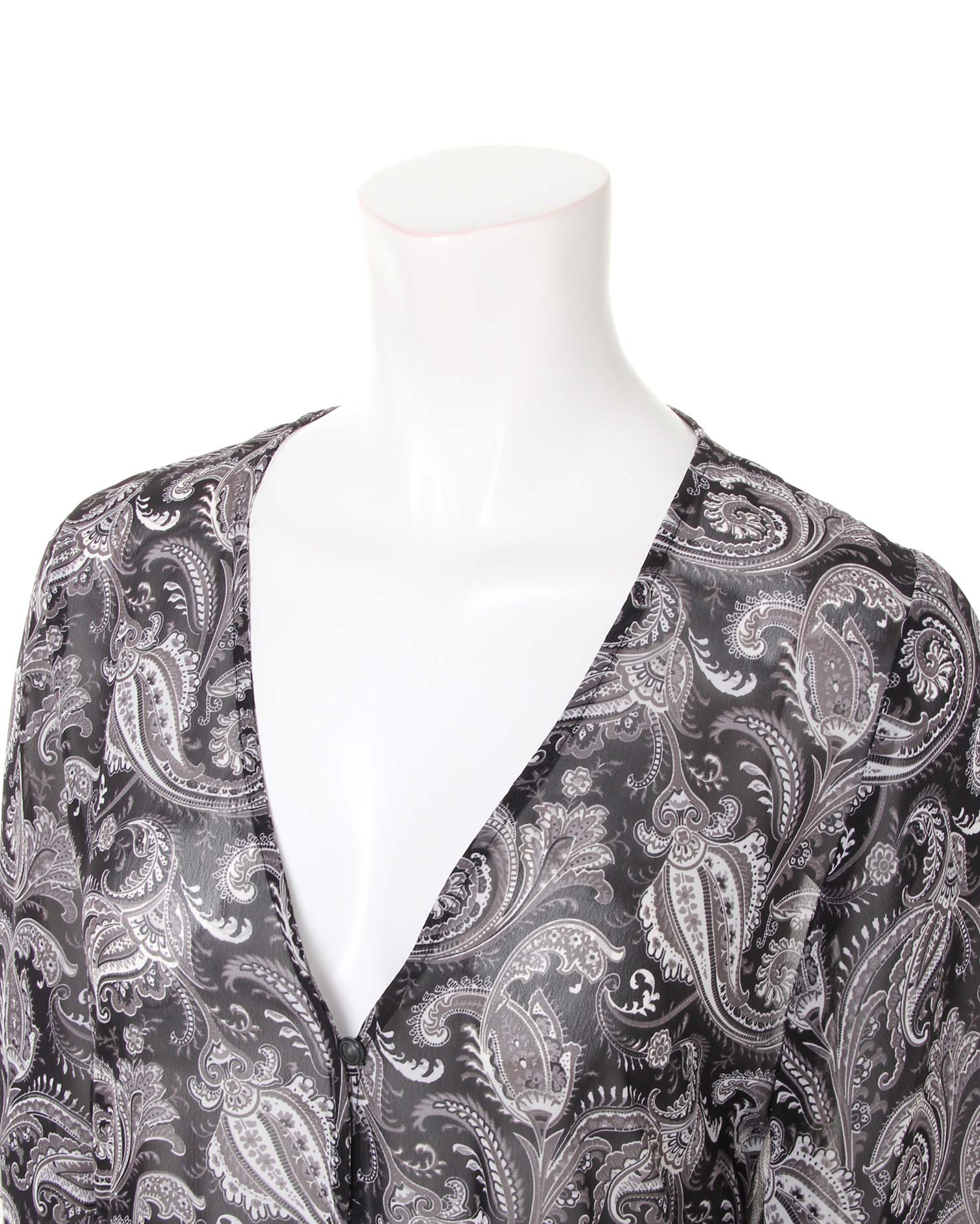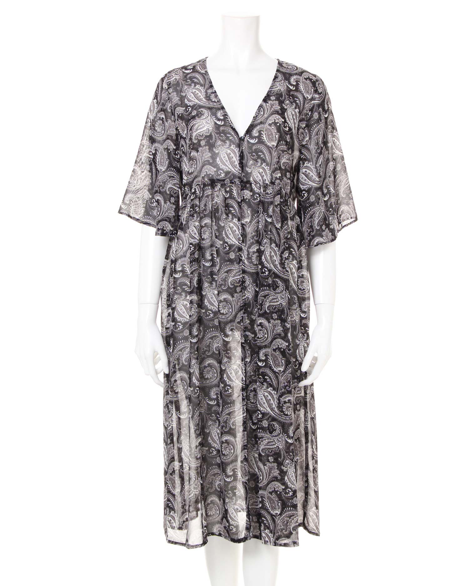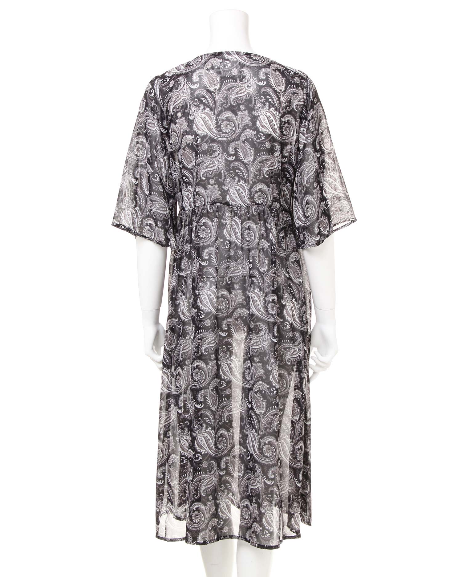 さらっと滑らかで透けのある涼しげなルックスが季節感をあおるペイズリー柄のガウン。シンプルになりがちなこれからのコーデにプラスするだけで旬のスタイルが完成します。ざっくり開いたVネックが抜け感を演出、ロングな丈がコーディネイトをスタイリッシュにまとめます。高めの位置に切り替えを入れたシルエットで脚長効果も期待。ワードローブに1枚は欲しい万能アイテムです。