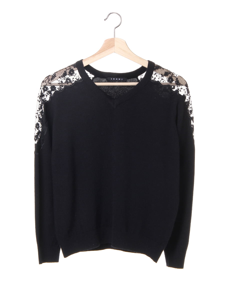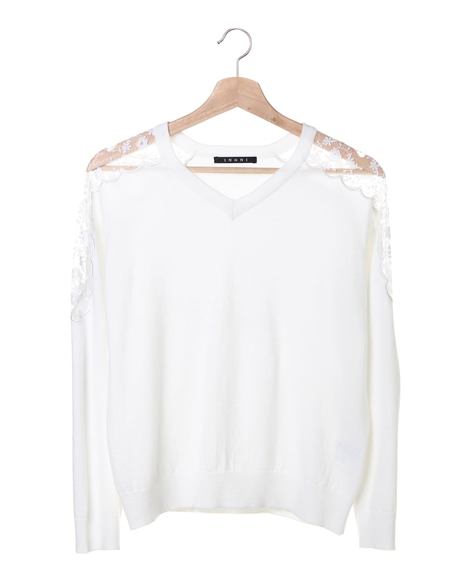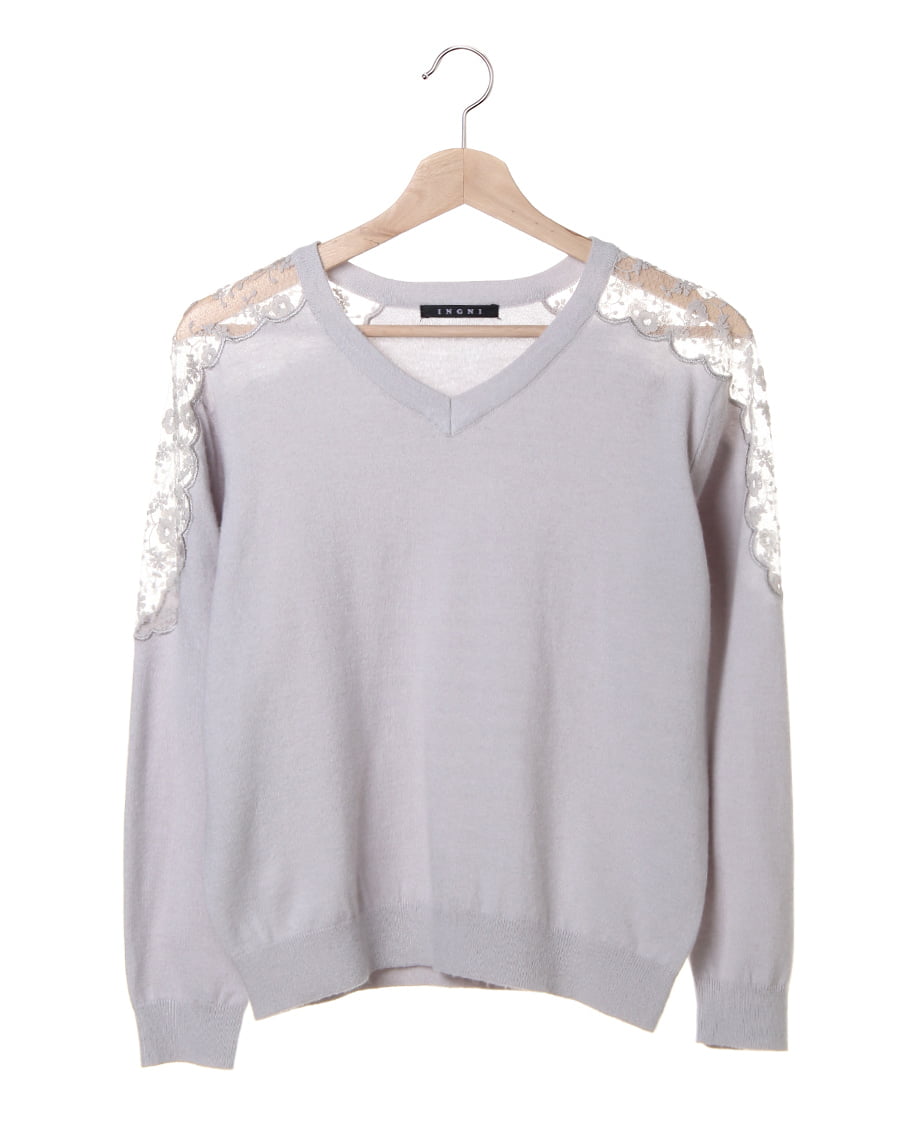 ショルダーからほんのり透ける肌見せがフェミニンでクラシカルな雰囲気のニット。チュールに花柄の刺しゅうをのせたデザインの輪郭を、光沢のある糸がスカラップデザインに仕上げているガーリーな一枚。プレーンなシルエットにワンカラーで異素材をミックスさせた技ありなアイテム。ショートに設定された丈感はコーディネイトに困りません。