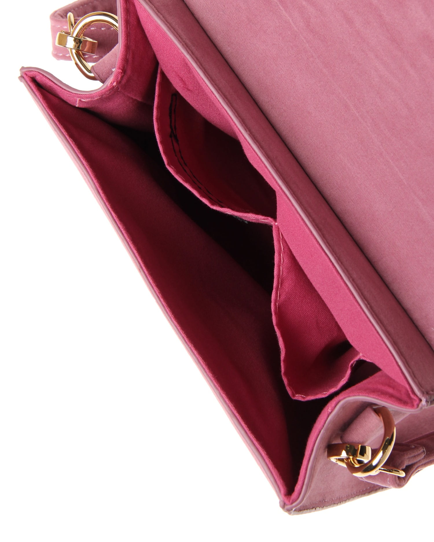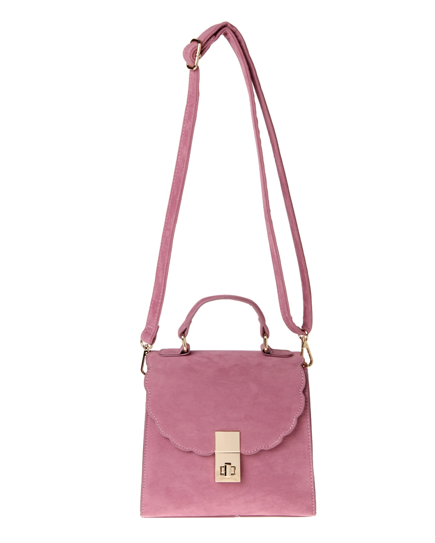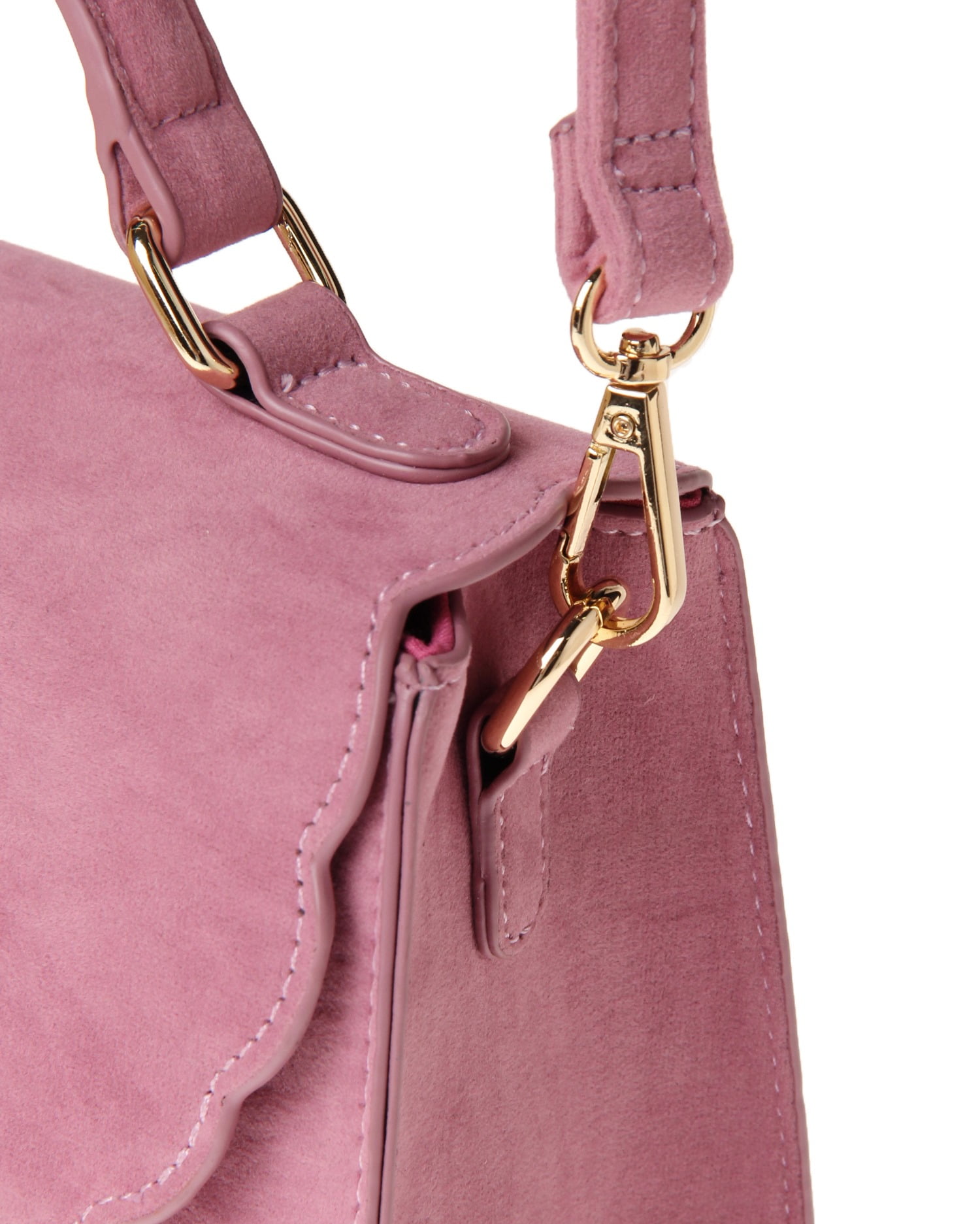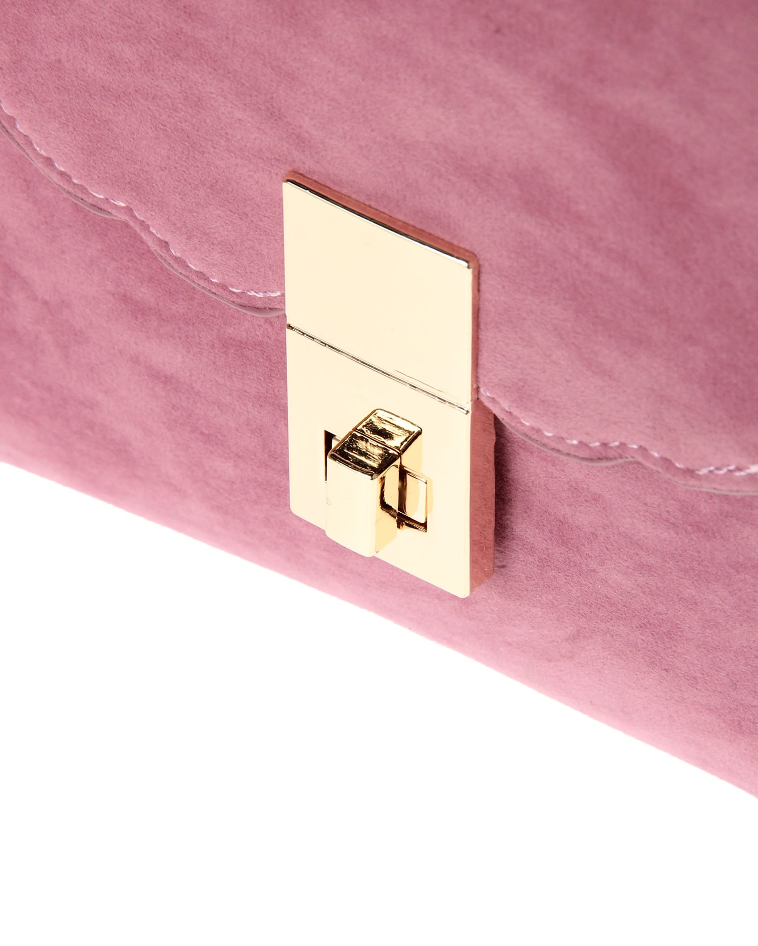 カチッとしたフォルムで持つだけでレディな着こなしを叶えるバック。フラップ部分のスカラップが上品でエレガントな印象。大きすぎないサイズ感ながら、持ち歩きたい貴重品はしっかり収納、マチ付きなのも嬉しいポイントです。ハンドル持ちとショルダーバックとしても使える2WAYなのも魅力的。
