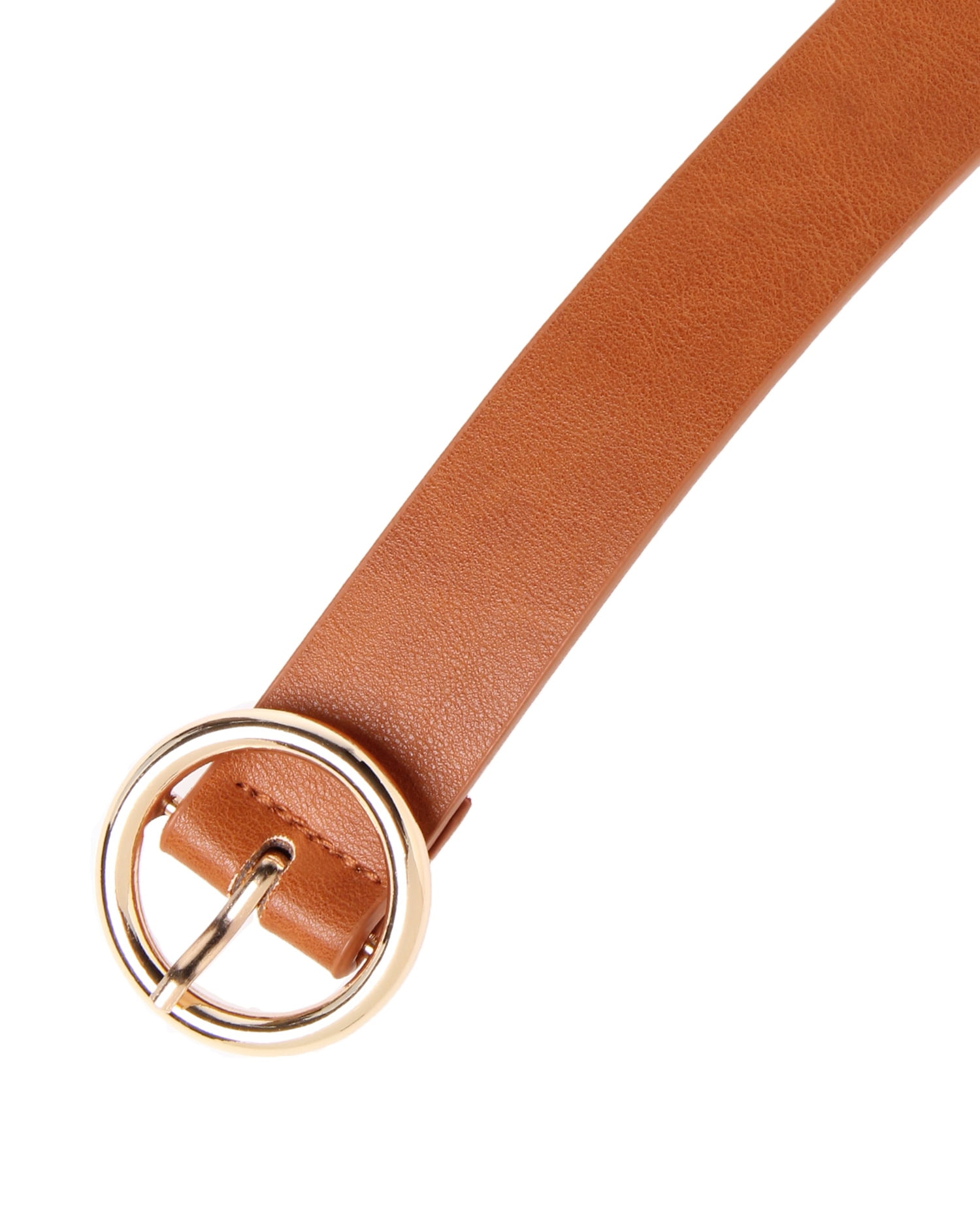 シンプルなカラーリングデザインに、女性らしい上品なゴールドのリングバックルをアクセントにしたベルトは、さらりと巻くだけでスタイリングが決まる優秀な1本。ワンピースやシャツの上からウエストマークしたり、ワイドパンツやデニムボトムスとも相性抜群。コーデの幅が広がる万能アイテムは、デイリーに重宝する逸品です。
