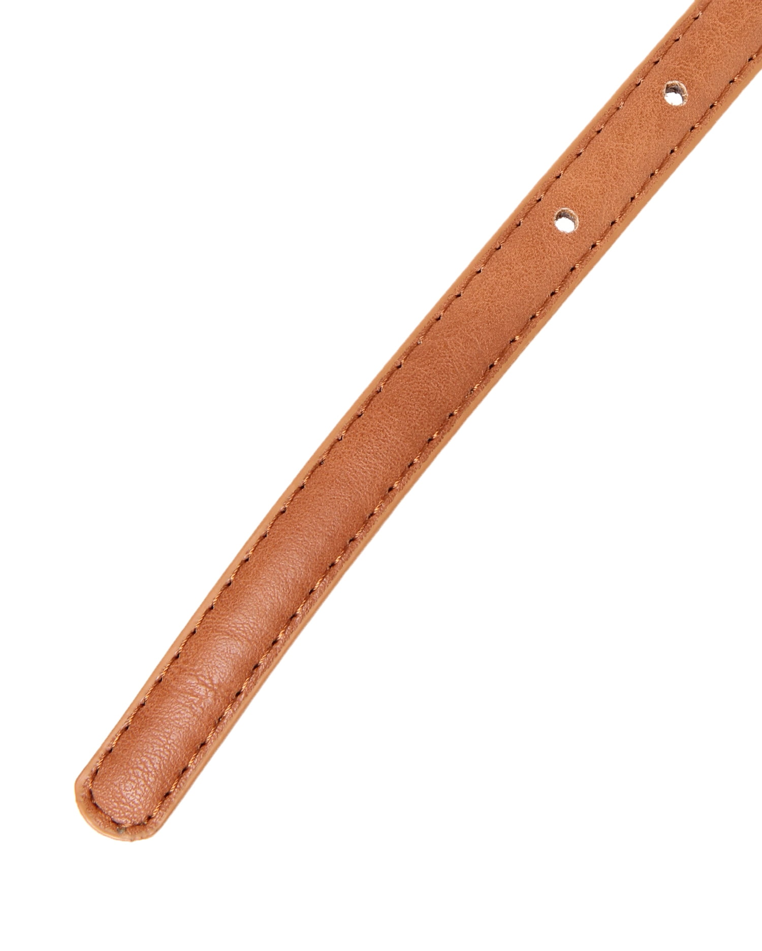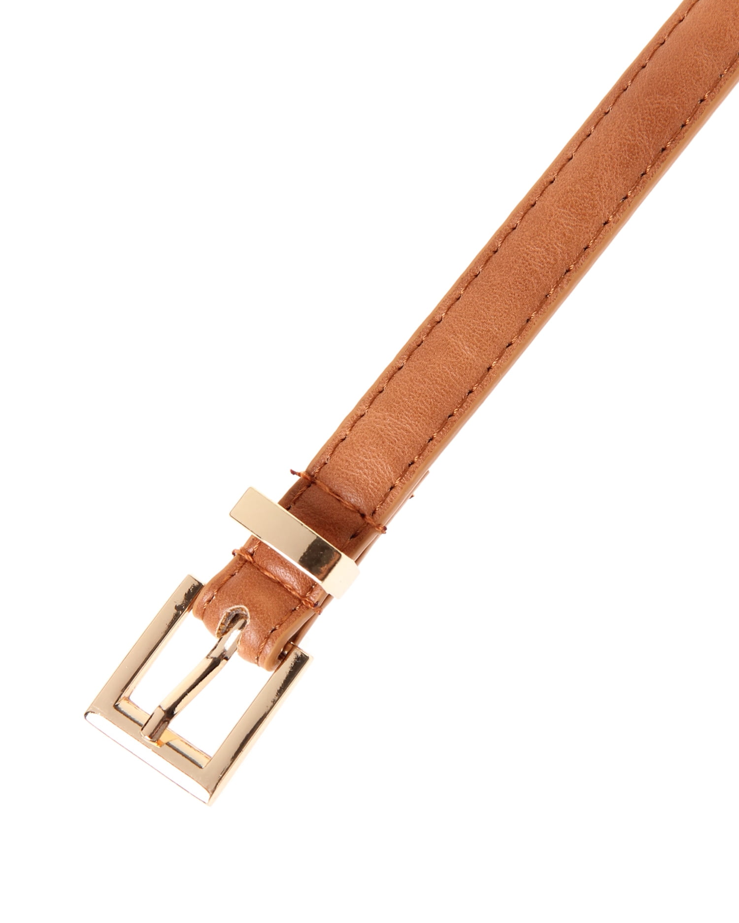 シンプル&ベーシックなベルトは、ゴールドのスクエアバックルが大人な雰囲気をプラスするオススメアイテム。普段のコーディネイトを上品に格上げしてくれる細めの帯は、パンツスタイルはもちろん、ワンピースなどのウエストマークにも◎。オンオフ問わず、様々なシーンで活躍してくれます。どんなスタイルにも合わせやすいベーシックカラーが揃っています。