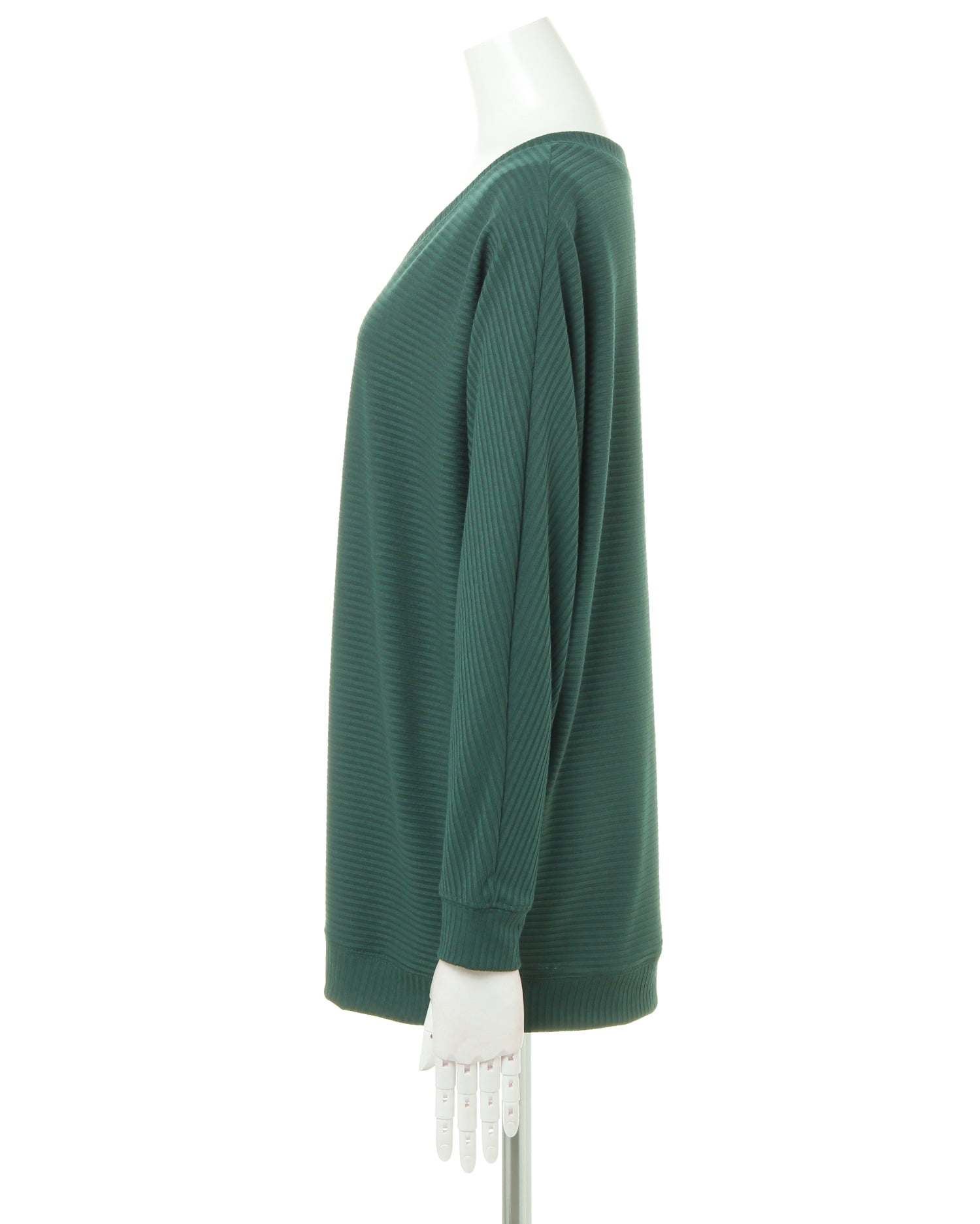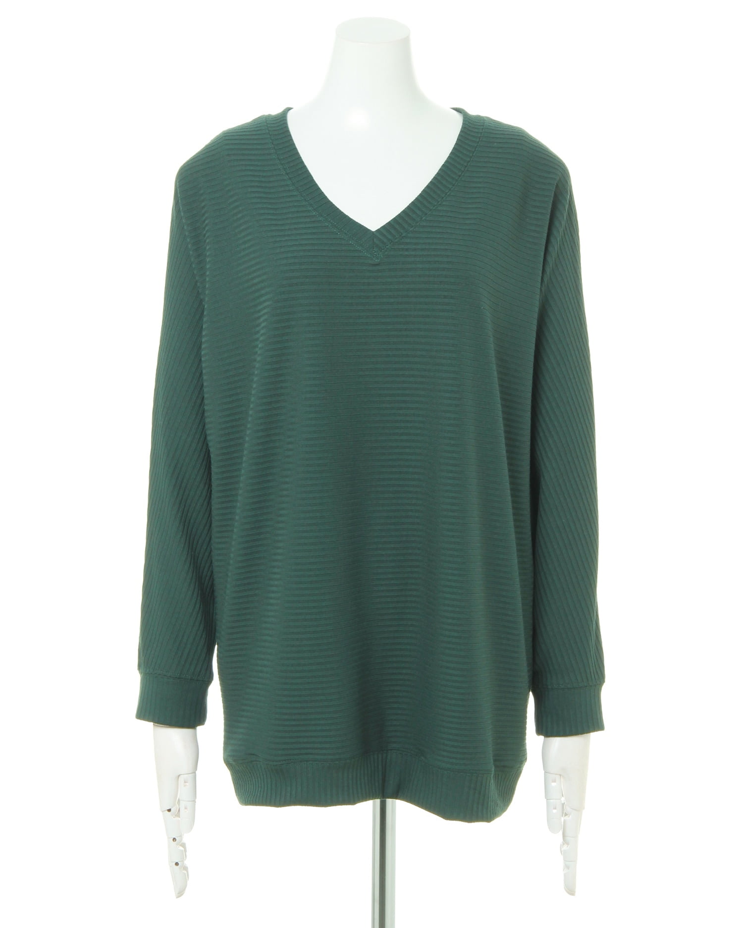 ゆったりとしたワイドシルエットとドルマンスリーブがリラックス感漂うVネックトップス。細めのリブ素材がボリュームが出すぎるのを軽減、すっきりとした印象を与えます。チュニックのような長めの丈感がボディラインを包み込み、自然と体型カバーも期待出来る1枚。ベーシックなデザインで、様々なコーディネイトに着回し力のある優れもの。定番で使えるトレンドに左右されないアイテムは、ワードローブに追加決定です。