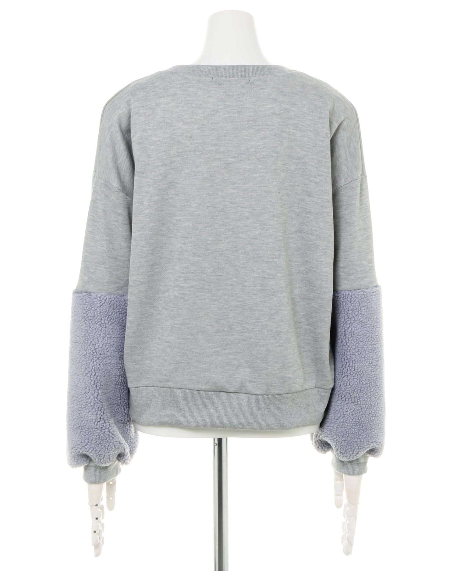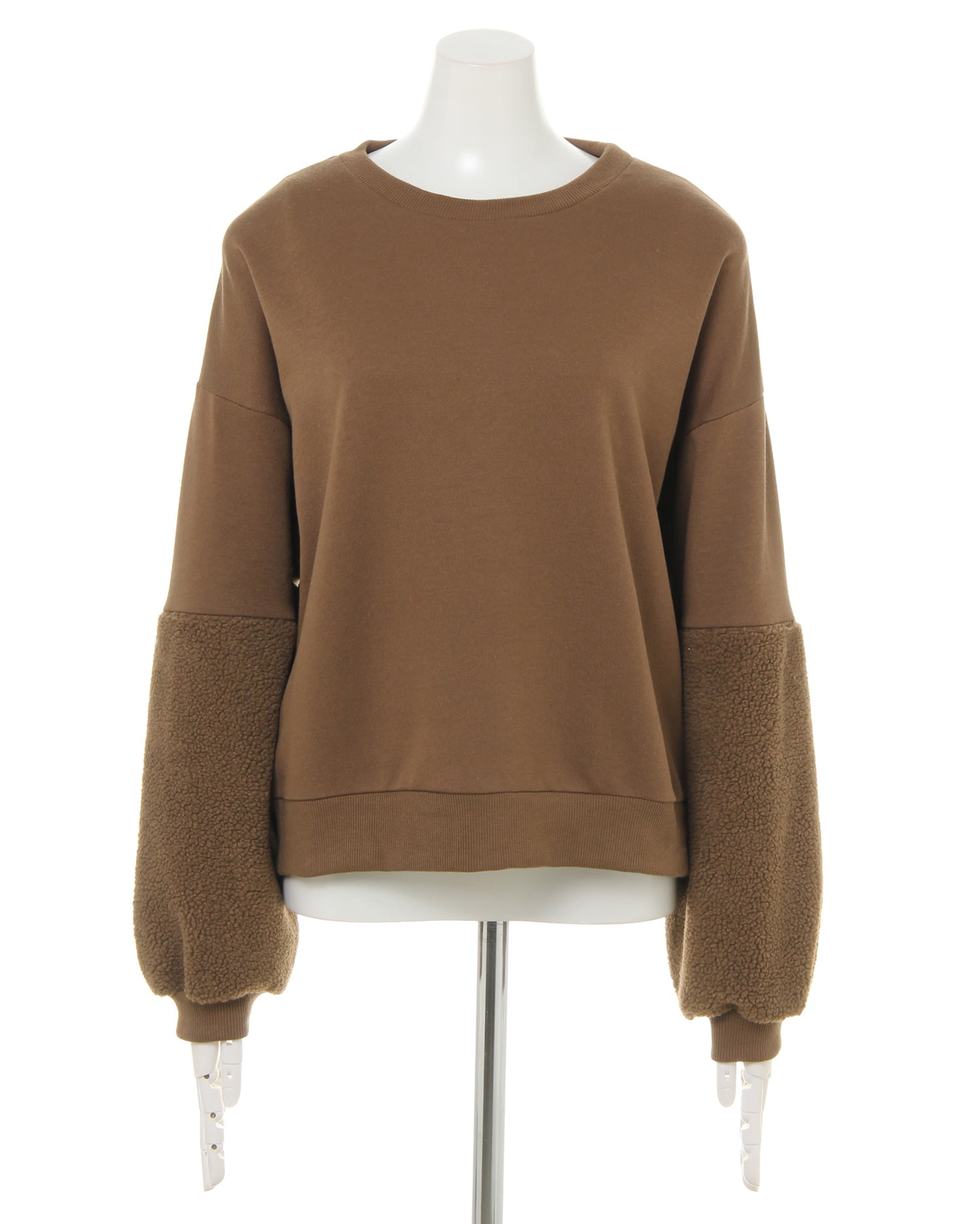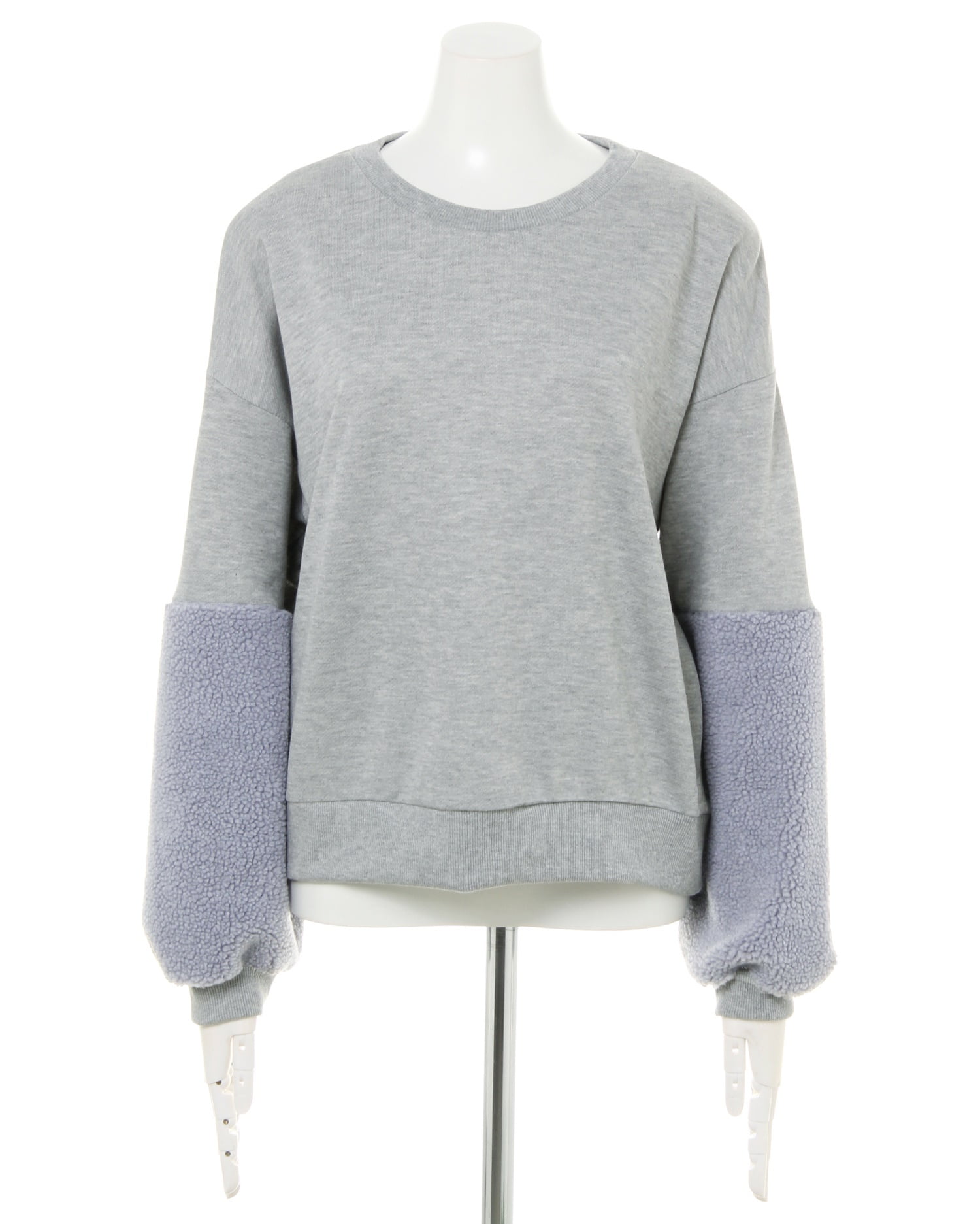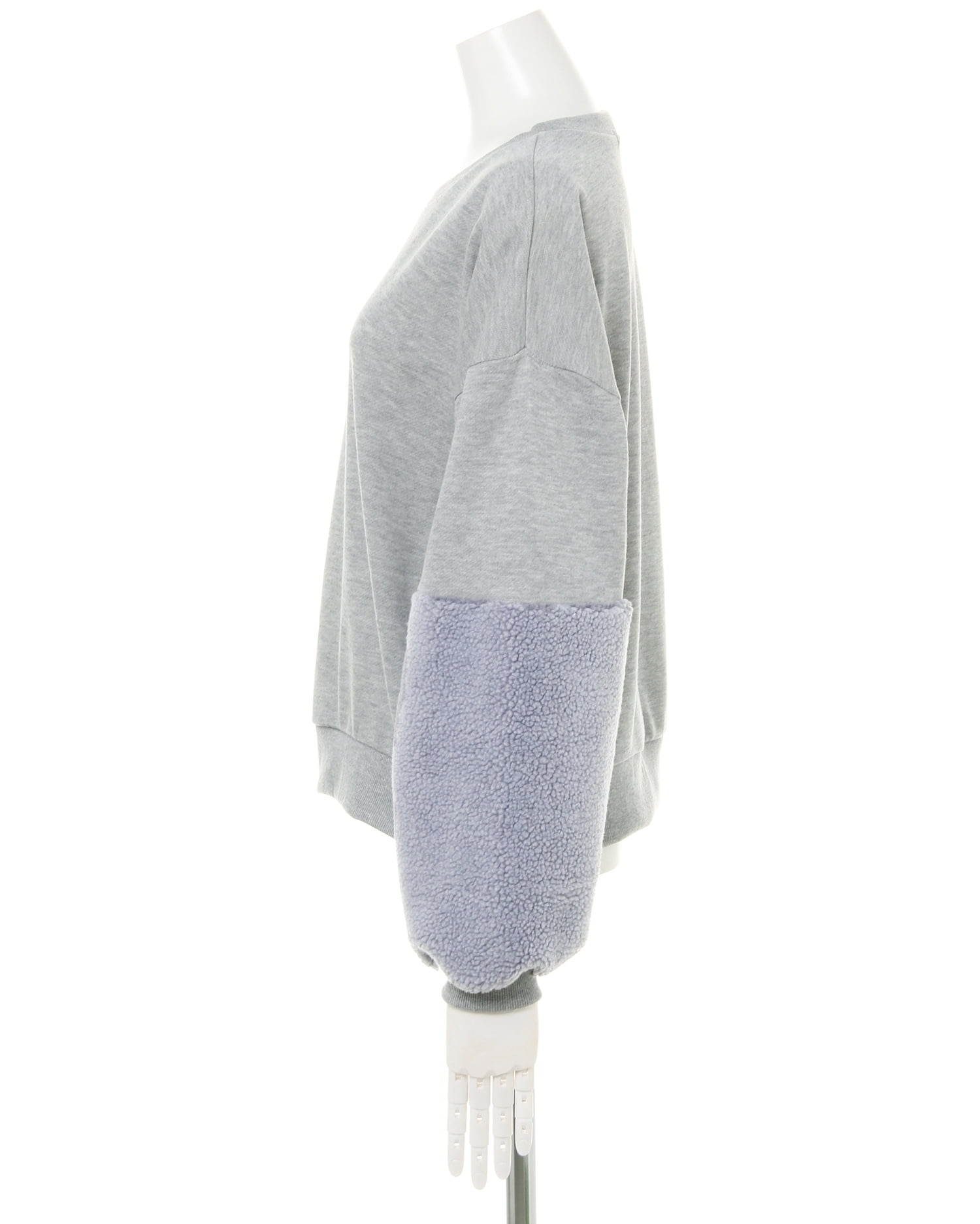 シンプルなスウェットトップスはビックシルエットがトレンドライク。たっぷりボリュームのある袖部分にボアデザインを落とし込み、季節感のある暖かな雰囲気に仕上げました。伸縮性が高く、肌触りが心地良いスウェット素材がリラックスした着こなしを叶えます。袖口と裾のリブがタイトさをプラス。短めの丈感なので、1枚ではもちろん、シャツなどのレイヤードスタイルもオススメです。