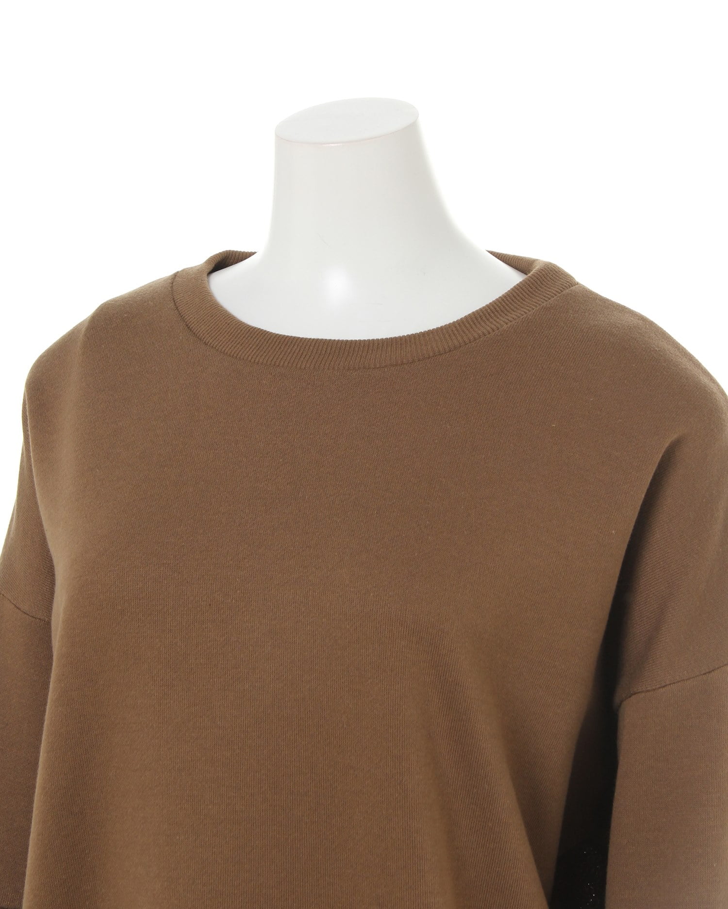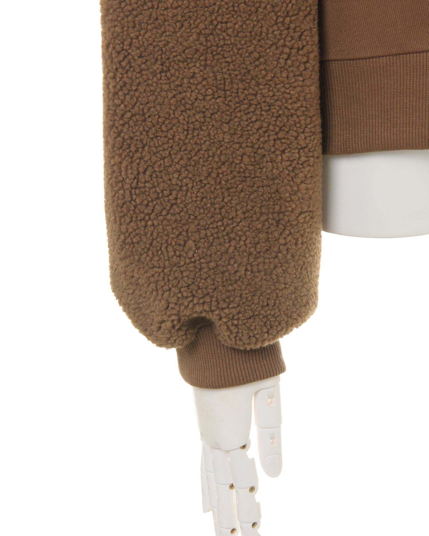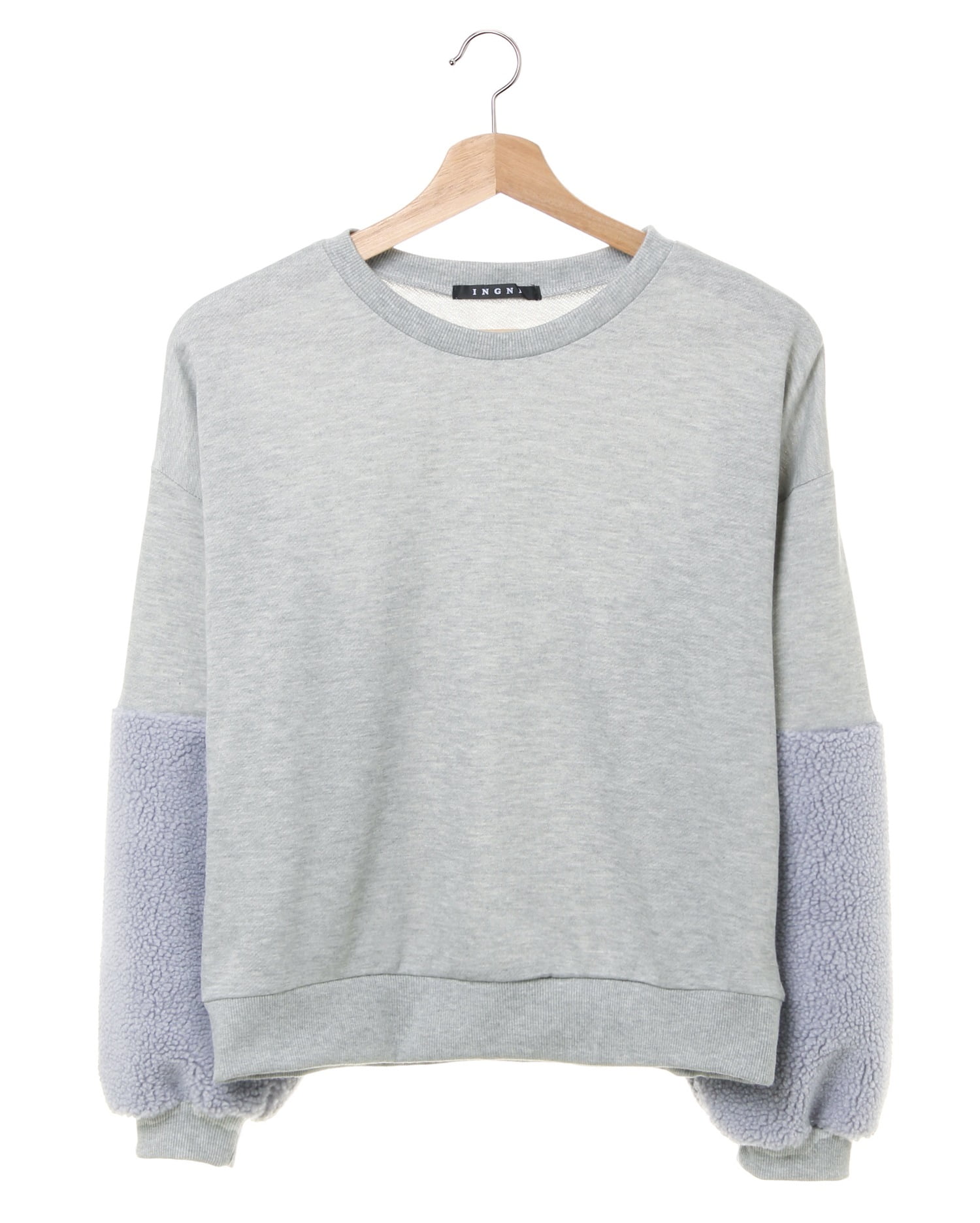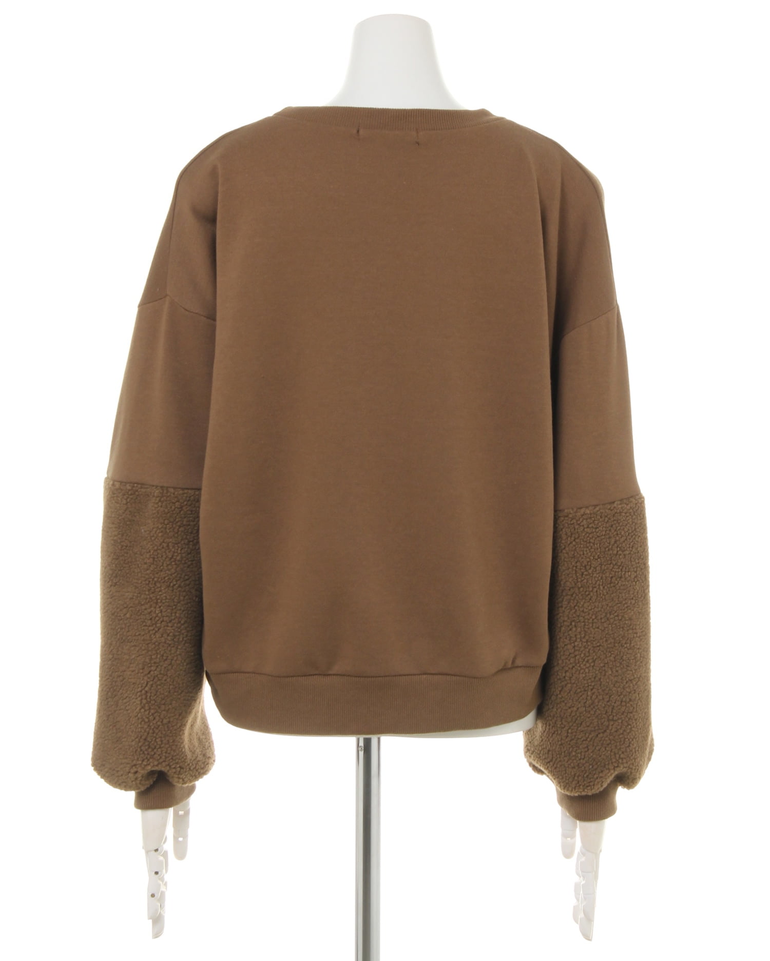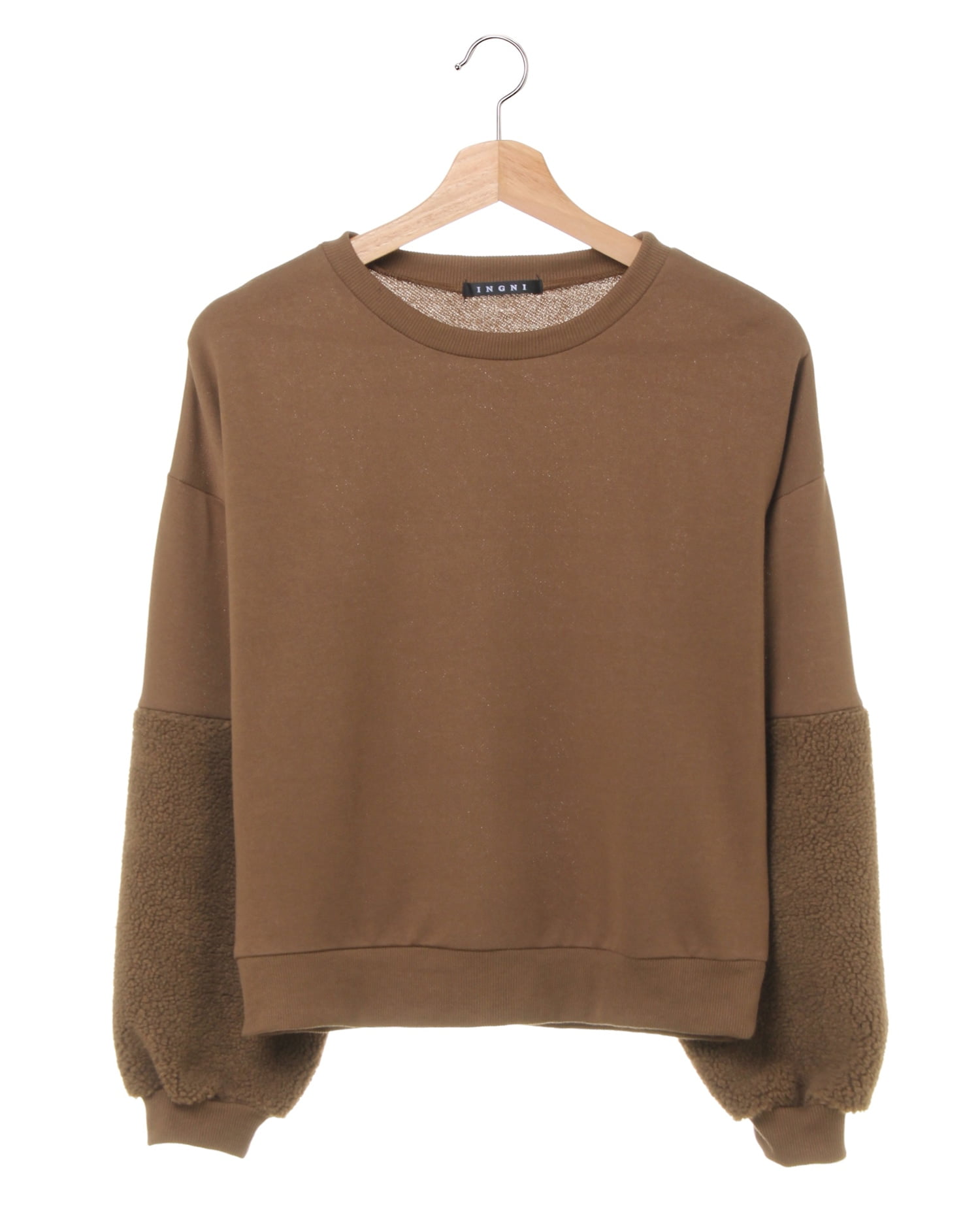シンプルなスウェットトップスはビックシルエットがトレンドライク。たっぷりボリュームのある袖部分にボアデザインを落とし込み、季節感のある暖かな雰囲気に仕上げました。伸縮性が高く、肌触りが心地良いスウェット素材がリラックスした着こなしを叶えます。袖口と裾のリブがタイトさをプラス。短めの丈感なので、1枚ではもちろん、シャツなどのレイヤードスタイルもオススメです。