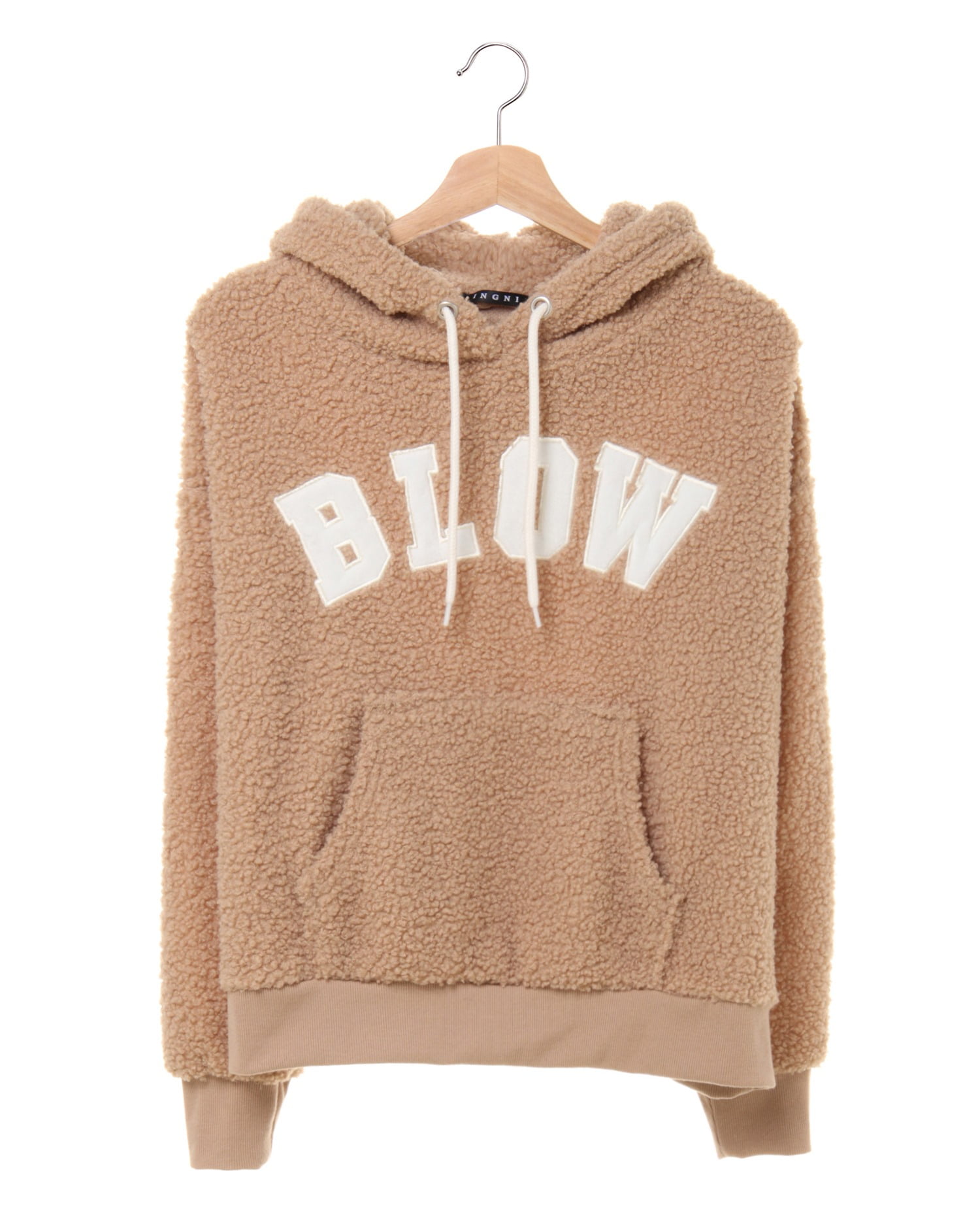 もこもことした独特の質感がクセになるゆったりシルエットのボアパーカー。光沢のあるロゴがインパクト大で目を引くアクセントに。首元を包み込むボリュームたっぷりのフードがカジュアルさをプラス。見た目も暖かなシーズンアイテムです。軽く保温性の高いボア素材で着回しやすく、即投入したい万能な1枚。細身のパンツですっきり着こなすのはもちろん、ロングワンピースとのレイヤードスタイルもオススメです。