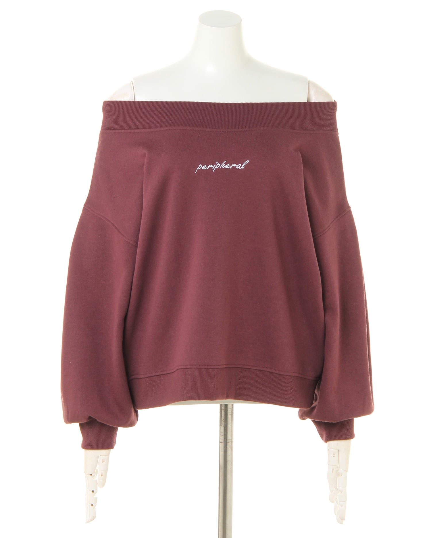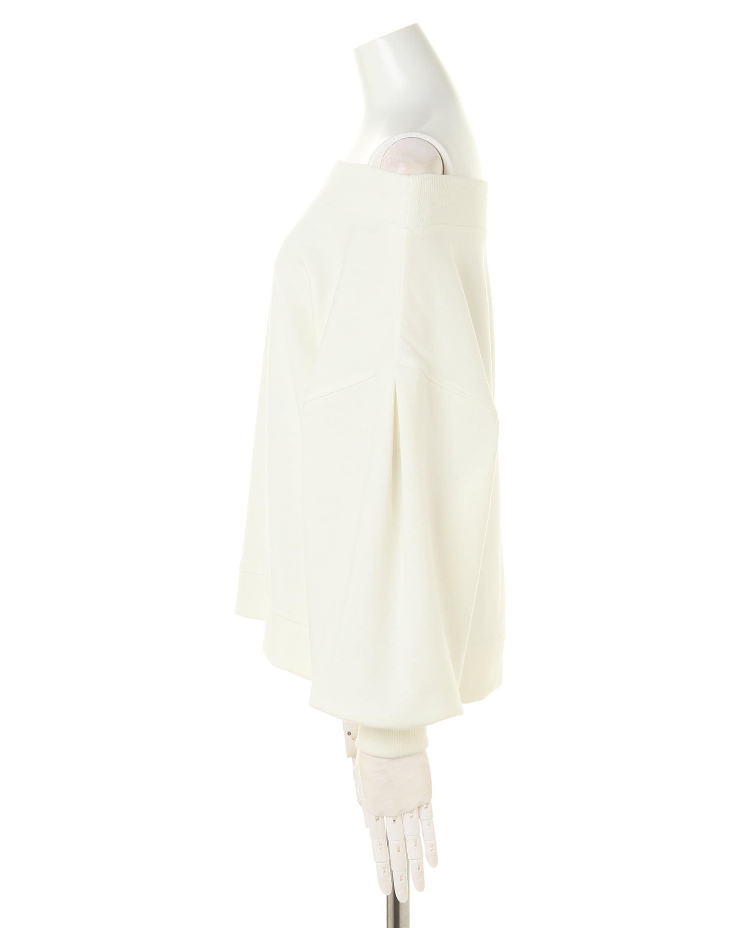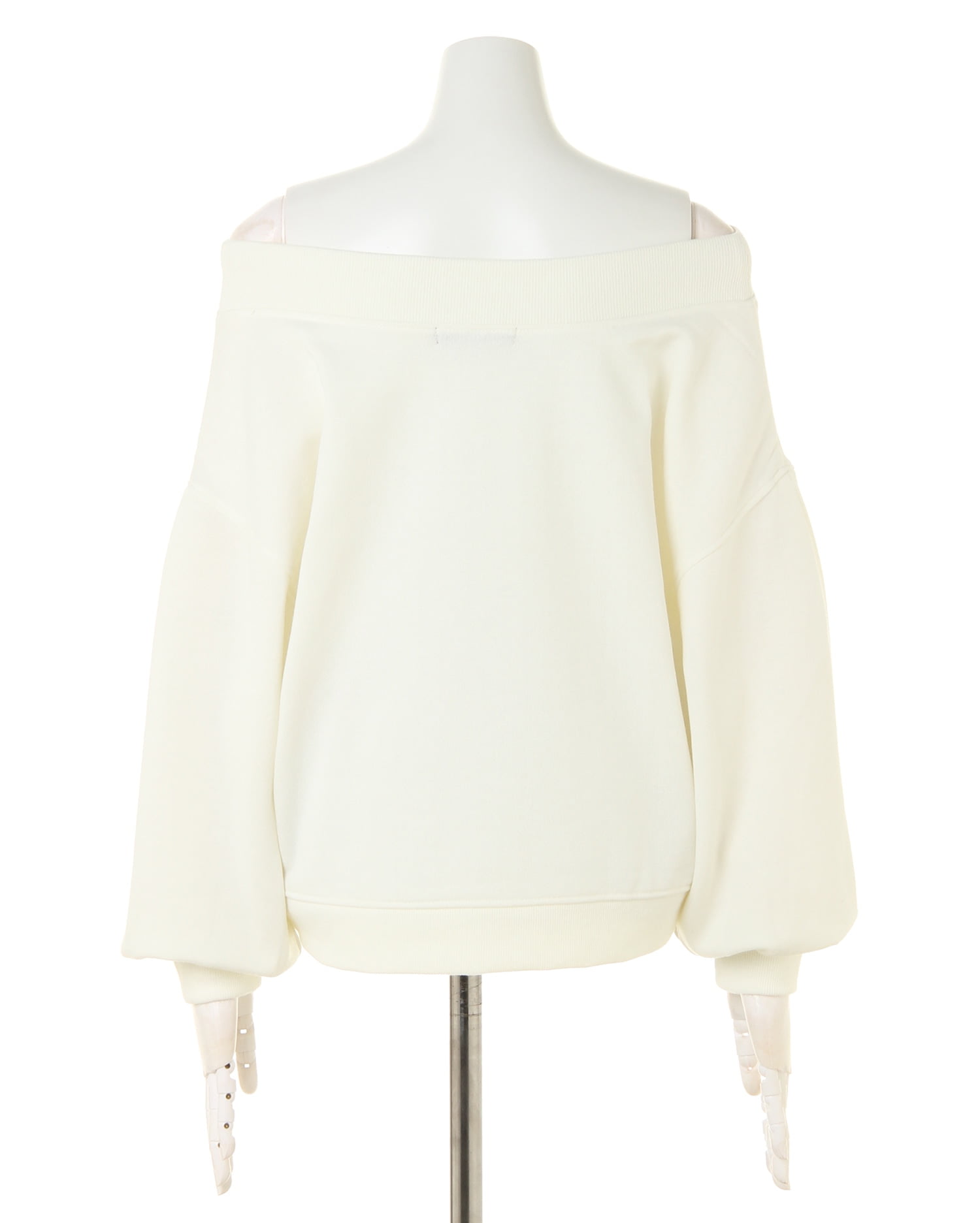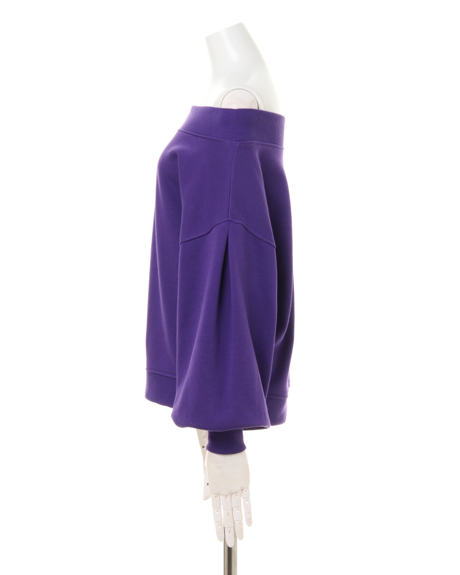 着回し力抜群のシンプルなスウェットをオフショルにした旬顔デザインのトップス。ゆったりめの身幅とボリューム袖がリラックスした快適な着心地に。ネックラインと袖口、裾の縦リブが着こなしにメリハリをプラス。フロントのロゴがワンポイントに。デコルテをきれいに見せるオフショル仕様はもちろん、シャツなどのレイヤードスタイルもオススメです。