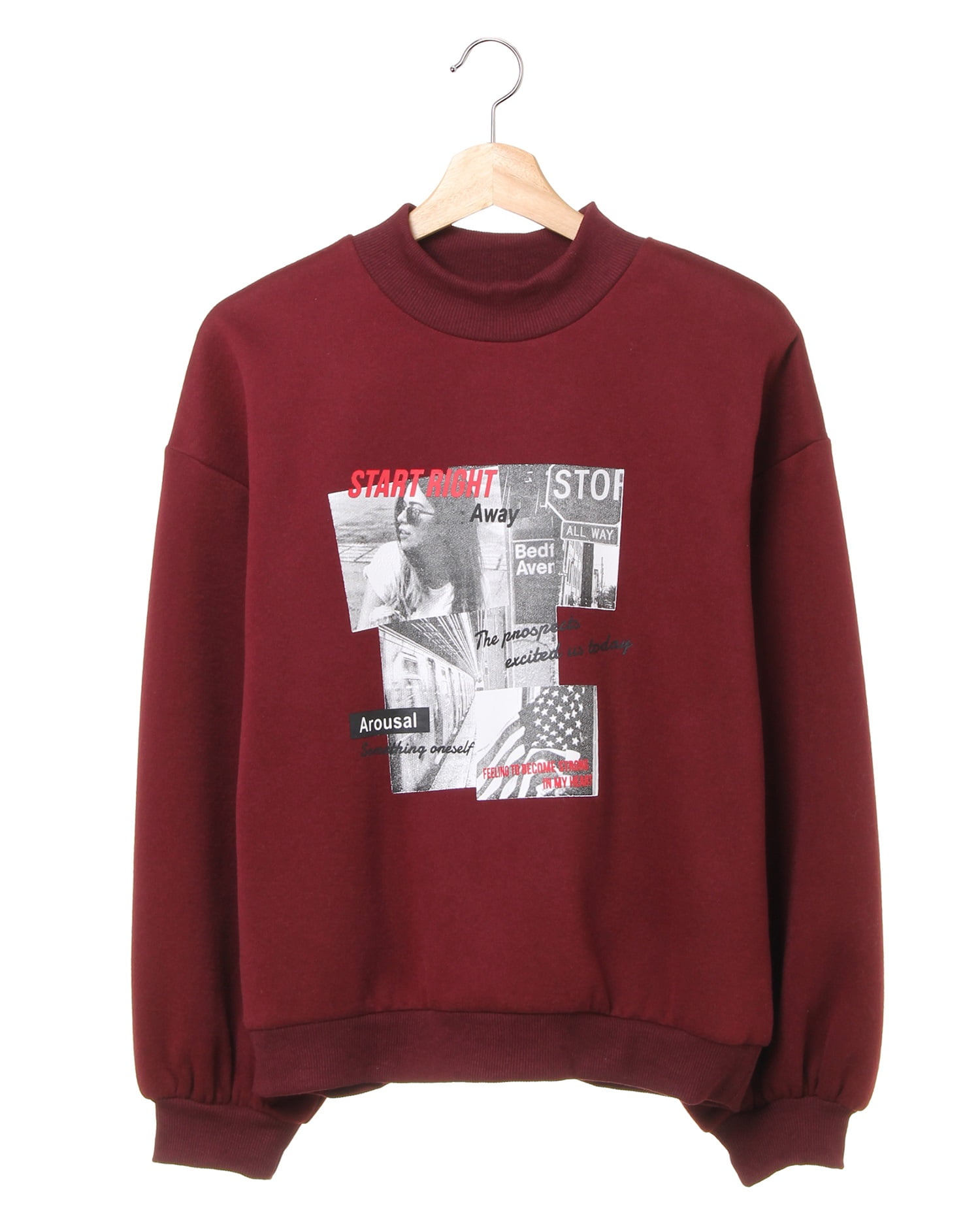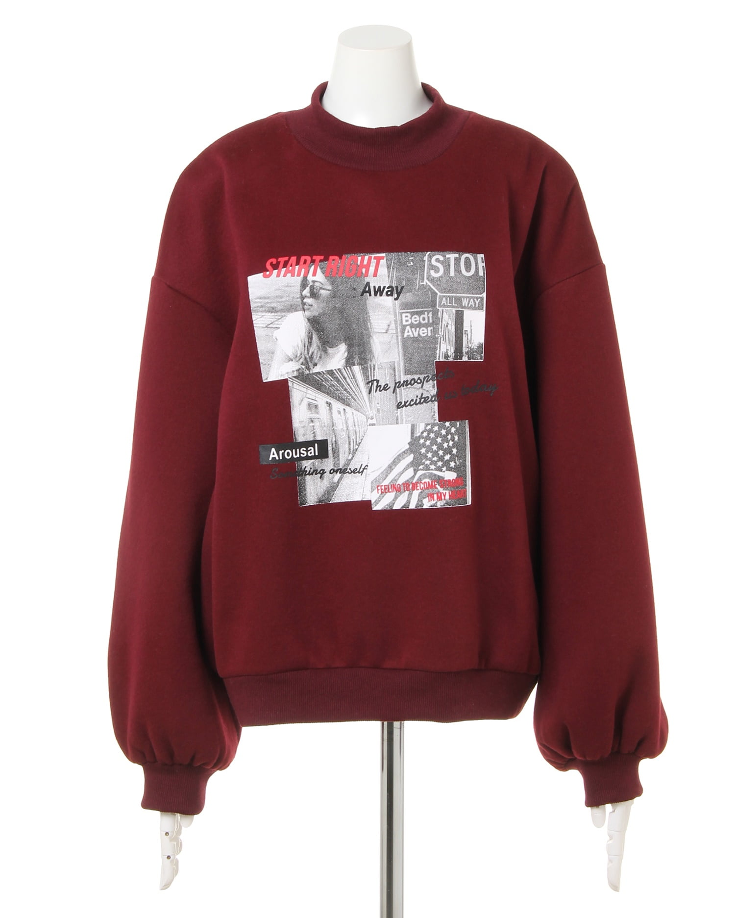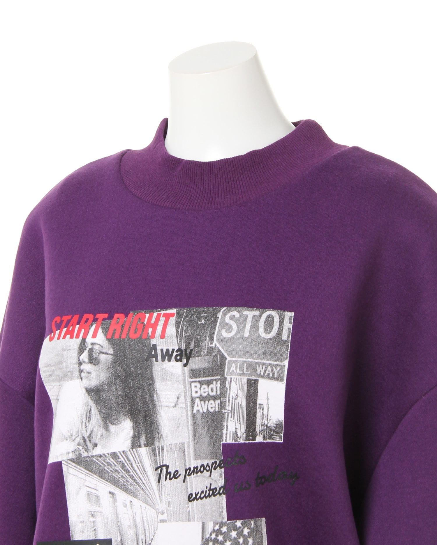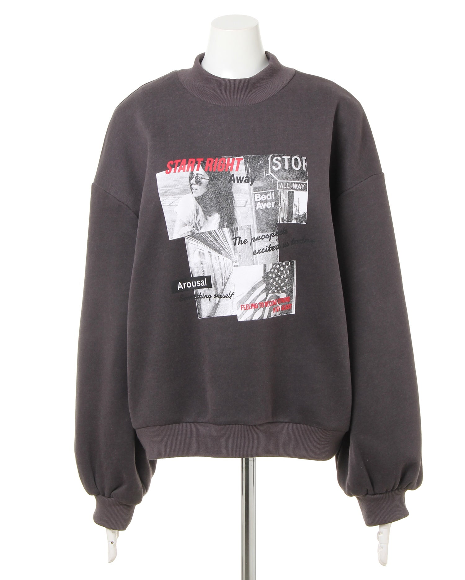 フロントに大きくあしらったフォトプリントが印象的なスウェットトップス。程よい厚みの生地は1枚でも暖かな裏起毛になっています。首元を覆うモックネックもポイント。暖かさだけでなく、すっきりとした顔周りを演出してくれます。程よい丈感でどんなボトムにもバランスよく合わせられるのも◎。ボーイズライクに着こなすのはもちろん、ふんわりスカートと合わせるのもオススメの1枚です。