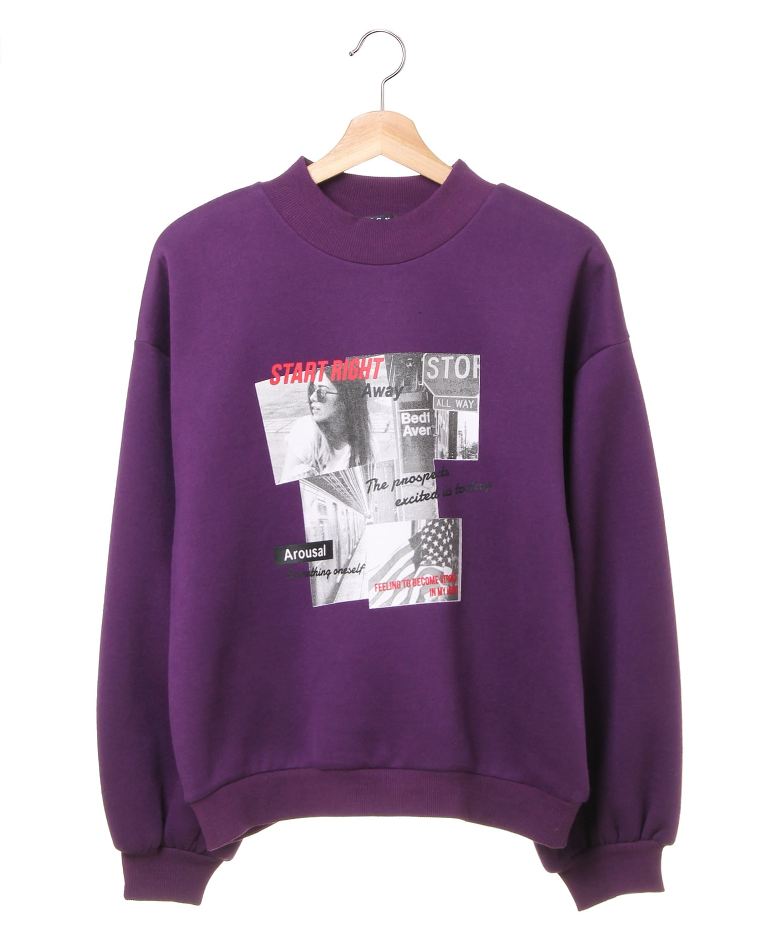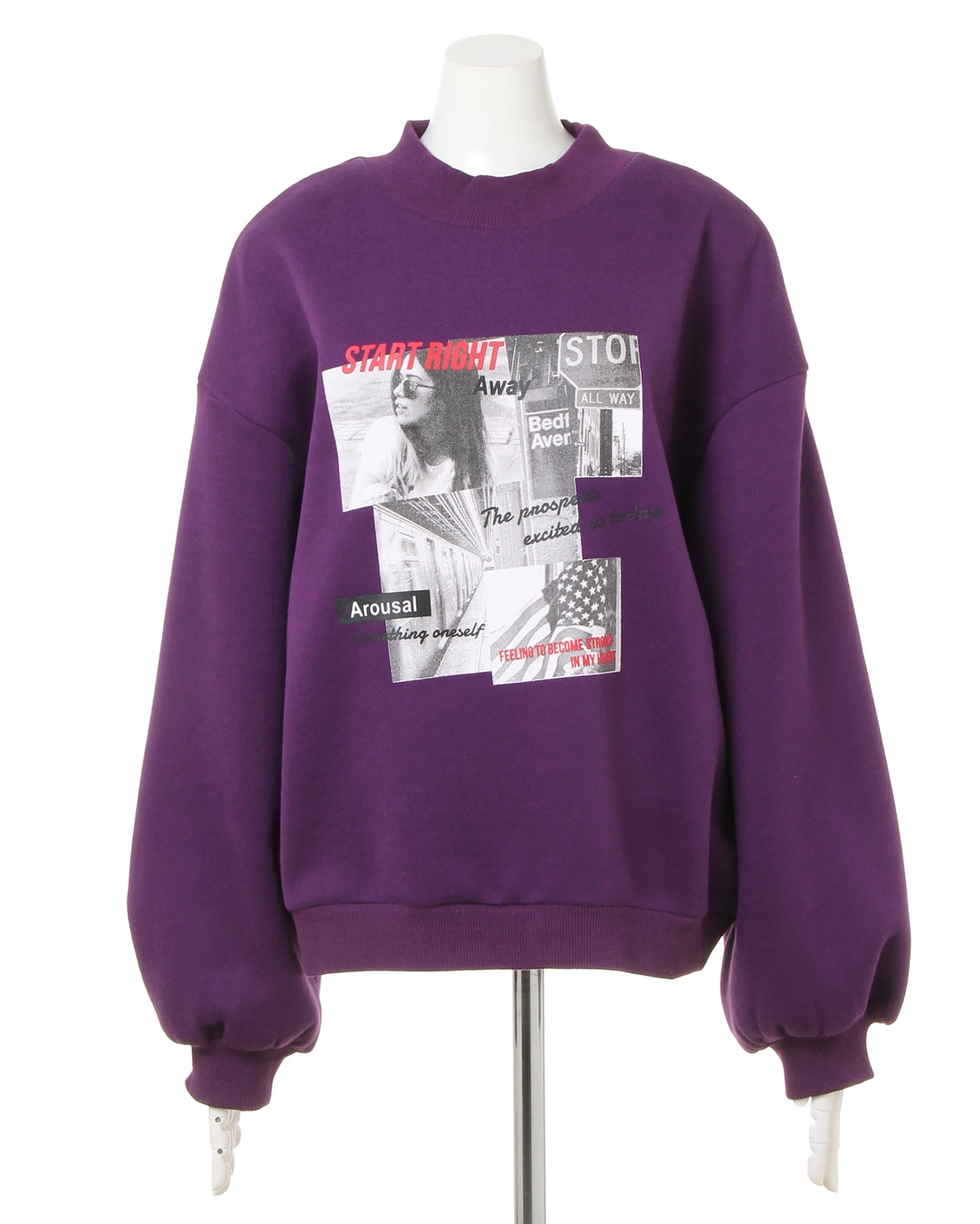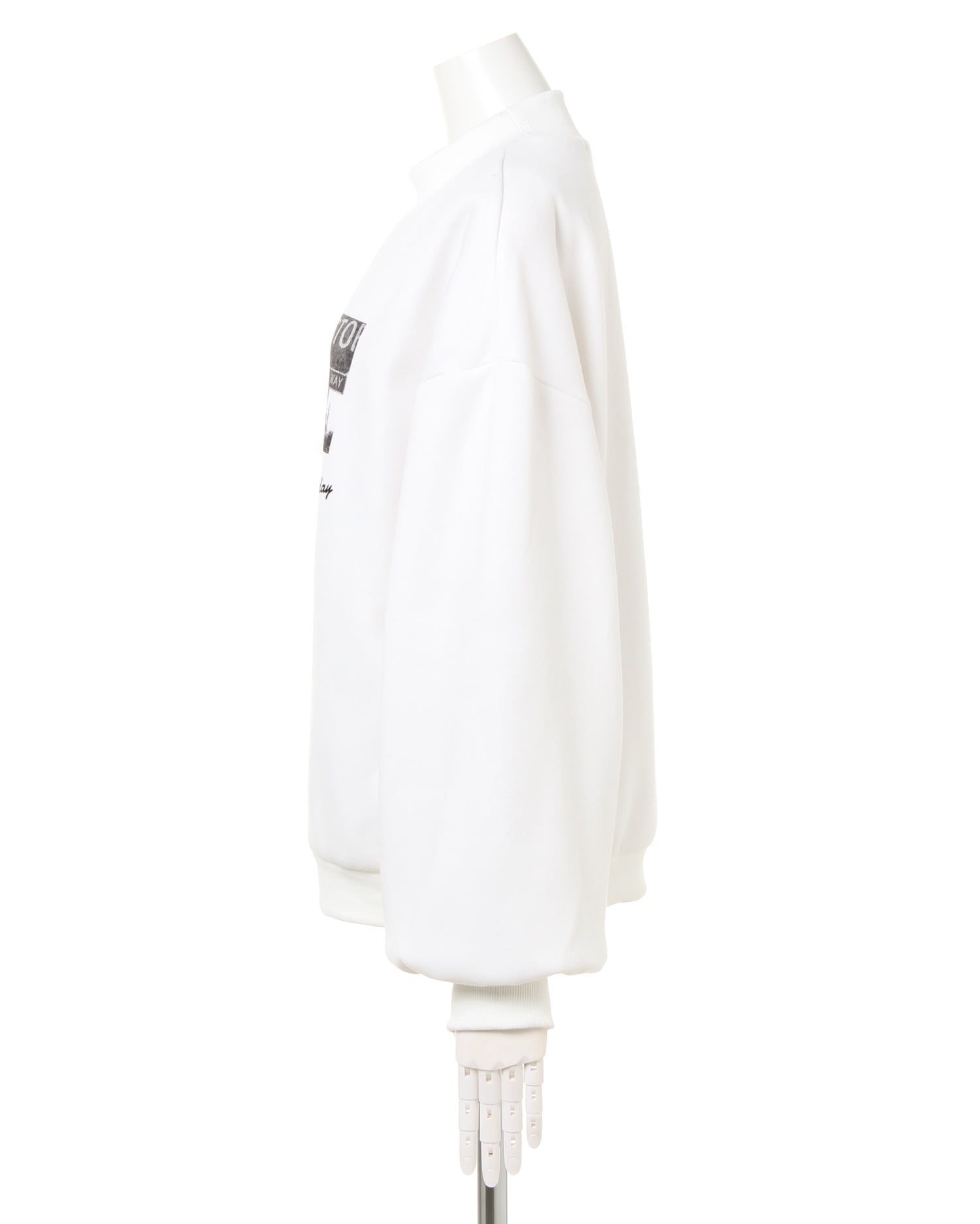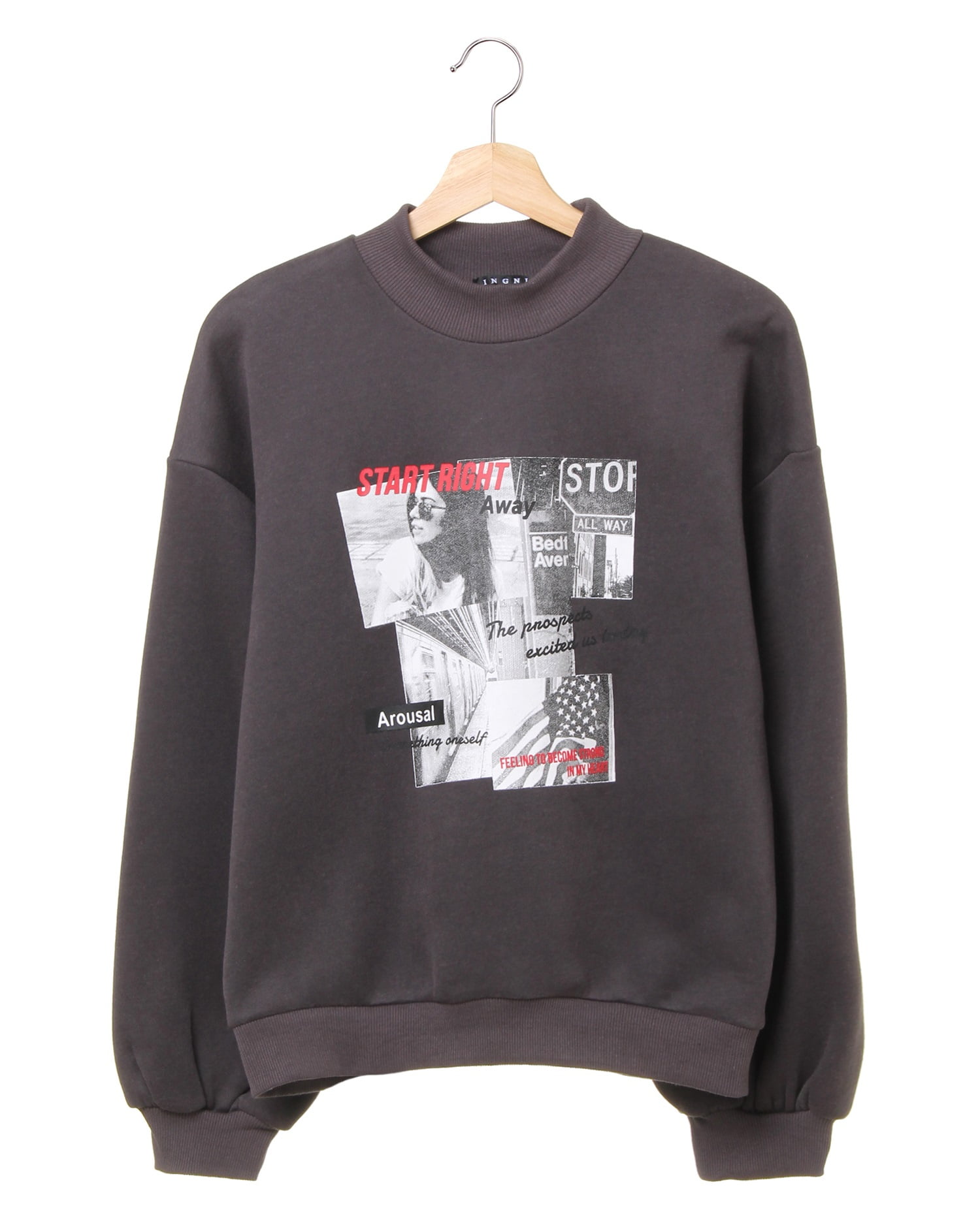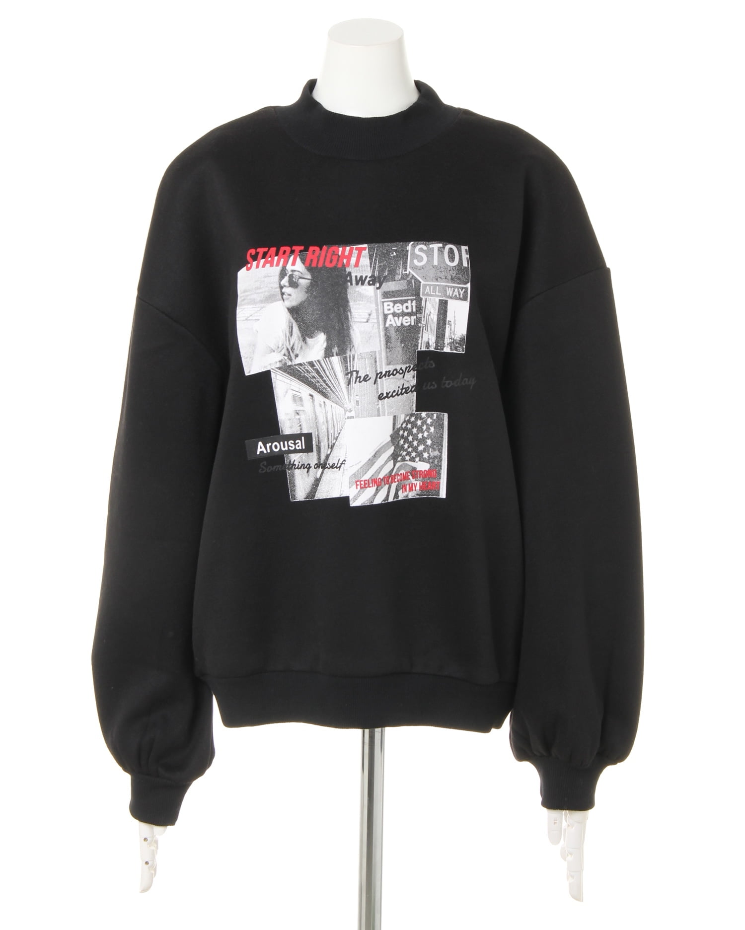 フロントに大きくあしらったフォトプリントが印象的なスウェットトップス。程よい厚みの生地は1枚でも暖かな裏起毛になっています。首元を覆うモックネックもポイント。暖かさだけでなく、すっきりとした顔周りを演出してくれます。程よい丈感でどんなボトムにもバランスよく合わせられるのも◎。ボーイズライクに着こなすのはもちろん、ふんわりスカートと合わせるのもオススメの1枚です。