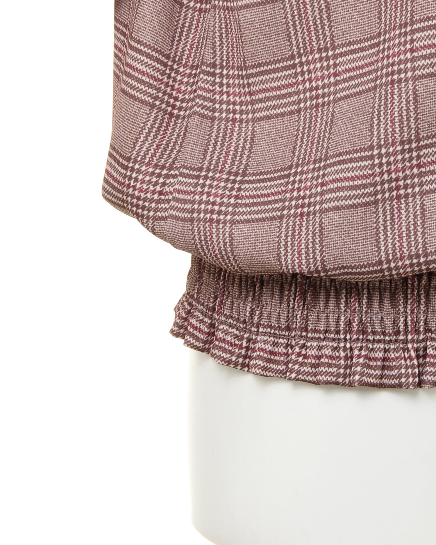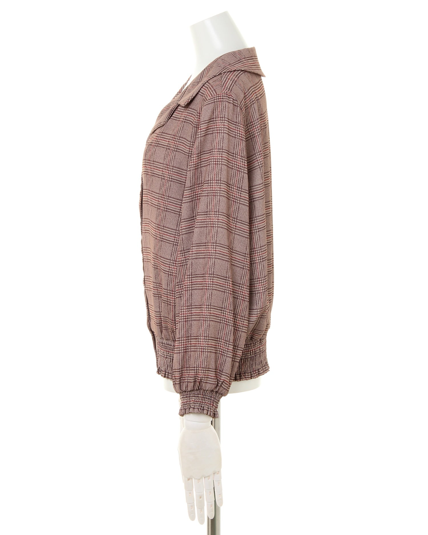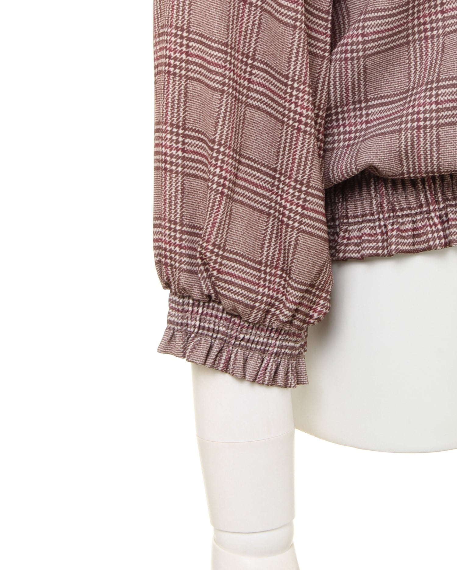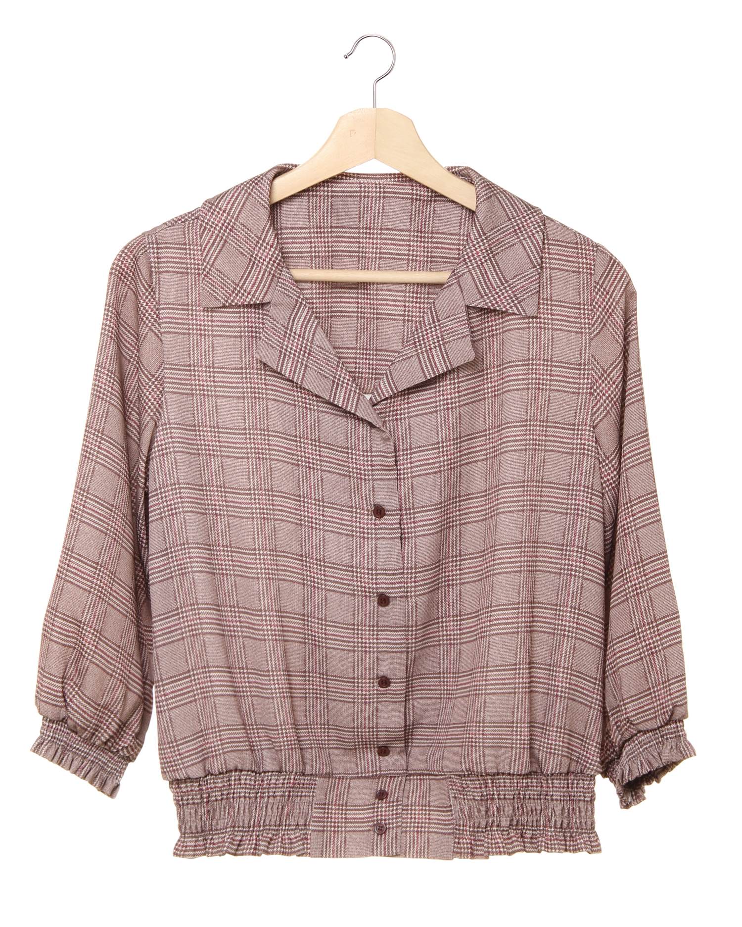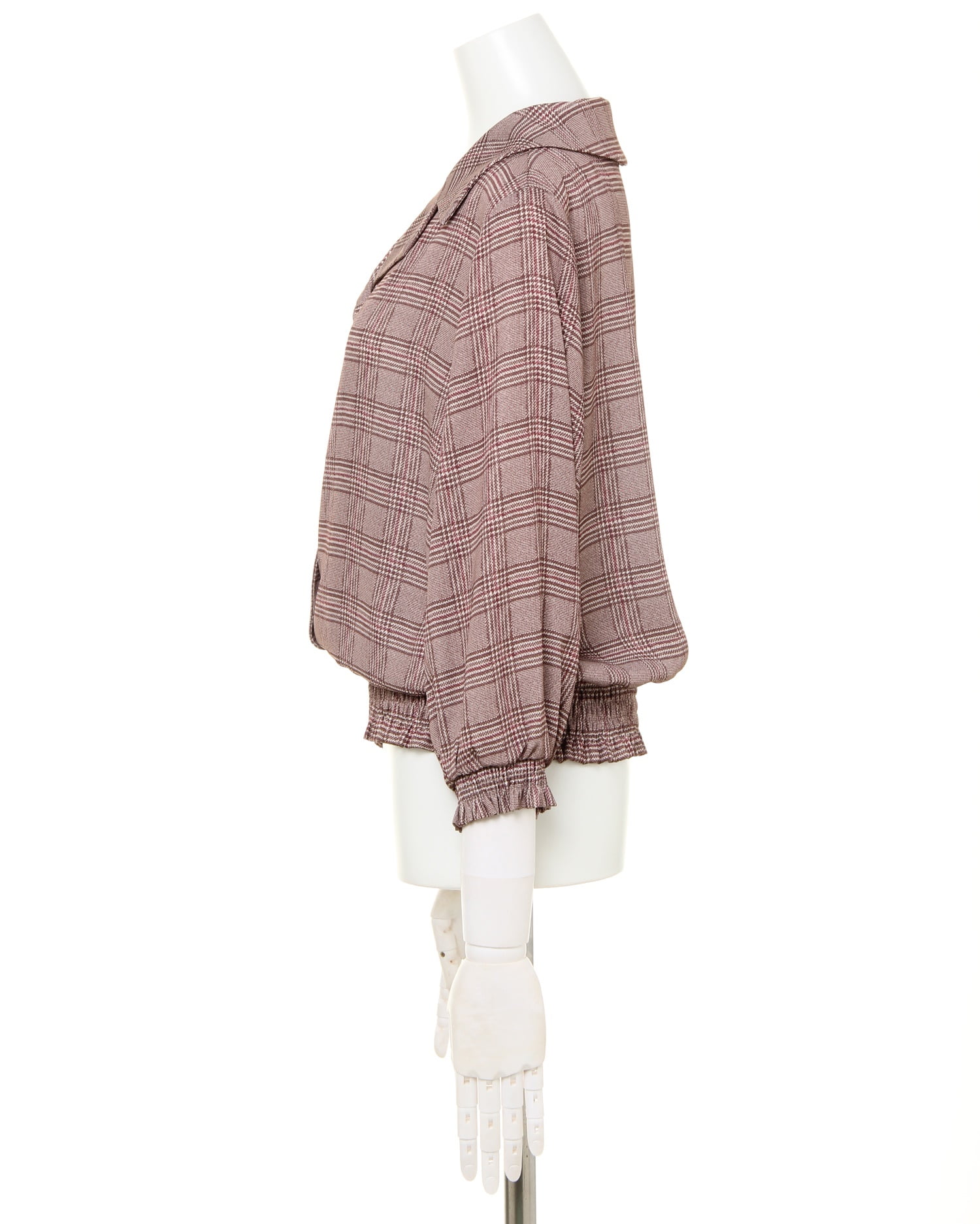 マニッシュな雰囲気のグレンチェックが季節感たっぷりのブラウスが登場。滑らかな肌触りの素材はボディに馴染み、すっきりとしたシルエットで着こなせます。顔周りを明るく見せてくれる開襟デザインが抜け感のある着こなしを叶えます。短めに設定したスリーブは、袖口にゴムを入れているのでブラウジングも可能。ボタンを外せば羽織りとしても◎。