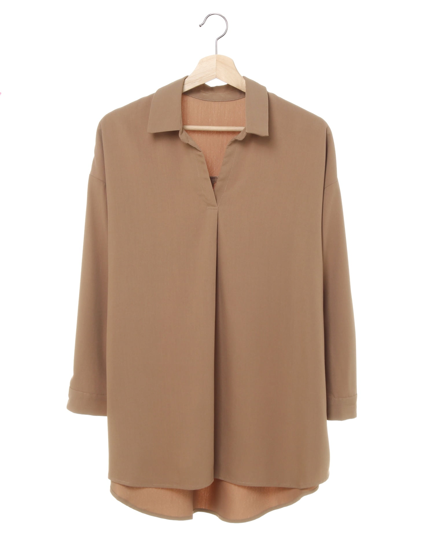 すっきりとしたスキッパーとゆったりシルエットの組み合わせが新鮮なチュニックシャツ。かっちりとしたスキッパーが顔周りをシャープに見せてくれます。レーヨン混の落ち感ある素材は、ゆったりシルエットでこなれ感のある着こなしが完成。長めの裾丈で体型カバーも叶えます。これからの季節にぴったりの落ち着いたカラー使いでシーズン長く着られます。