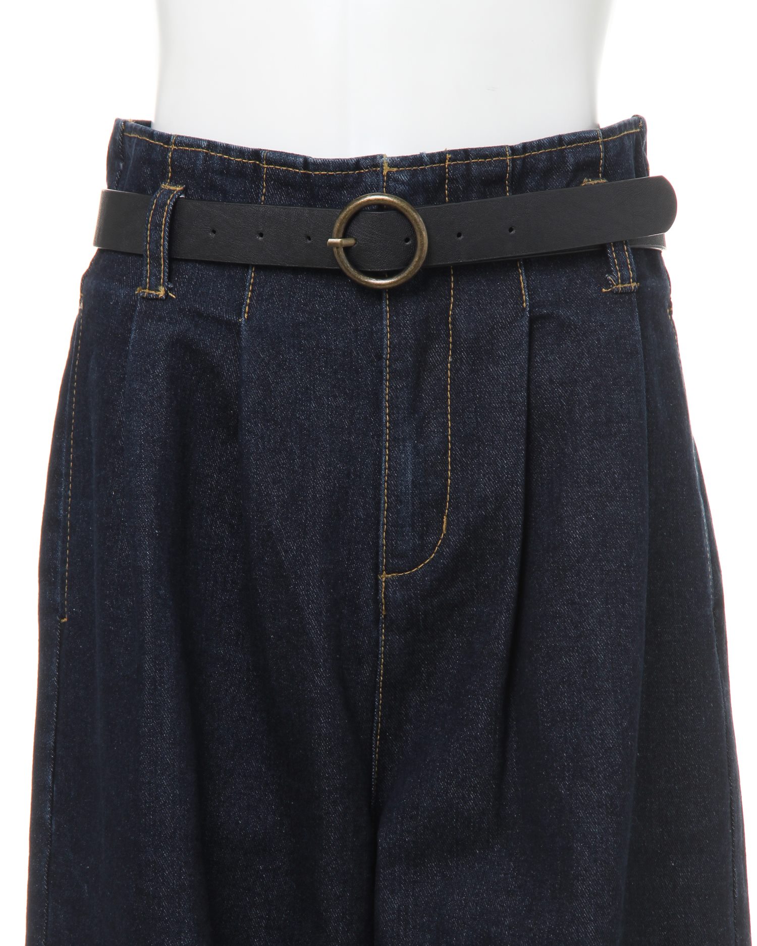 カジュアルスタイルに欠かせないデニムワイドパンツは、ワードローブに1本は欲しいマストアイテム。ワイド幅のゆったりとしたシルエットでラフな着こなしを叶えます。フロントウエスト部分に入れたタックが立体感をプラス。気になるヒップラインをカバーしつつ、すっきりとした美シルエットが脚長効果も期待出来る優れものです。ウエスト後ろ部分はゴム入りなので、窮屈感なくストレスフリーな穿き心地。トップスはコンパクトにまとめるとバランス良く決まります。シーズン問わず活躍するスタイリング力の高い優秀な逸品です。