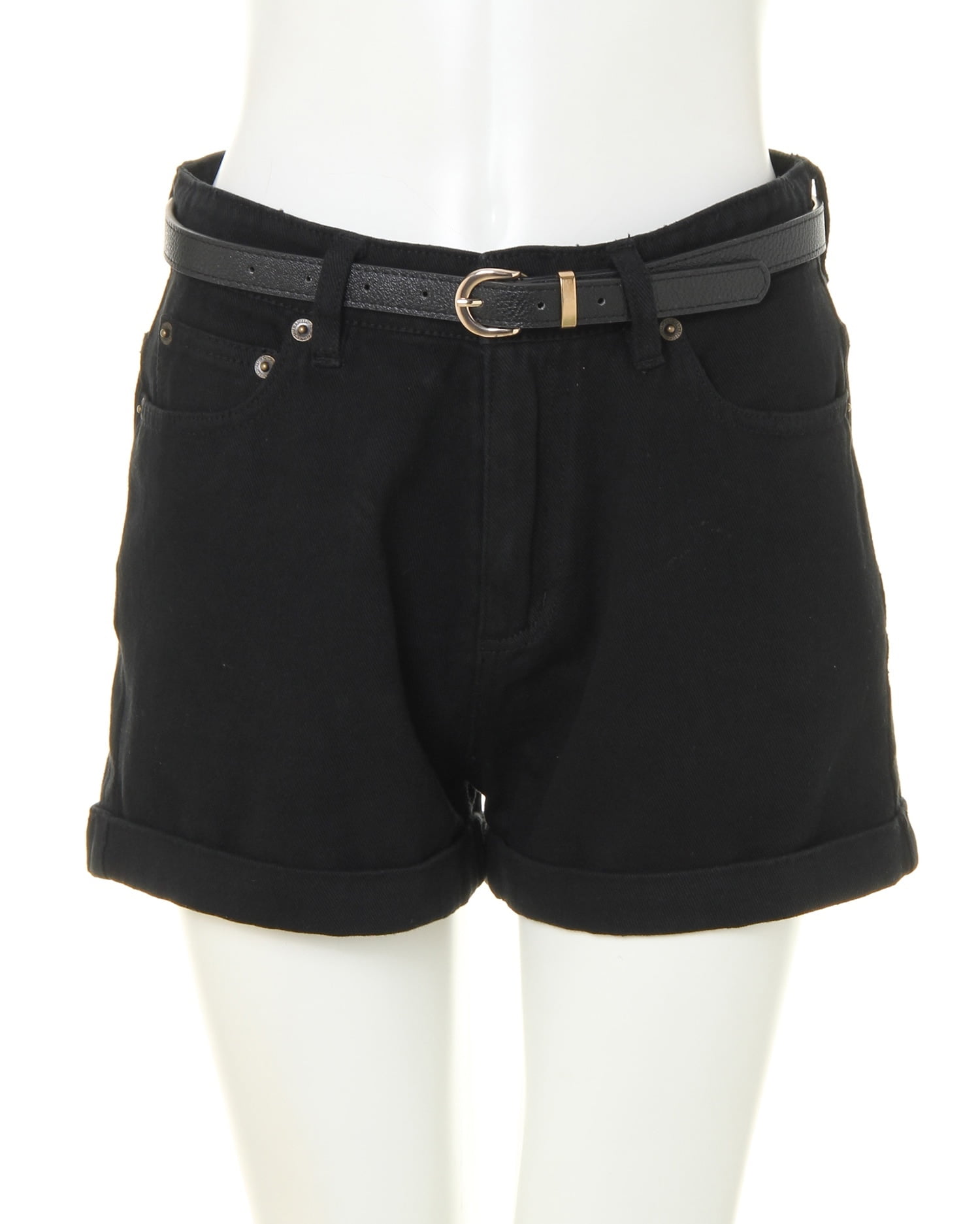カジュアルスタイルの定番、ショートパンツはコンパクトなシルエットでスタイルアップできるオススメアイテム。スタンダードな5ポケットデザインは、流行に左右されず長く愛用できます。バックウエストはゴムになっているので脱ぎ穿きも楽チン。高めの位置に入れたバックポケットは小尻効果も抜群です。付属の細帯ベルトは落ち着いた雰囲気のゴールドバックルが◎。