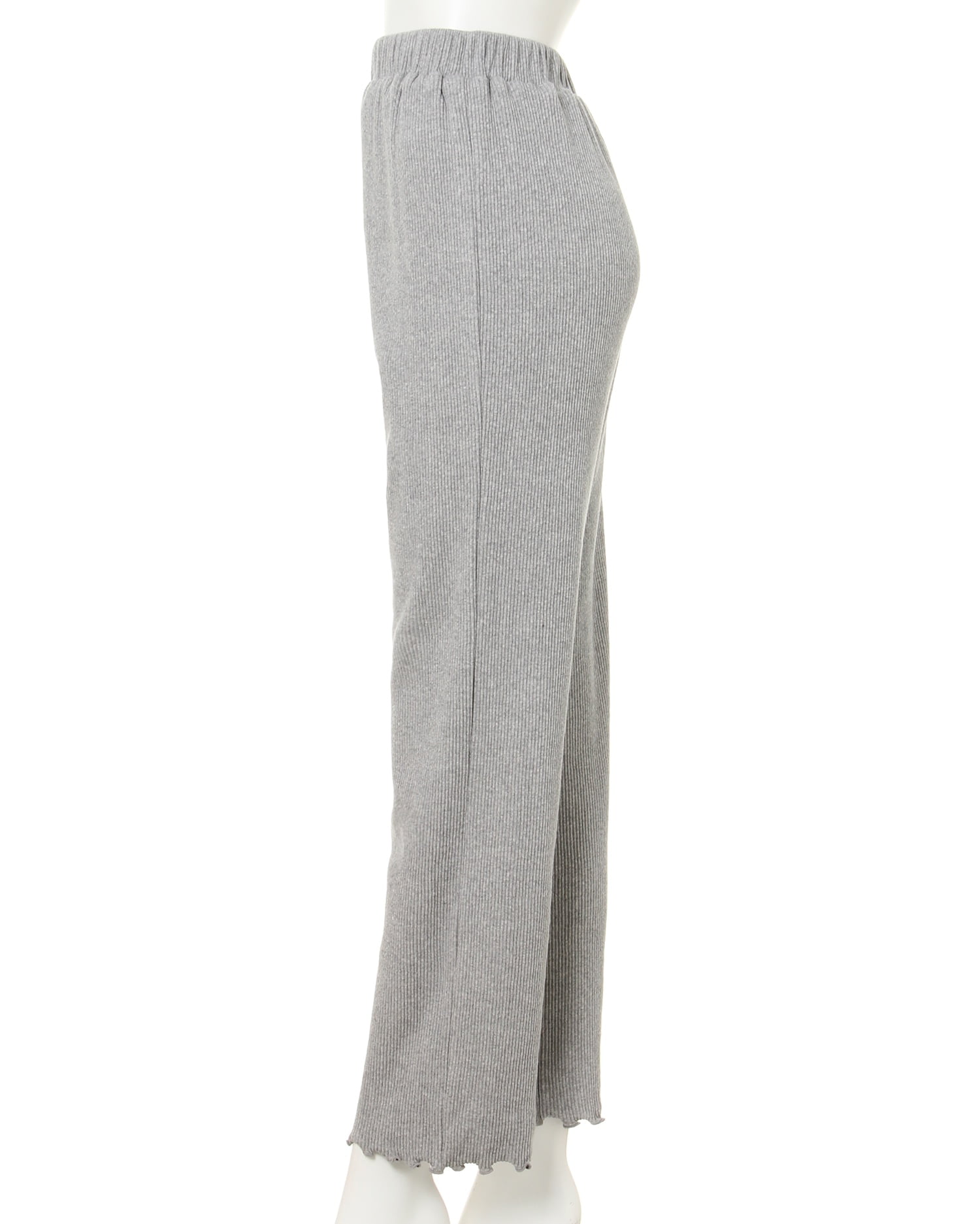 リラックスした着心地で一度穿いたら病みつきになるリブパンツ。ボディに馴染む柔らかな素材は伸縮性抜群。ワイドなシルエットと細めのリブが、スタイルアップを叶えてくれる優秀アイテムです。着回しやすいベーシックカラーを揃えているので、普段使いにぴったり。ワンピースに合わせた着こなしもオススメです。裾部分のメロウデザインがアクセント。