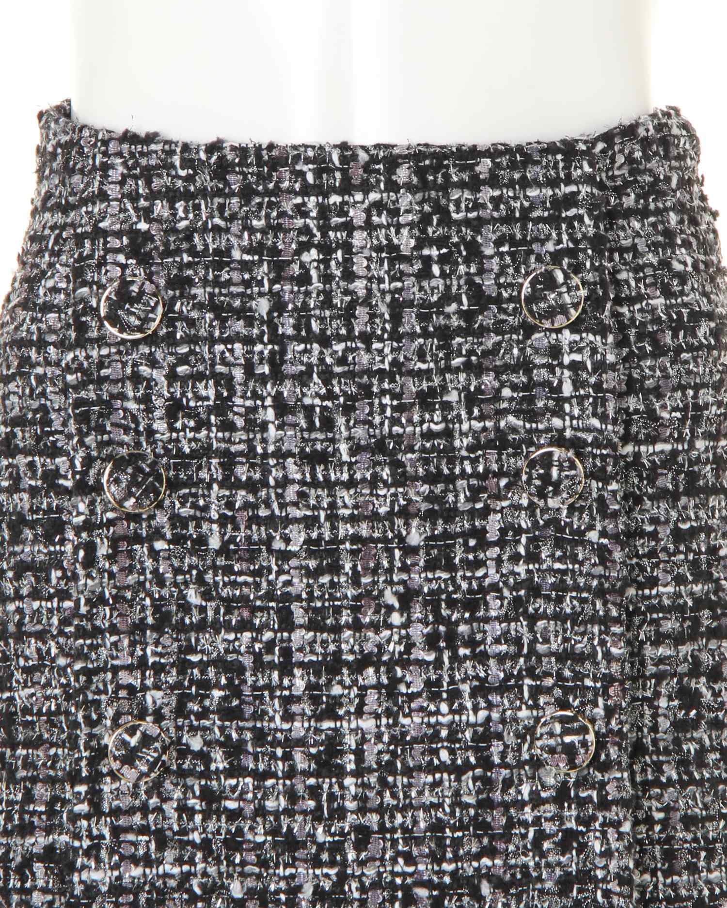 フェミニンムードを高めてくれる愛されコーデが叶う台形スカート。ざっくりとした味わいのあるツイード素材が季節感漂う1枚です。程よい厚みの生地はしわになりにくく、デイリー使いにぴったり。コンパクトな台形シルエットがレッグラインをきれいに見せてくれます。ウエスト後ろ部分はゴム仕様で脱ぎ穿きも楽チン。ストレスフリーの快適な穿き心地です。トップスインですっきりと、ボリュームニットでスウィートな着こなしもオススメです。