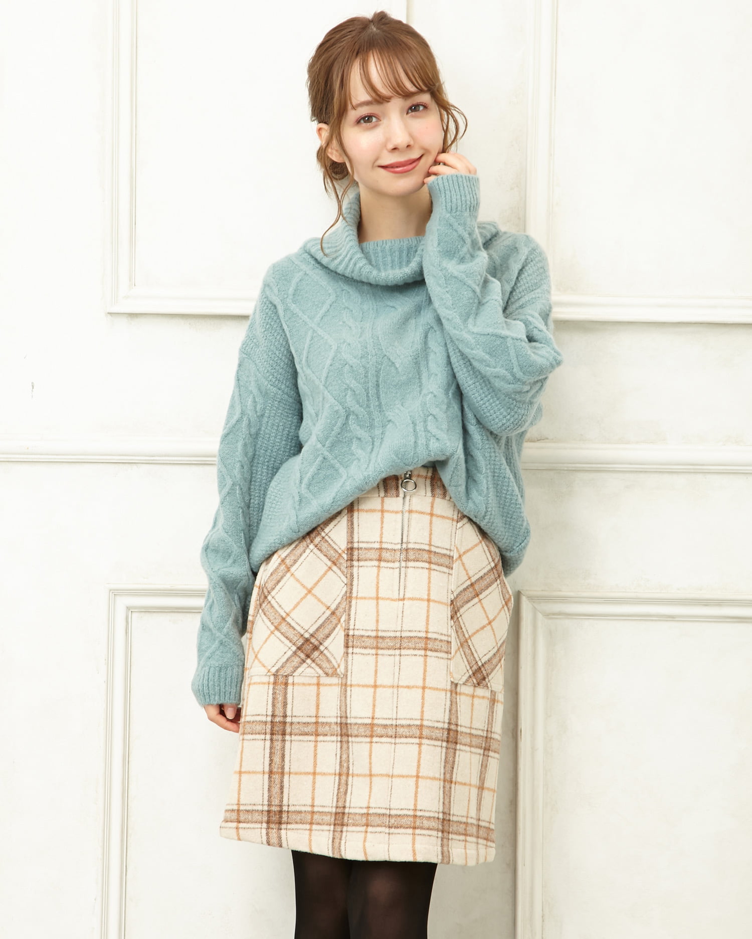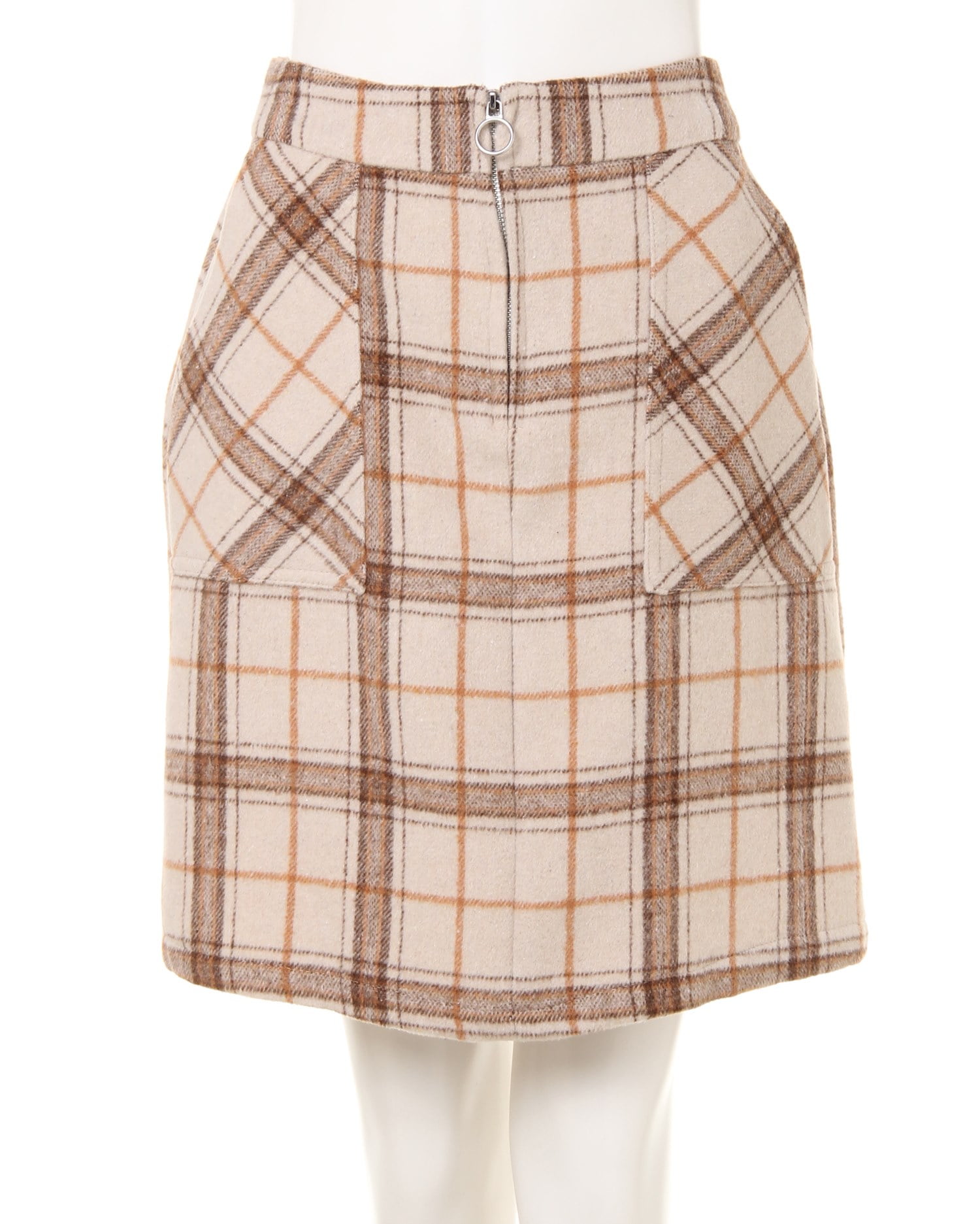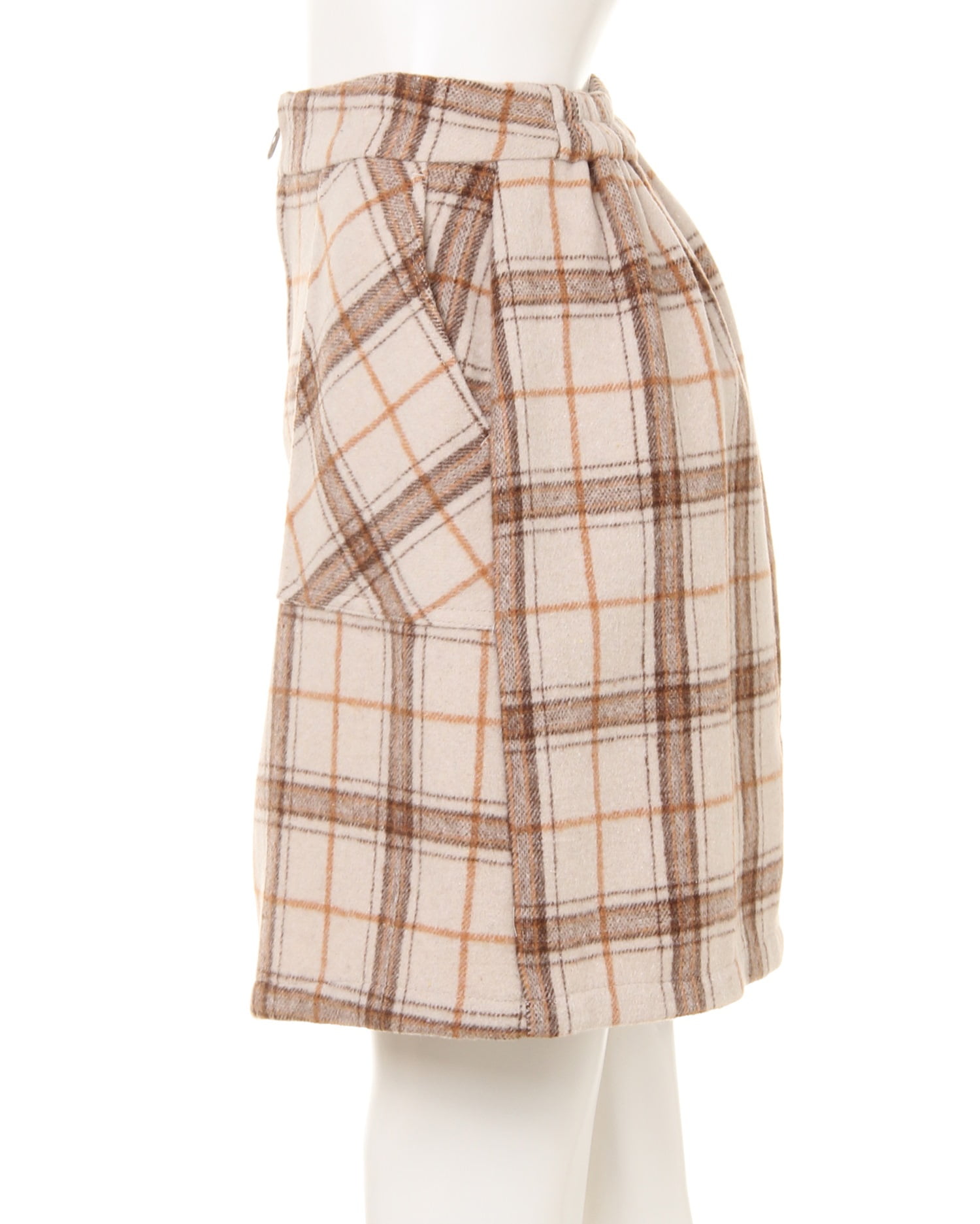 落ち着いた深みのある色合いに幅の異なるチェック柄が映えるフロントジップスカート。ウエストから裾に向かって広がるコンパクトな台形シルエットが、女性らしいラインを演出。スタイルアップ効果も期待出来ます。バランスの取れた着こなしを叶えるスカートは、ニットやシャツなどボリュームのあるトップスとも好相性。デイリー使いに重宝します。深めのオープンポケットも嬉しいポイント。