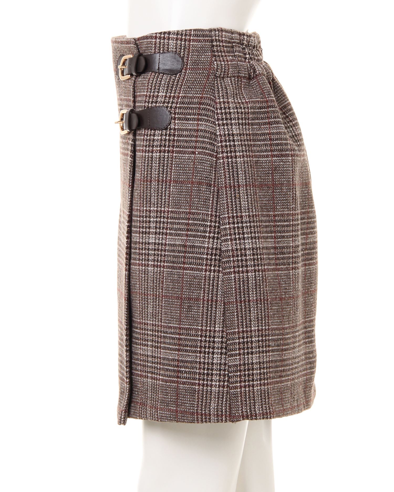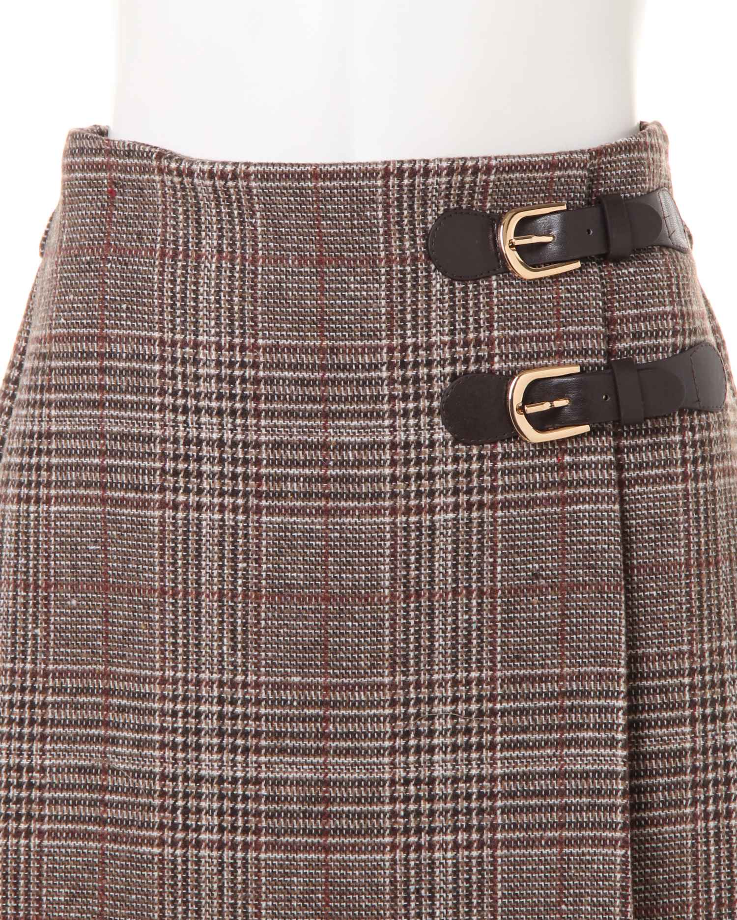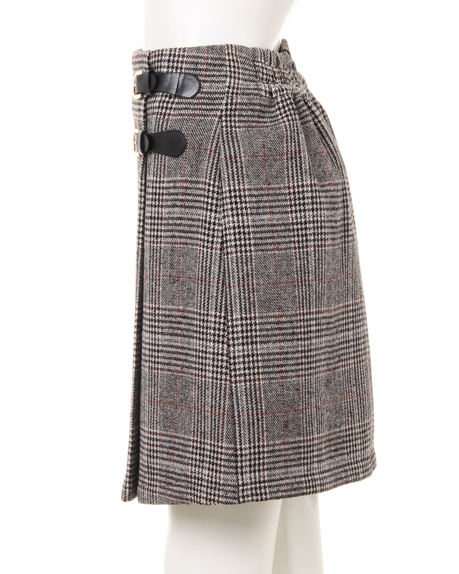シックな大人の装いを叶えてくれるグレンチェックスカート。サイドベルトをアクセントにしたことで、上品な女性らしい印象をプラスします。程よい厚みのある生地は、型崩れしにくくデイリーにぴったり。コンパクトな台形シルエットはレッグラインをきれいに見せ、脚長効果も狙える優れものです。1枚で主役級のアイテムは、ワンカラートップスのインスタイルですっきり着こなすのが◎。