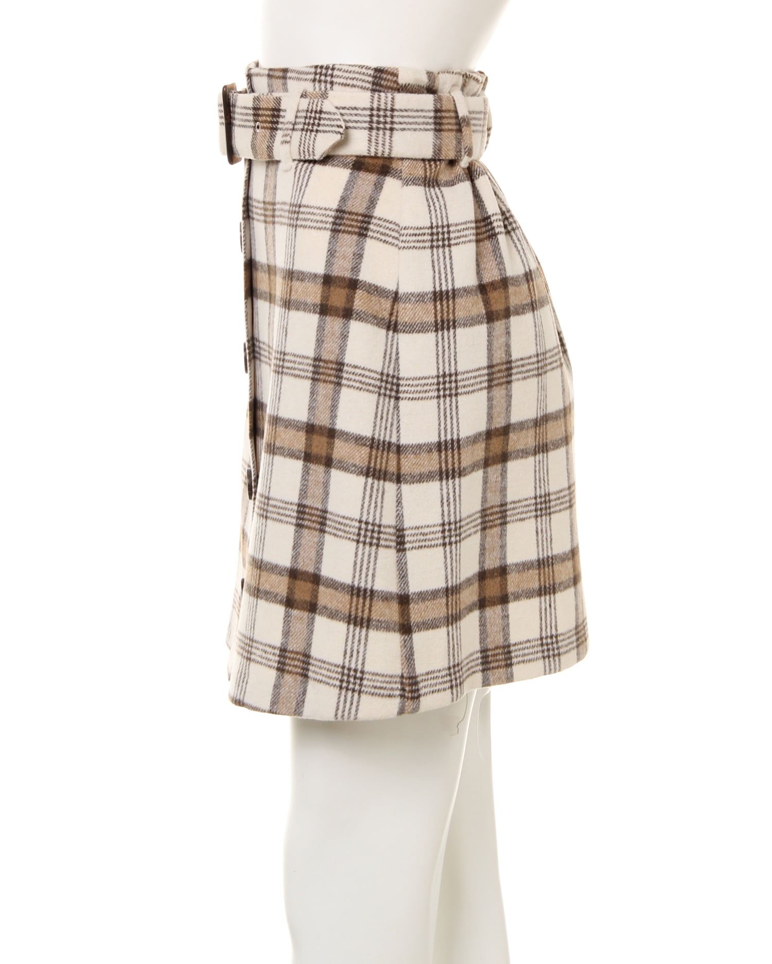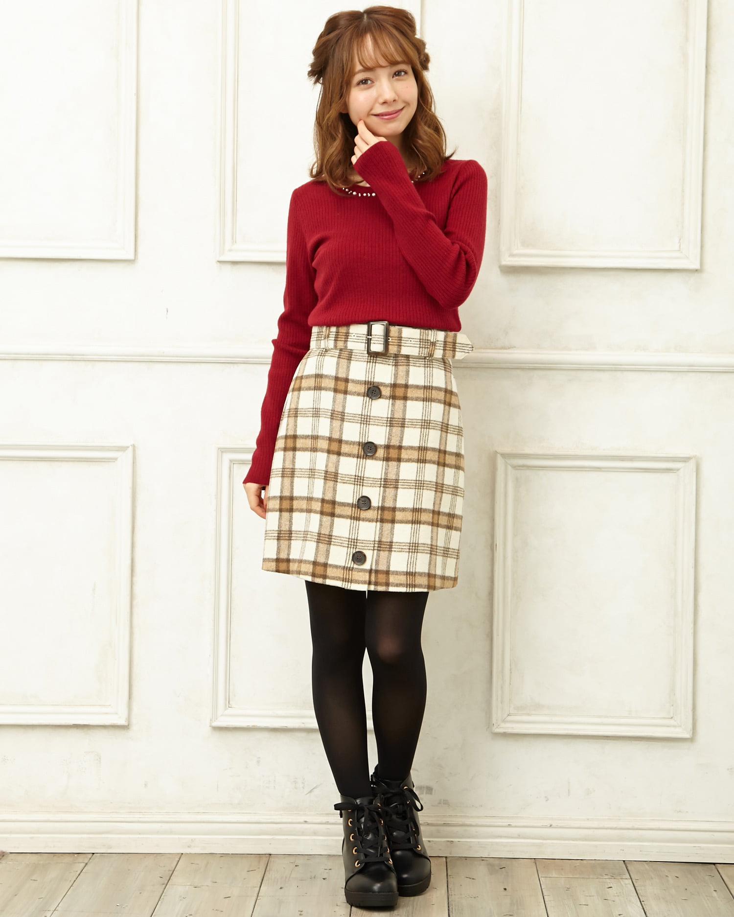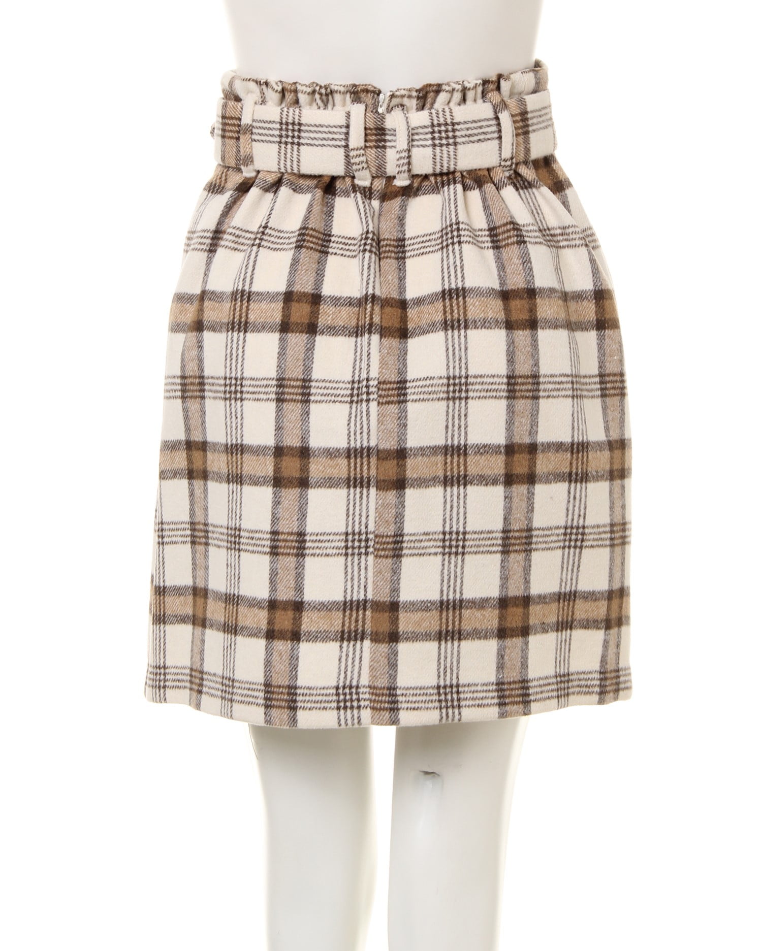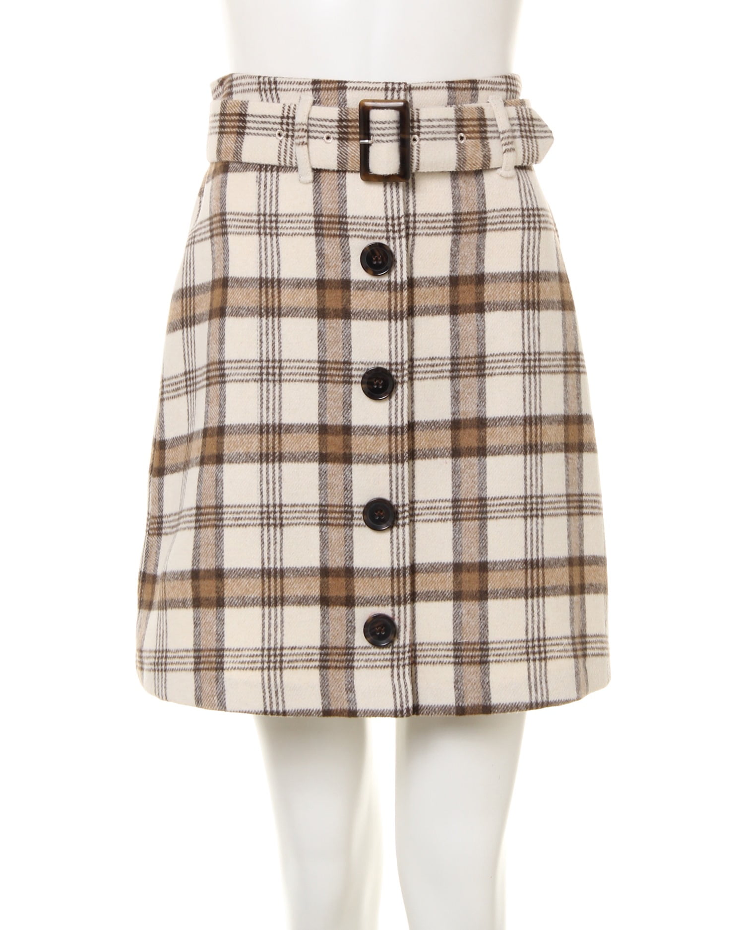 毛足の長いシャギーが季節感をあおるスカートは台形シルエットが魅力。裾へ向かって広がるフォルムが太ももをすっきり見せてくれます。フロントにあしらった大きめボタンがレトロなアクセントに。バックウエストはゴムになっているので穿き心地も快適です。スクエアバックルの共布ベルトが付いているので、トップスインスタイルもサマになります。