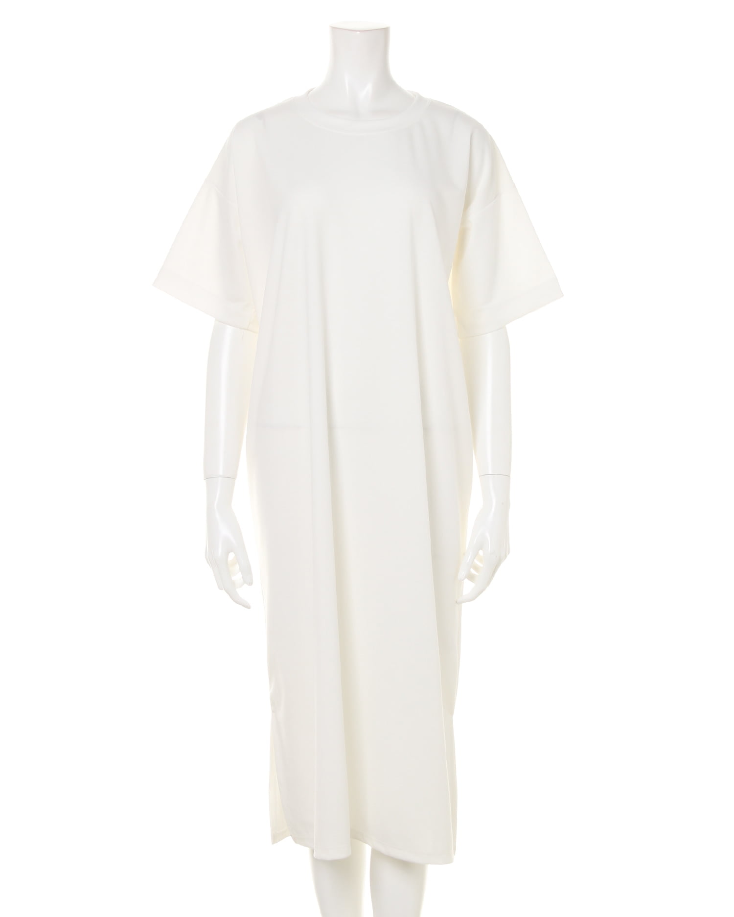 さらっと着るだけでトレンドのスタイルが決まる優秀アイテムのTシャツワンピース。すとんと落ち感のあるIラインやひざ下までのロング丈が、リラクシーな着心地を叶えます。柔らかく伸びのいい生地とサイドスリットがアクティブな動きにも対応。ポンチ素材は形が崩れにくいので、デイリー使いにもおすすめです。合わせる小物で自分らしい着こなしを楽しんで。