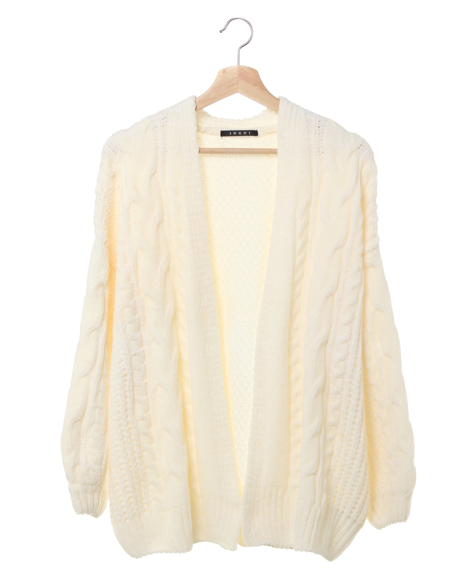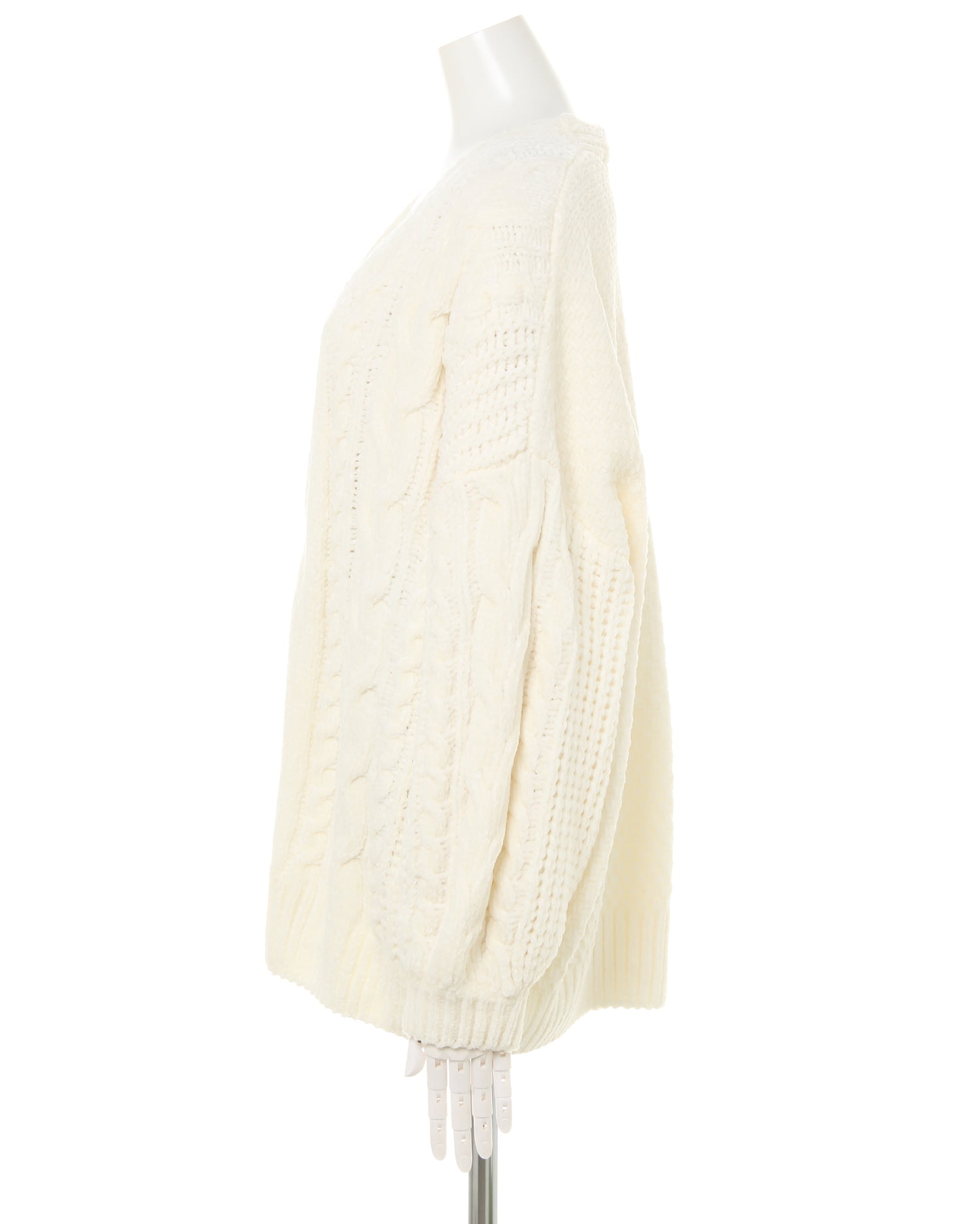 ブライトモールの光沢がナチュラルな印象のケーブル編みに新鮮な表情をプラスする1枚。ほっこり感のあるカーディガンをさっと羽織れるボタンレスデザインで仕立てています。ボリュームがありながらもすっきりとしたシルエットで着こなせるので、普段使いにぴったりです。程よい裾丈は合わせるボトムスを選ばないのが◎。ゆったりめのシルエットでリラックスした着心地を楽しめます。