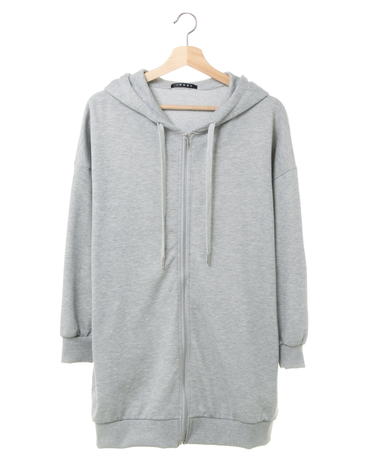 チュニック風にも着こなせる丈感が魅力のスウェットパーカーです。羽織としてはもちろん、前のジップを閉めてトップス風に着こなすのも◎。ドロップショルダーとゆったりめの身頃がトレンド感のある1枚です。フード付きでカジュアルスタイルにぴったり。袖口と裾はしっかりとしたリブになっているのでブラウジングも可能です。