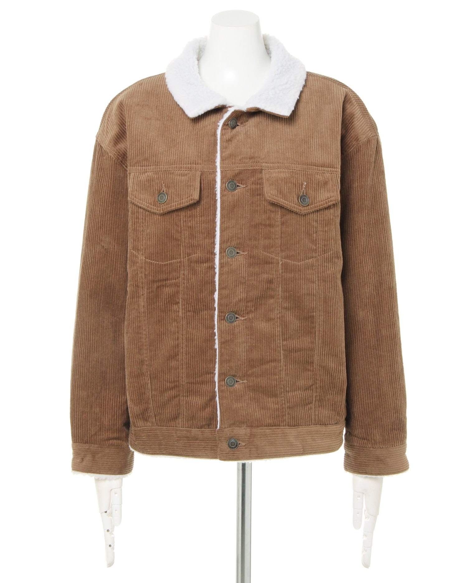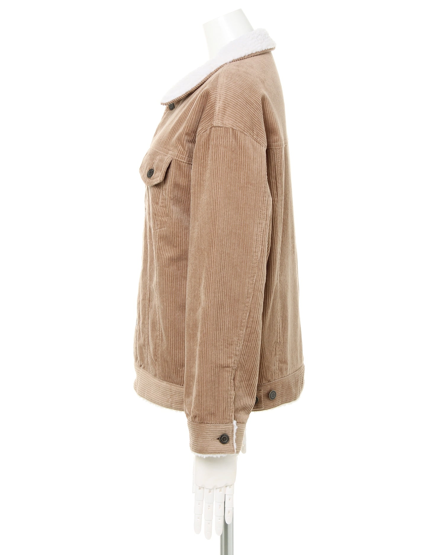 カジュアルスタイルに欠かせないGジャンも細畝のコーデュロイ素材で大人の落ち着いた雰囲気のある1枚に。ベーシックカラーで合わせやすくコーデの幅が広がる優秀なアイテムです。裏地はふわもこのボア素材で肌触り良く、保温性も◎。袖部分は中綿素材で切り替えられていて暖かさもありつつ、ボリュームを軽減しています。ビッグシルエットが今年らしく、ゆとりのある快適な着心地を実現。デイリーユースにオススメです。