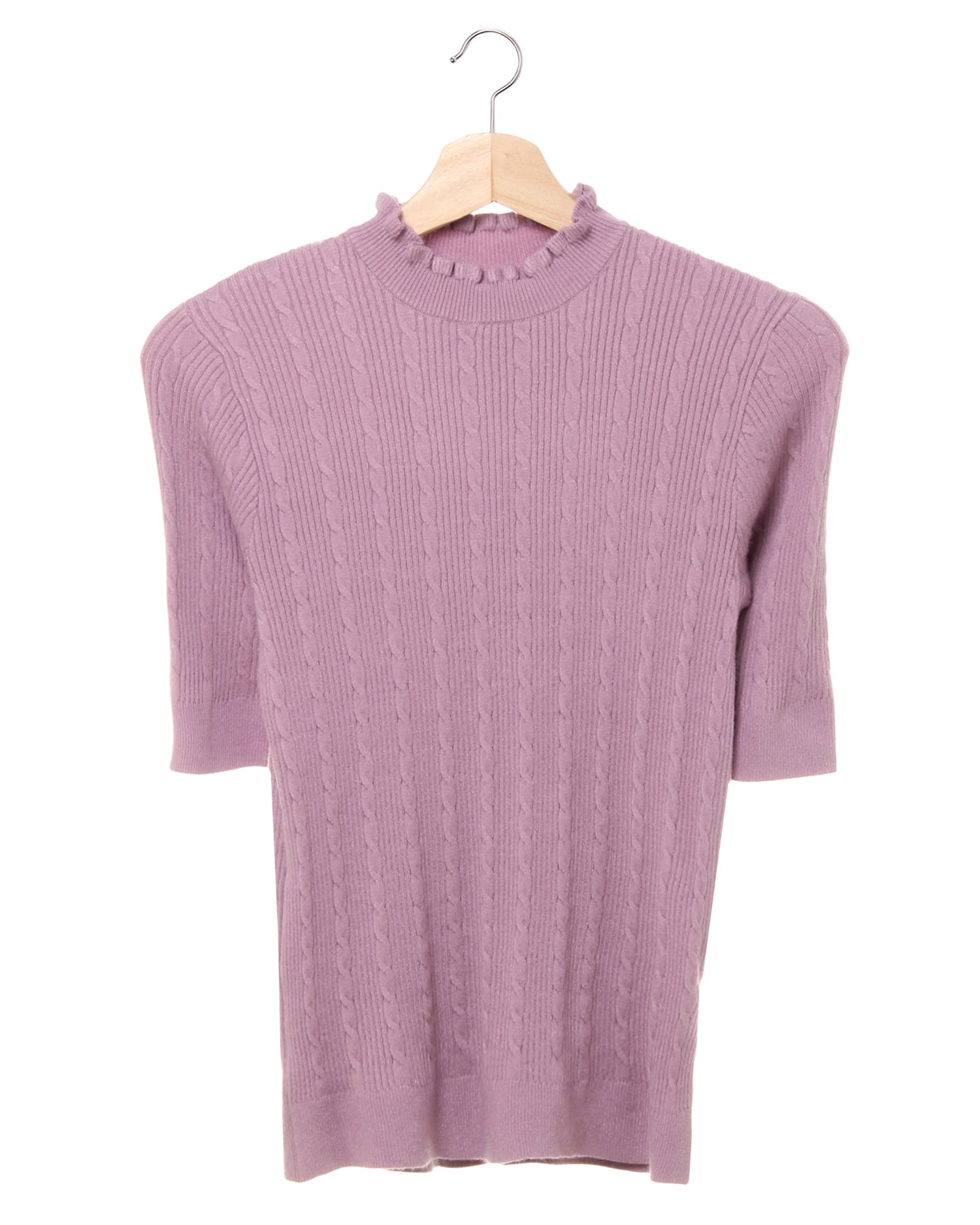 縦ラインを強調する細めのケーブル編みが清楚な雰囲気のトップス。ネック部分のフリル使いが、女性らしい華やかさをプラスします。心地良い柔らかな肌触りと程よいフィット感で着心地抜群。5分袖が気になる二の腕をカバーしてくれるのも嬉しいポイント。 落ち着きのあるワンカラーで品良く仕立てたアイテムは、カジュアルからフェミニンと幅広い着こなしが楽しめます。