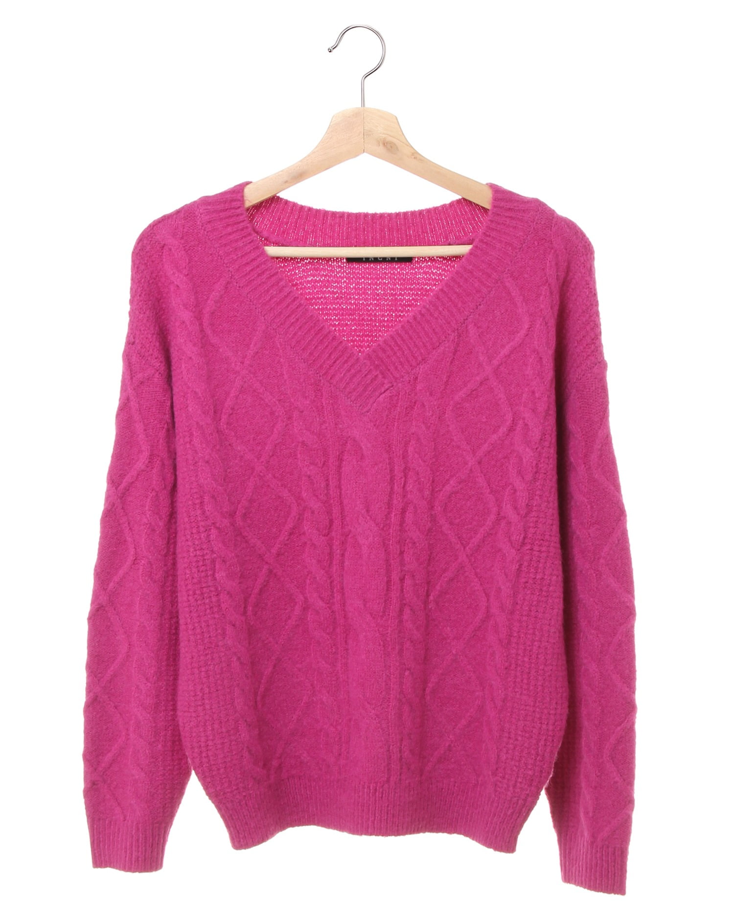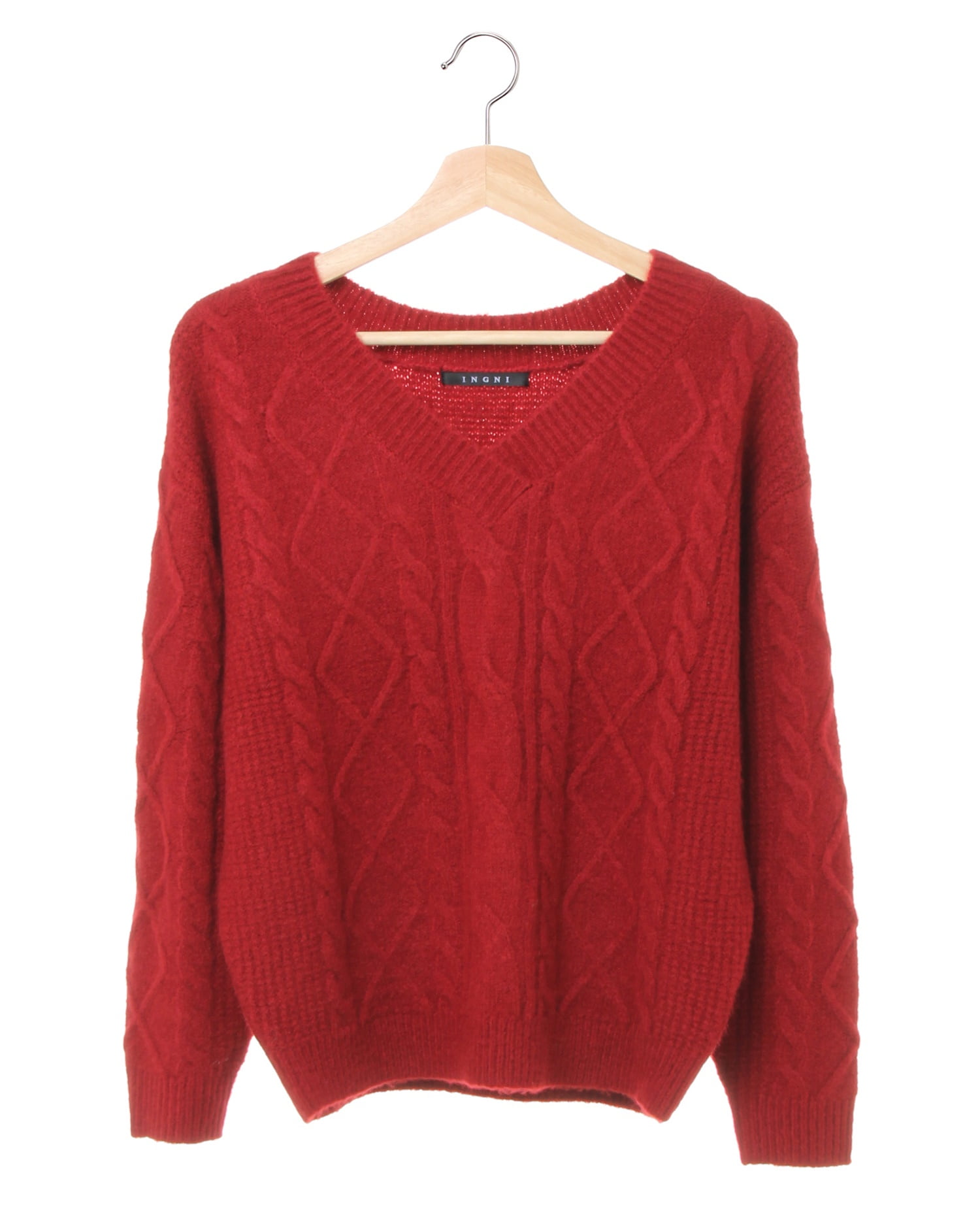 モチモチとした生地に思わず頬ずりしたくなるニットです。Vネックにすることで、ふんわりボリュームのあるアイテムもすっきりシルエットで着こなせるのが嬉しい。フロントをケーブル編みで仕上げているので、カジュアルスタイルにもぴったり。ゆったりめの身頃はシャツインスタイルもオススメです。ベーシックなアイテムなので着回しやすいのもポイント。