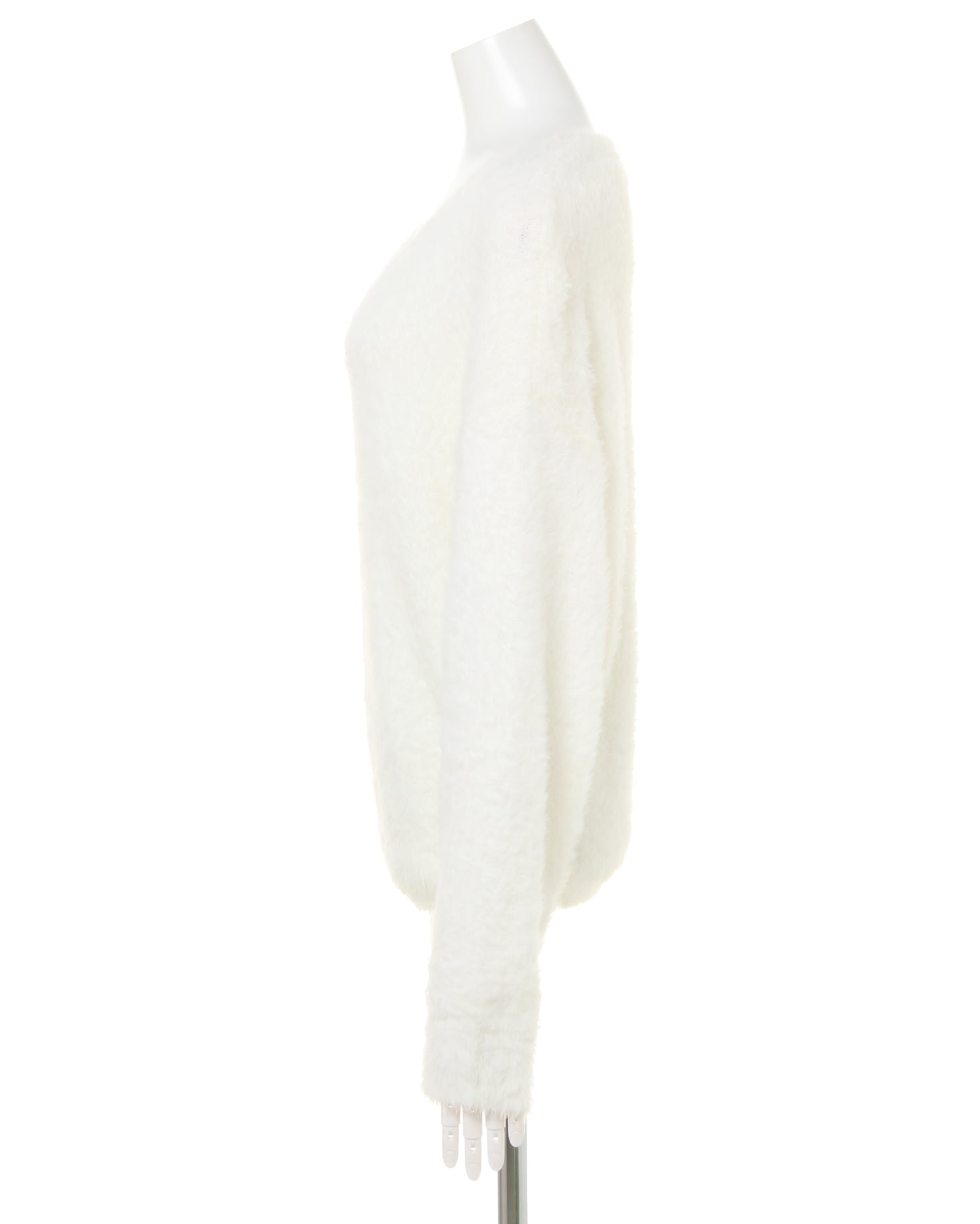 毛足の長いフェザーヤーンのニットトップスは、1枚で愛されコーデが完成するオススメのアイテム。単色ながらも表情があるので、存在感も抜群です。襟元はVネックですっきりとした印象。シンプルでベーシックなシルエットが合わせやすく、普段使いにぴったりです。ゆったりめの身頃は、インナーを合わせてももたつかないのが嬉しいポイント。