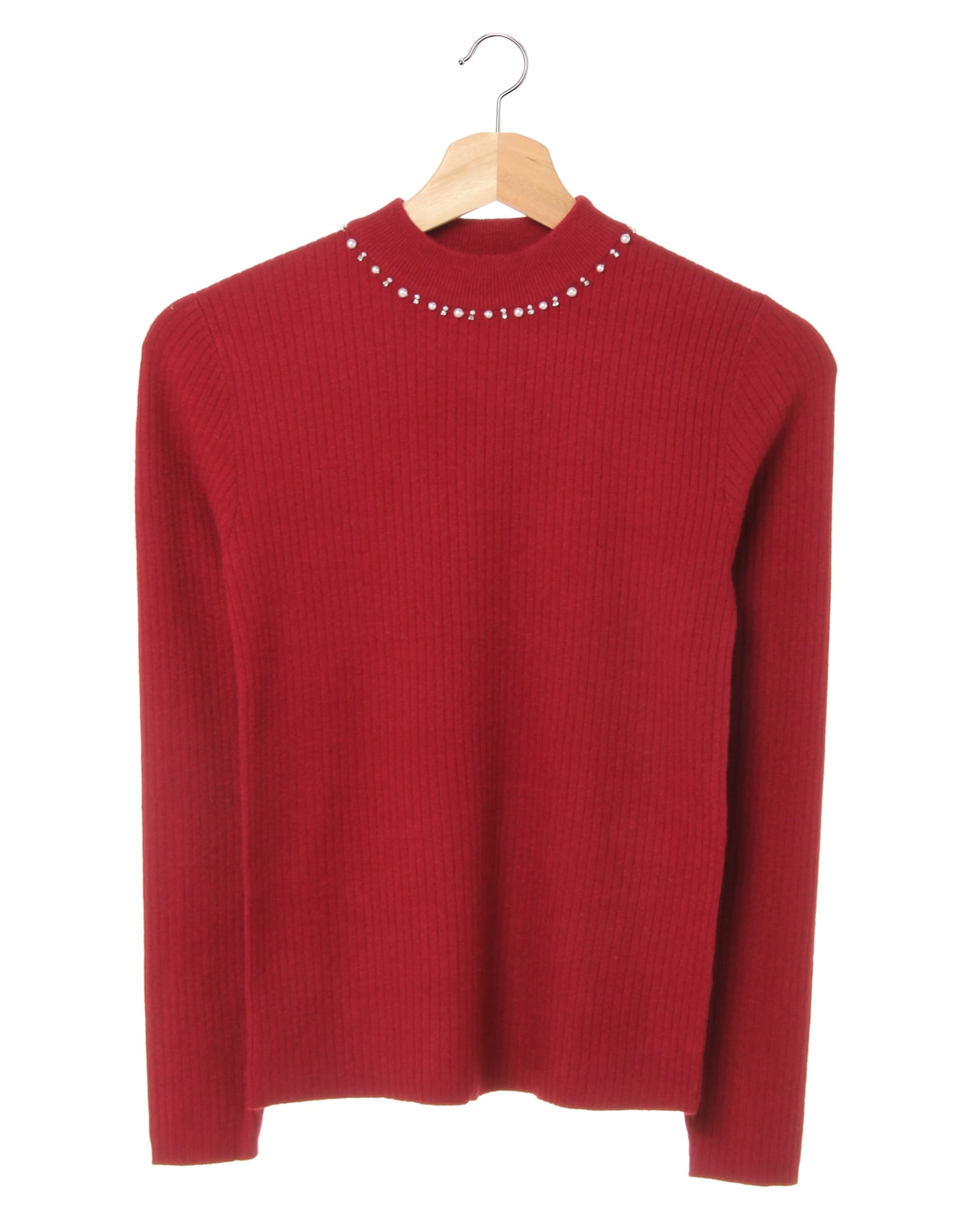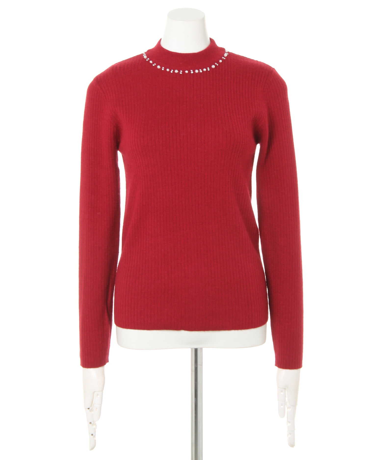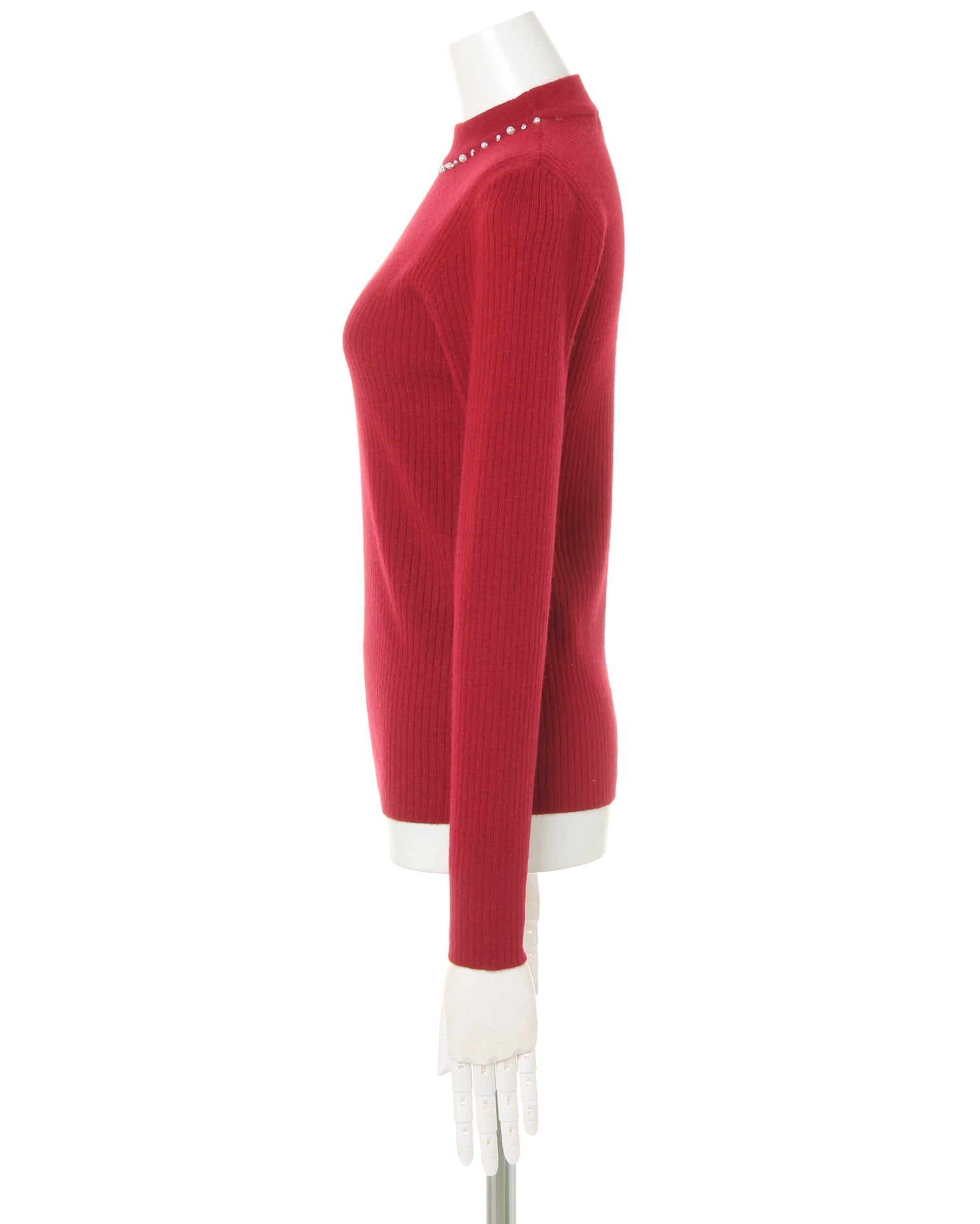 柔らかな肌触りと程よいフィット感が心地良いシンプルなハイネックニット。細めの縦リブがすっきりとした美シルエットを演出、スタイルアップも狙えます。ネックラインにあしらったパール装飾が、まるでネックレスを付けているかのような高級感をプラス。自然と顔周りを明るく彩ります。べーシックなデザインで合わせやすく着回し力抜群な1枚。豊富なカラー展開にも注目です。