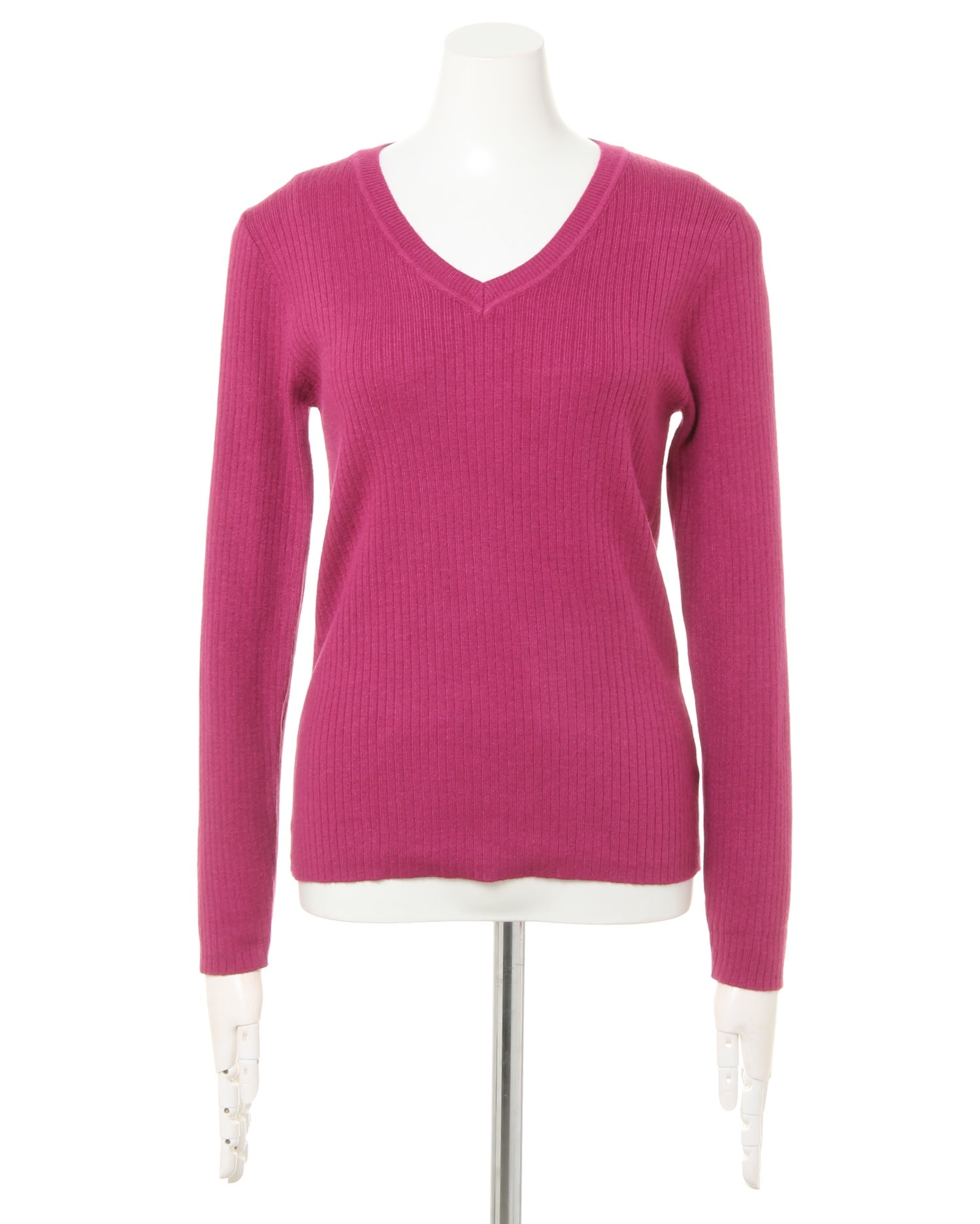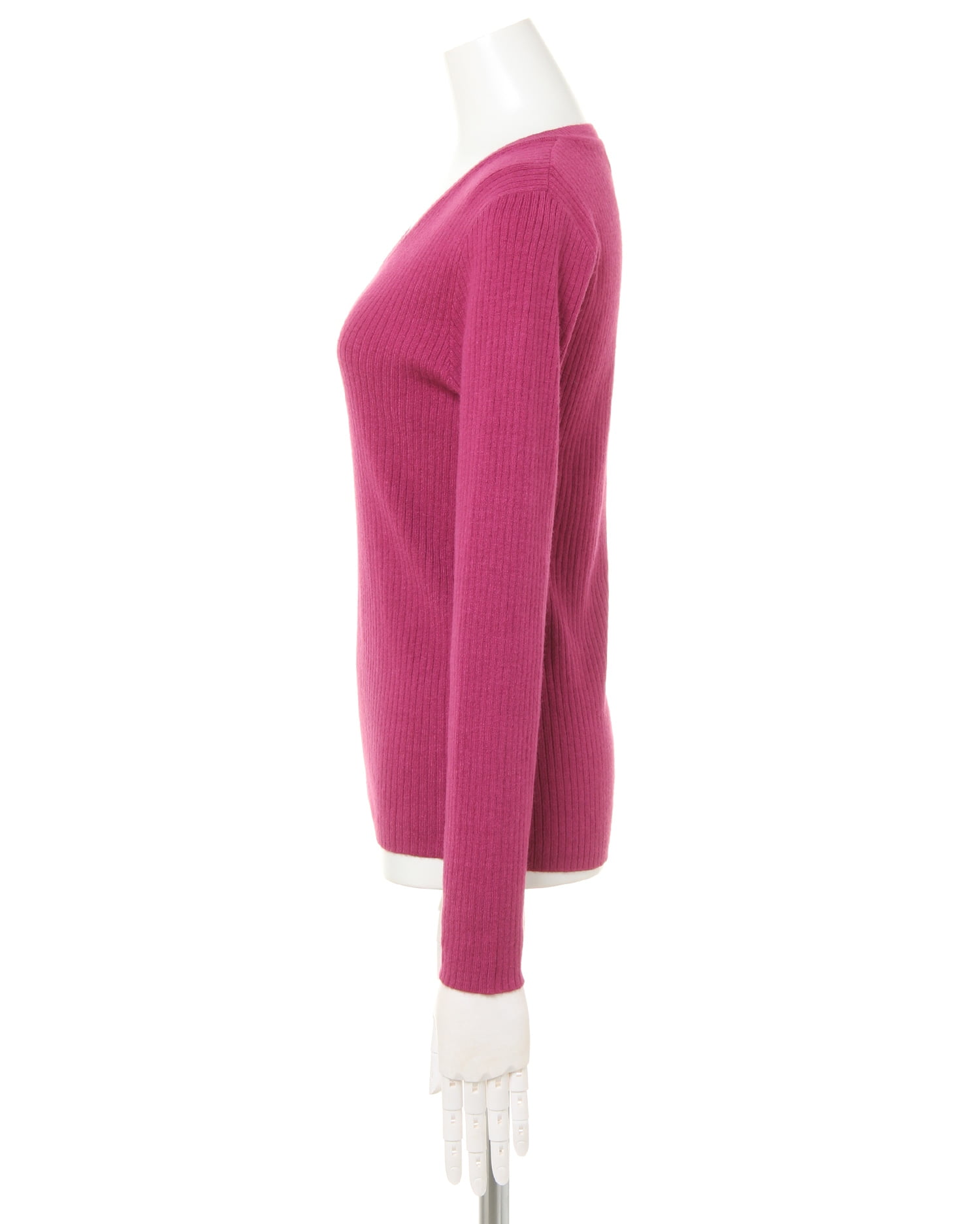 さらりとした肌触りと程よいフィット感のある柔らかな総針編みが着心地の良さを叶えるニットトップス。すっきり開いたVネックがデコルテと顔周りをきれいに見せてくれます。縦リブ素材がボディラインに沿い、女性らしいシルエットを自然と演出。ワンカラーで着回しやすいので、デイリーにオススメの1枚。光沢があり上品な雰囲気でオンオフ問わず、幅広いシーンで活躍してくれる優秀アイテムです。