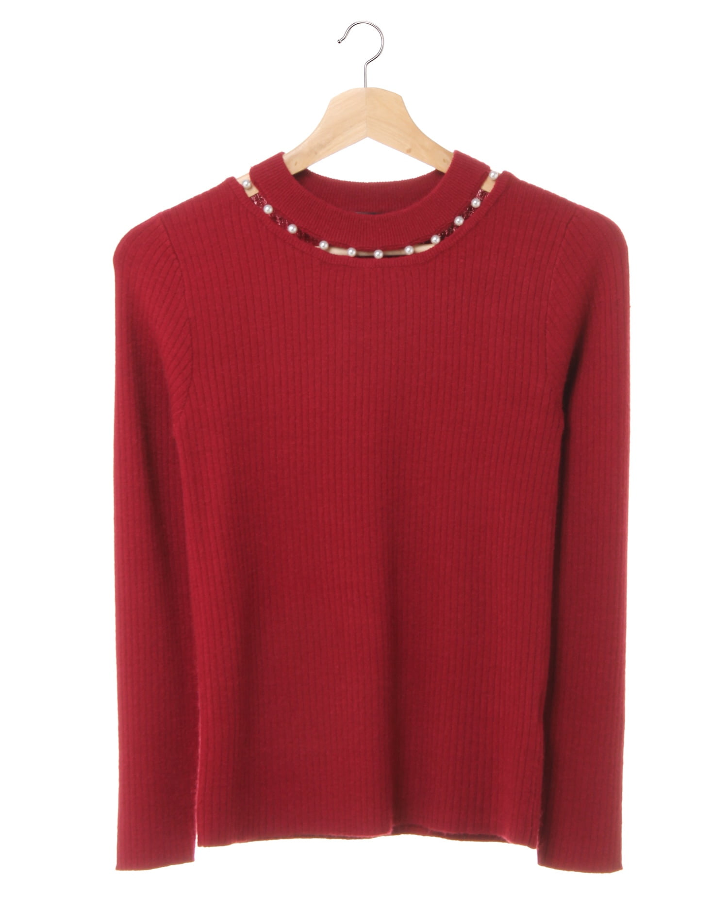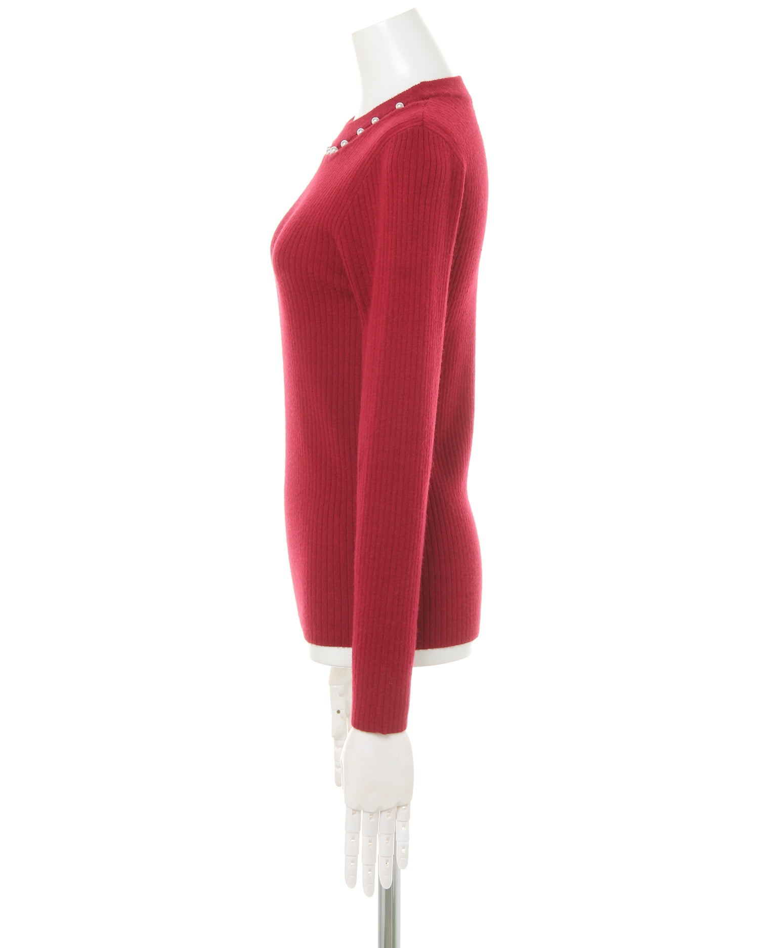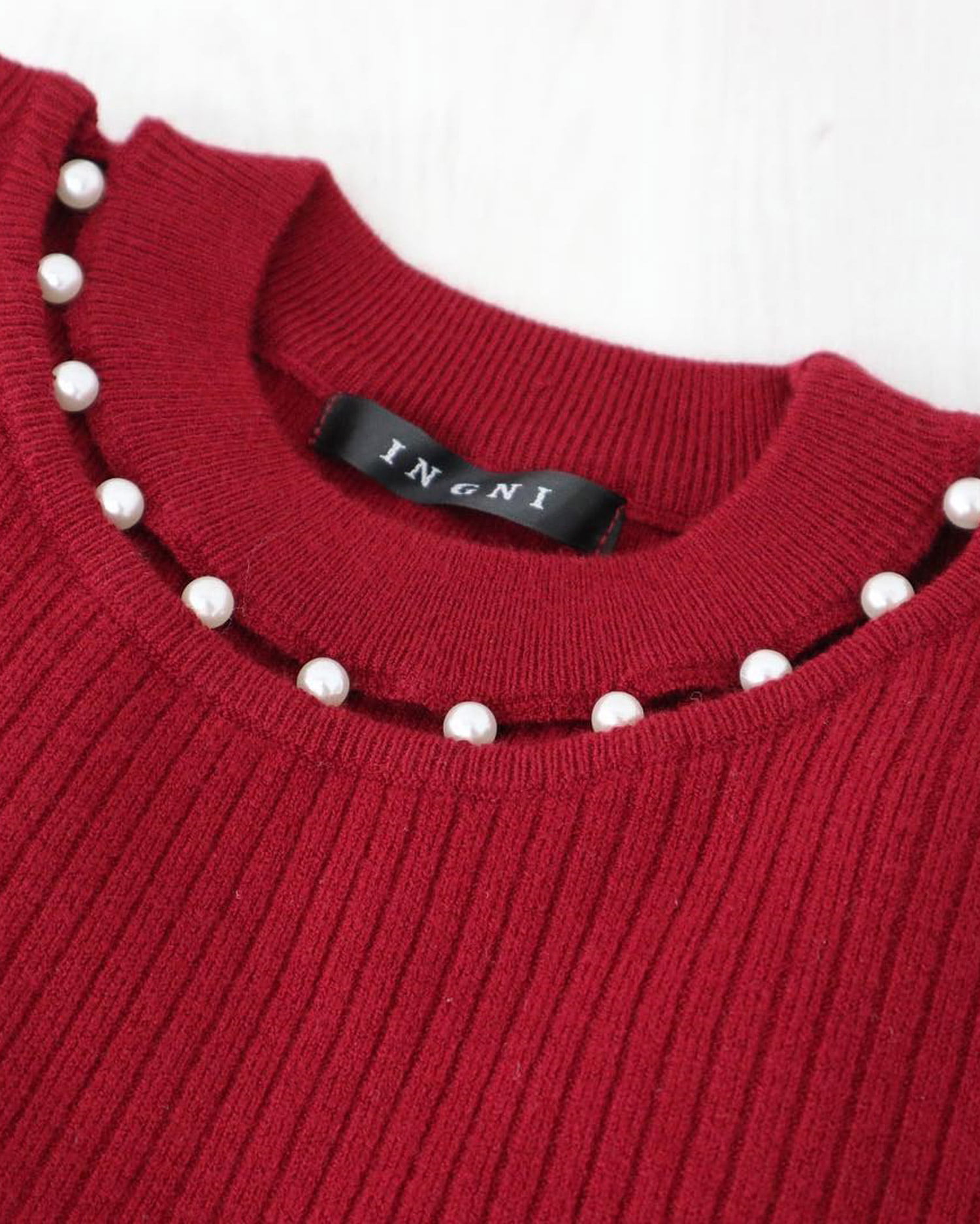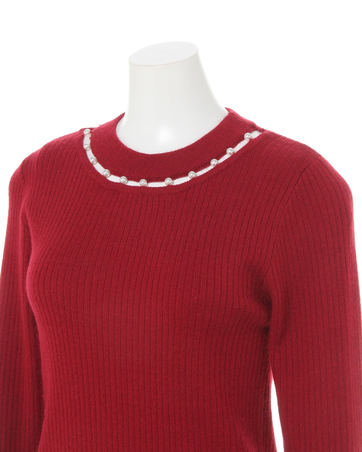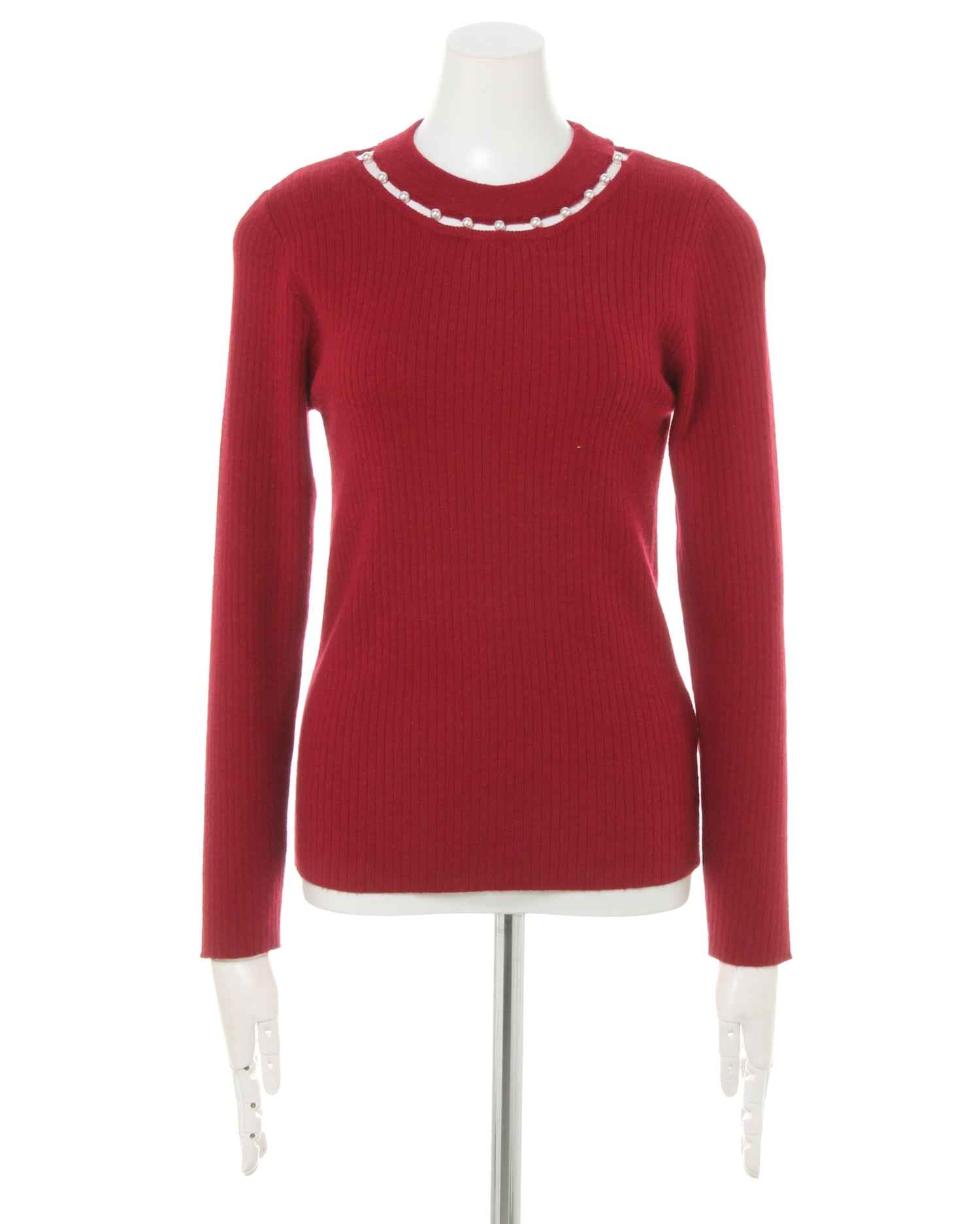 エレガントな襟元のデザインが魅力のリブニットが登場です。切り抜いたようなネックラインにあしらったパールビジューが◎。顔周りをすっきり明るく彩ってくれます。細リブがしなやかにボディに沿い、上半身をすっきり見せてくれるのもポイント。コンパクトなサイズ感は1枚で着るのはもちろん、ジャケットとインとしてオンオフ問わずに着回せます。