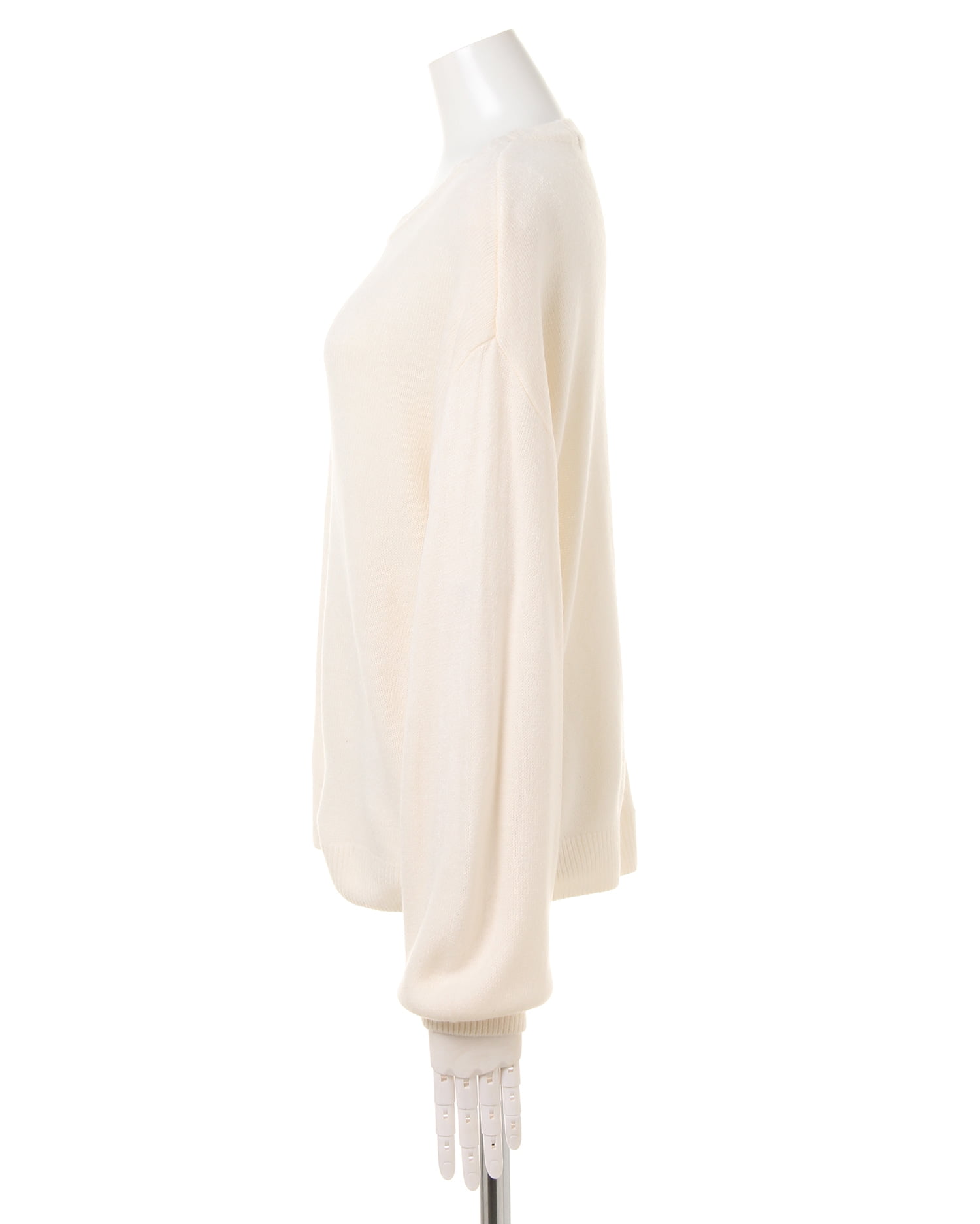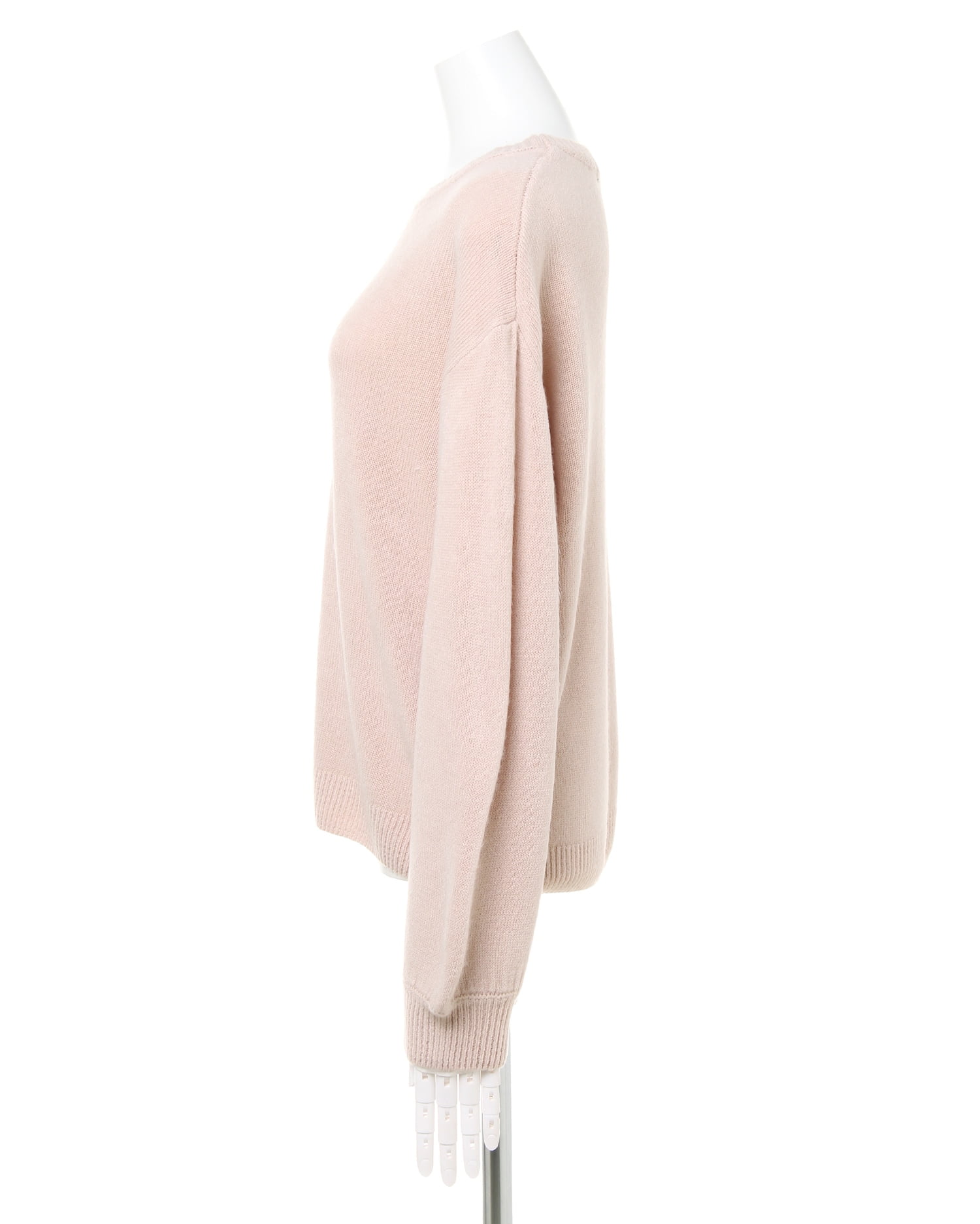しっとり柔らかな風合いで暖かくシンプルなディテイルが使いやすいニット。広めに開いたリブ素材のクルーネックが顔周りをすっきりと見せてくれます。ワンカラーデザインなので着回しやすく、デイリーにぴったりの1枚。ゆったりシルエットがラフな着こなしを叶えます。フロントのちびロゴ刺しゅうがアクセントに。様々なボトムスとも好相性の優秀アイテムです。