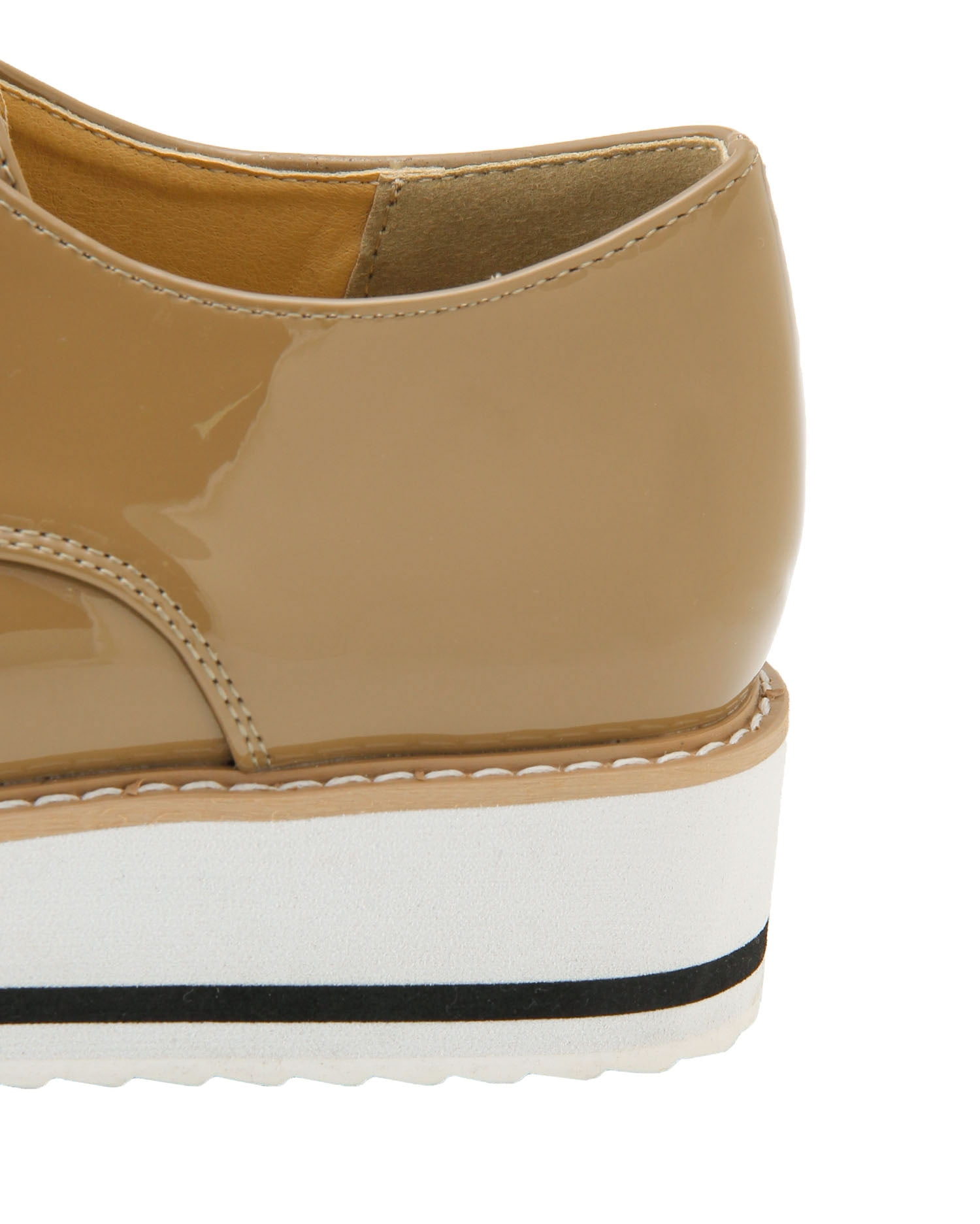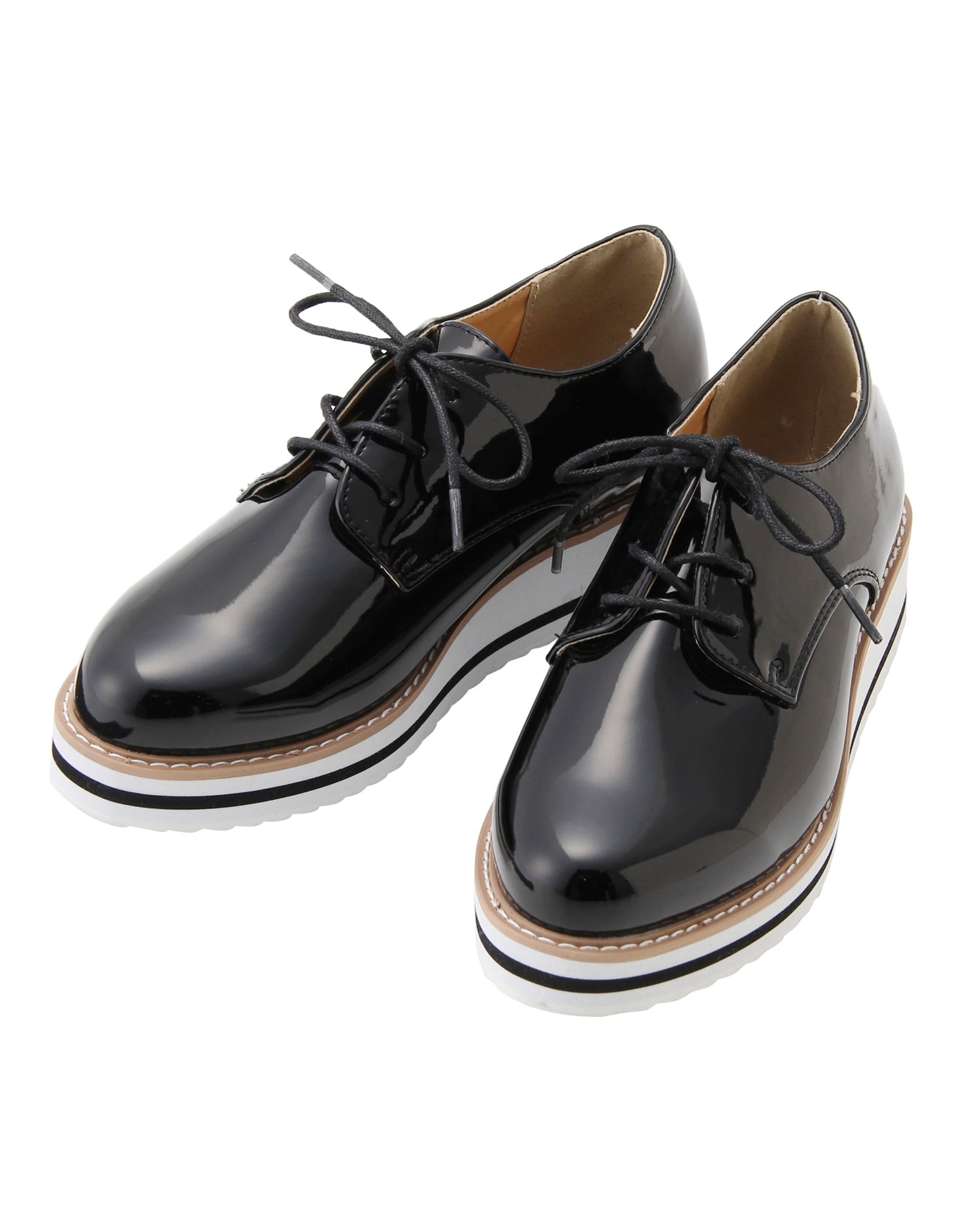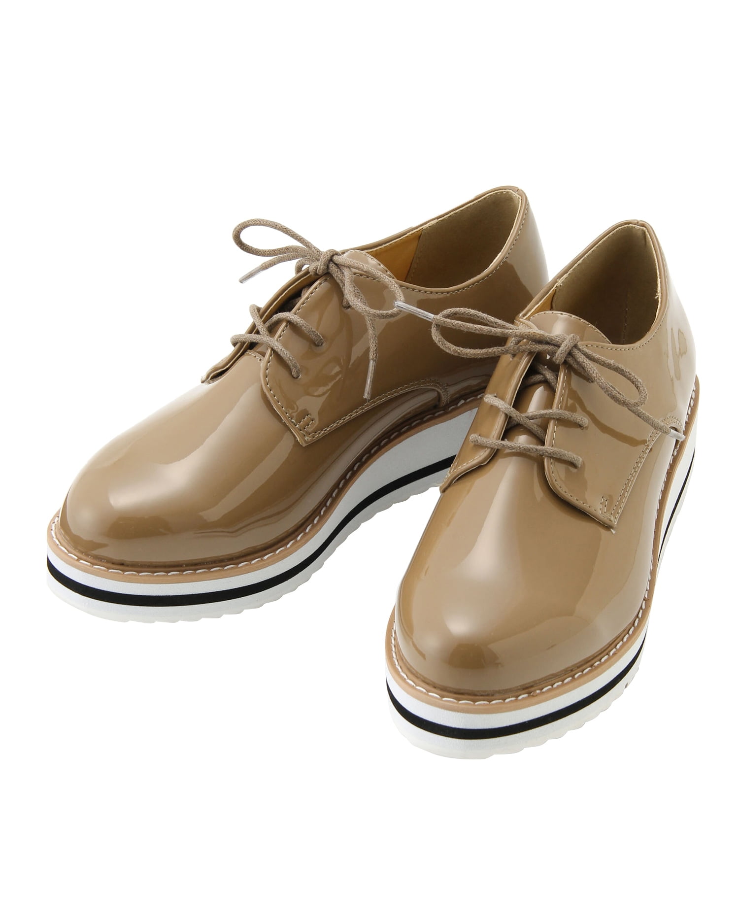 スタイリッシュなエナメルのドレスシューズは、ラバーソールでスポーティ要素をプラスしたデザインが新鮮。合わせやすいベーシックなカラーに映えるステッチもアクセントになっています。安定感のあるフラットソールも厚みがあるので、脚長効果を期待出来るのも◎。スカートにもパンツにも合わせやすいのでデイリー使いにぴったりです。