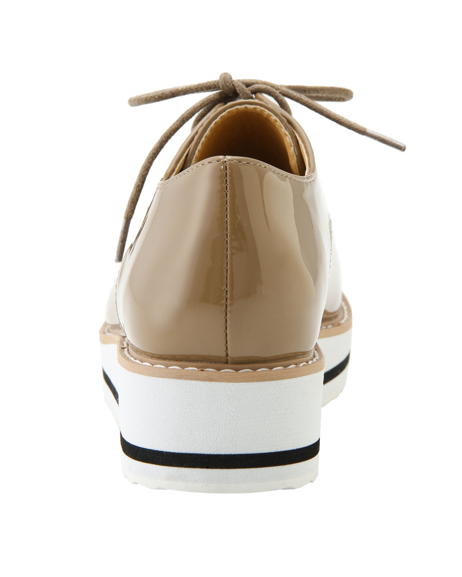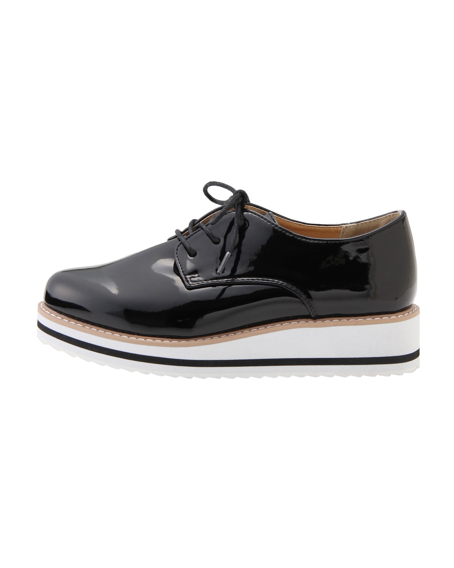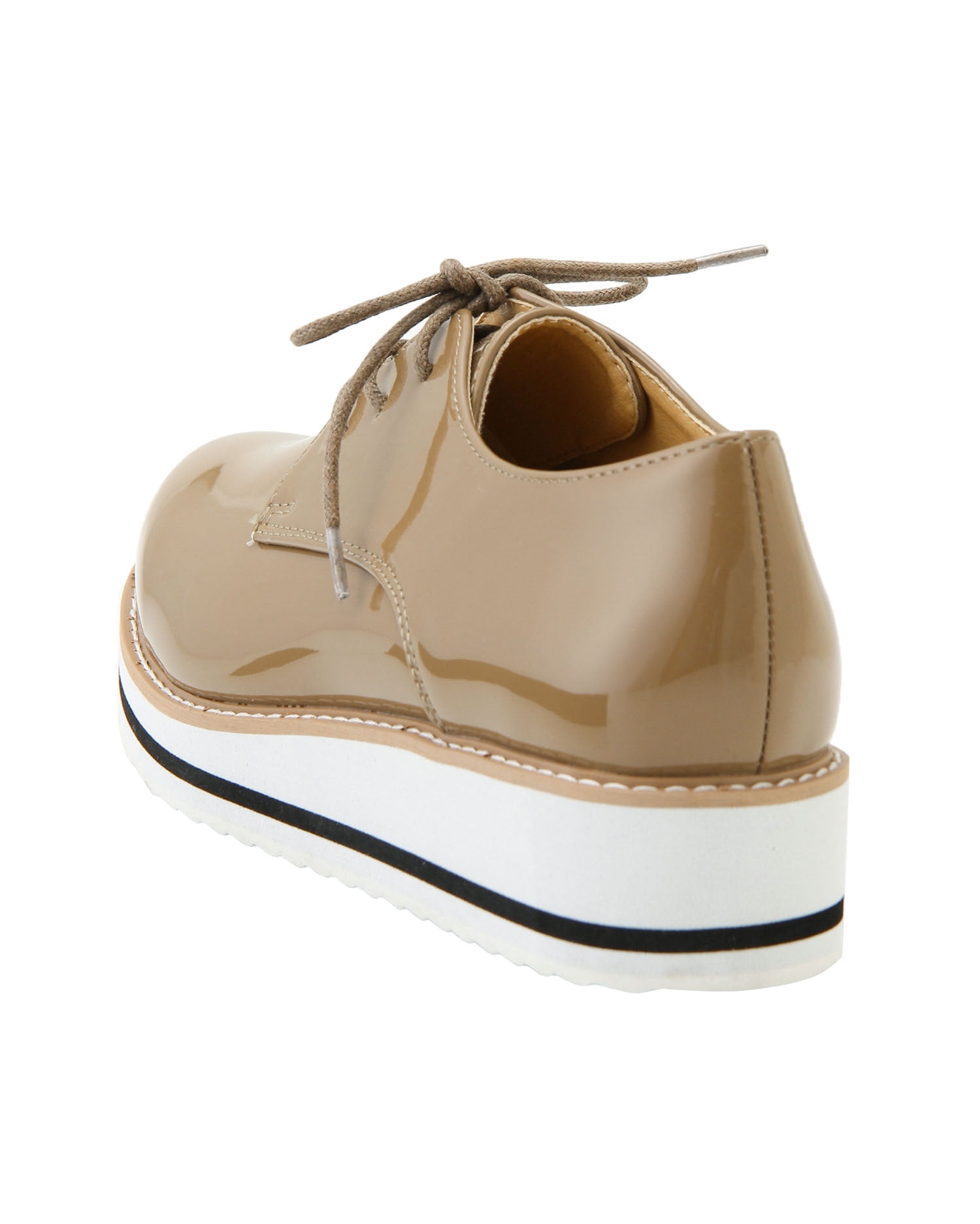 スタイリッシュなエナメルのドレスシューズは、ラバーソールでスポーティ要素をプラスしたデザインが新鮮。合わせやすいベーシックなカラーに映えるステッチもアクセントになっています。安定感のあるフラットソールも厚みがあるので、脚長効果を期待出来るのも◎。スカートにもパンツにも合わせやすいのでデイリー使いにぴったりです。