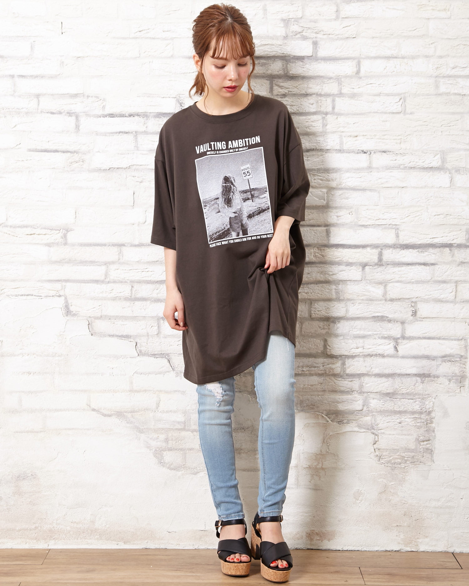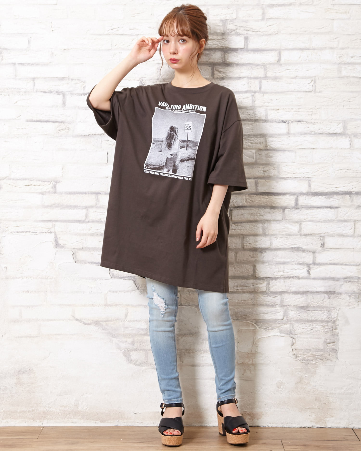 大人のリラックスカジュアルにオススメのチュニック丈のTシャツ。ビックサイズのシルエットが快適な着心地とこなれ感をプラス。柔らかくて伸縮性の高いカットソー素材で、普段使いに重宝します。フロントの転写プリントとバックのロゴデザインがスタイリッシュな雰囲気に。ヒップを覆う長めの裾丈で自然に体型をカバーしてくれる効果も期待できます。程よい厚みでシーズン長く愛用できます。