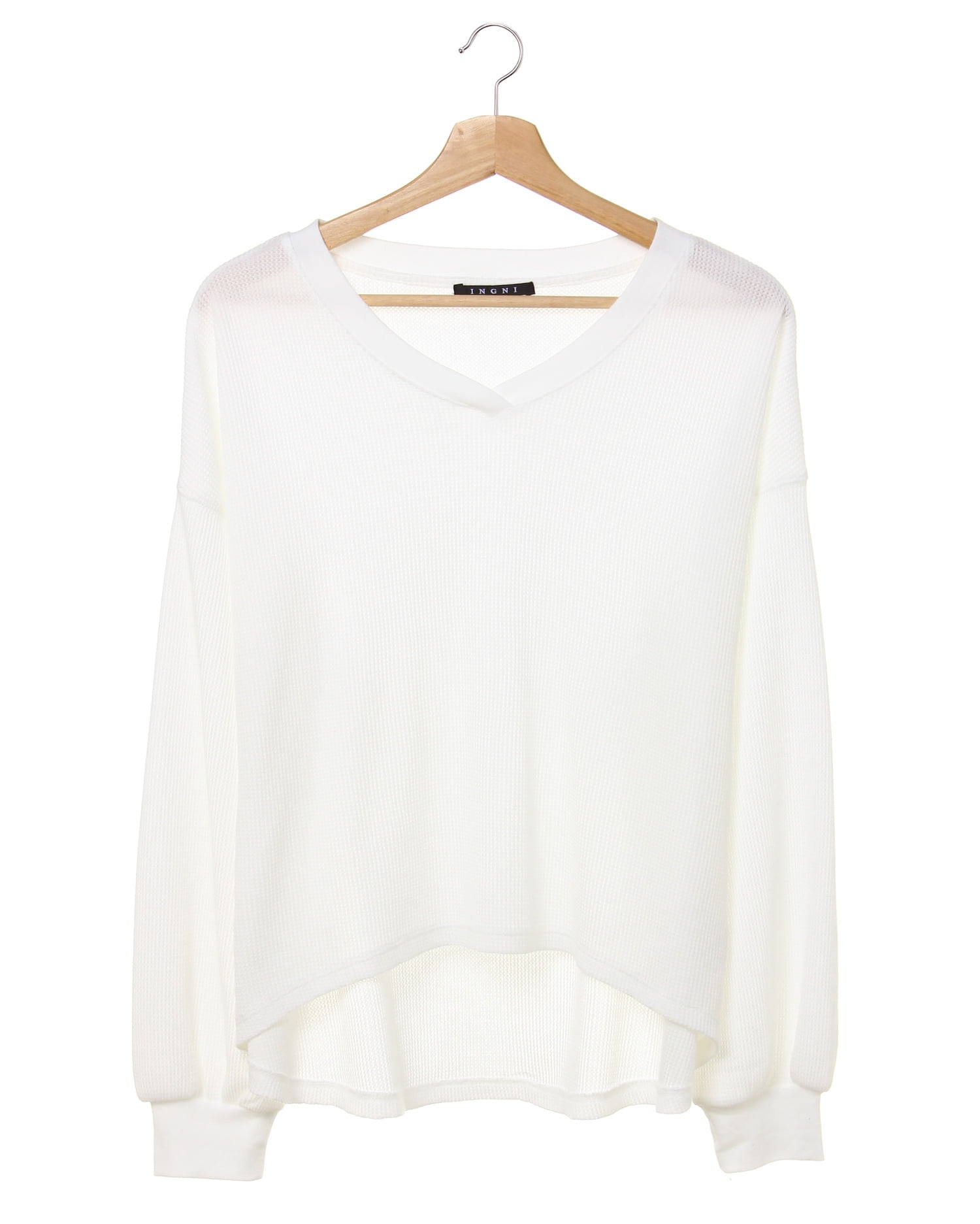 トレンドのワッフル素材で仕上げたチュニックトップスです。ゆったりとしたシルエットでリラックス感のあるカジュアルスタイルに。さらりとしたワッフル素材は肌当たりも良く、デイリーユースにぴったりです。首元はVネックですっきり着こなせるのもポイント。インナーを合わせた着こなしもオススメです。後ろ部分の裾を長くすることで、気になるヒップをカバーしてくれるのも◎。