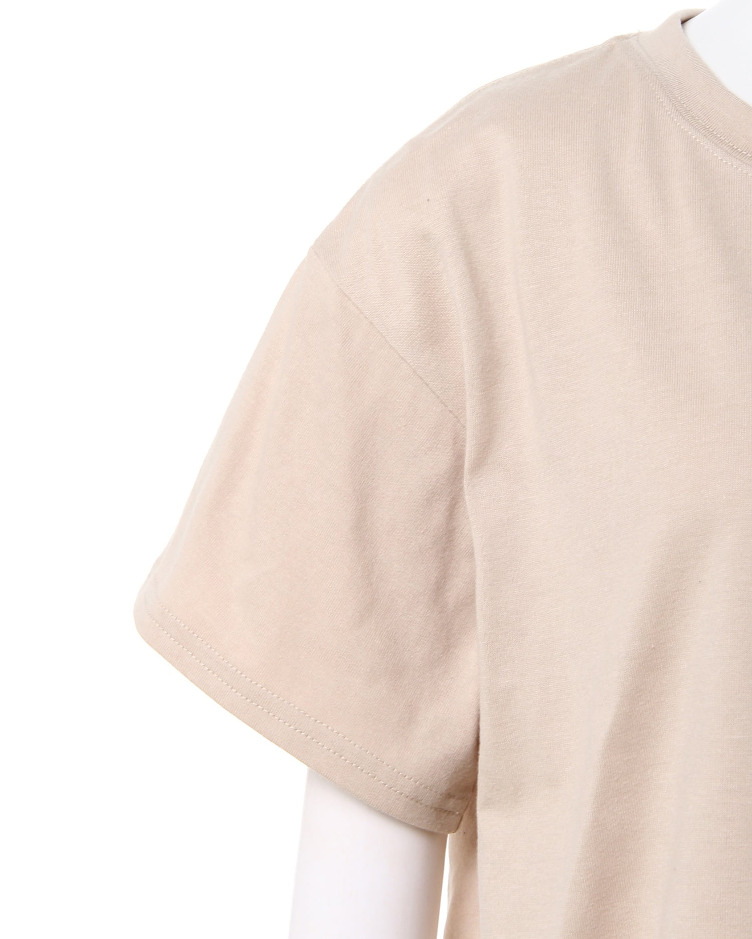今年らしいショート丈のTシャツはバックスタイルも抜かりないレトロプリントがアクセント。程よい厚みの生地でロングシーズン活躍するTシャツは、何枚でも揃えたい必須アイテム。ベーシックなシルエットは、どんなボトムスともバランスのいい着こなしを叶えます。1枚ではもちろん、ジャケットやカーデのインナーとしてもオススメ。シンプルなフロントの胸元にあしらったスタイリッシュな刺しゅうロゴにも注目。