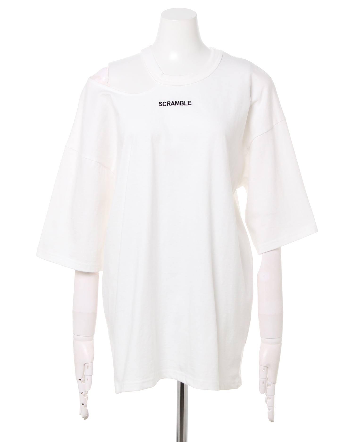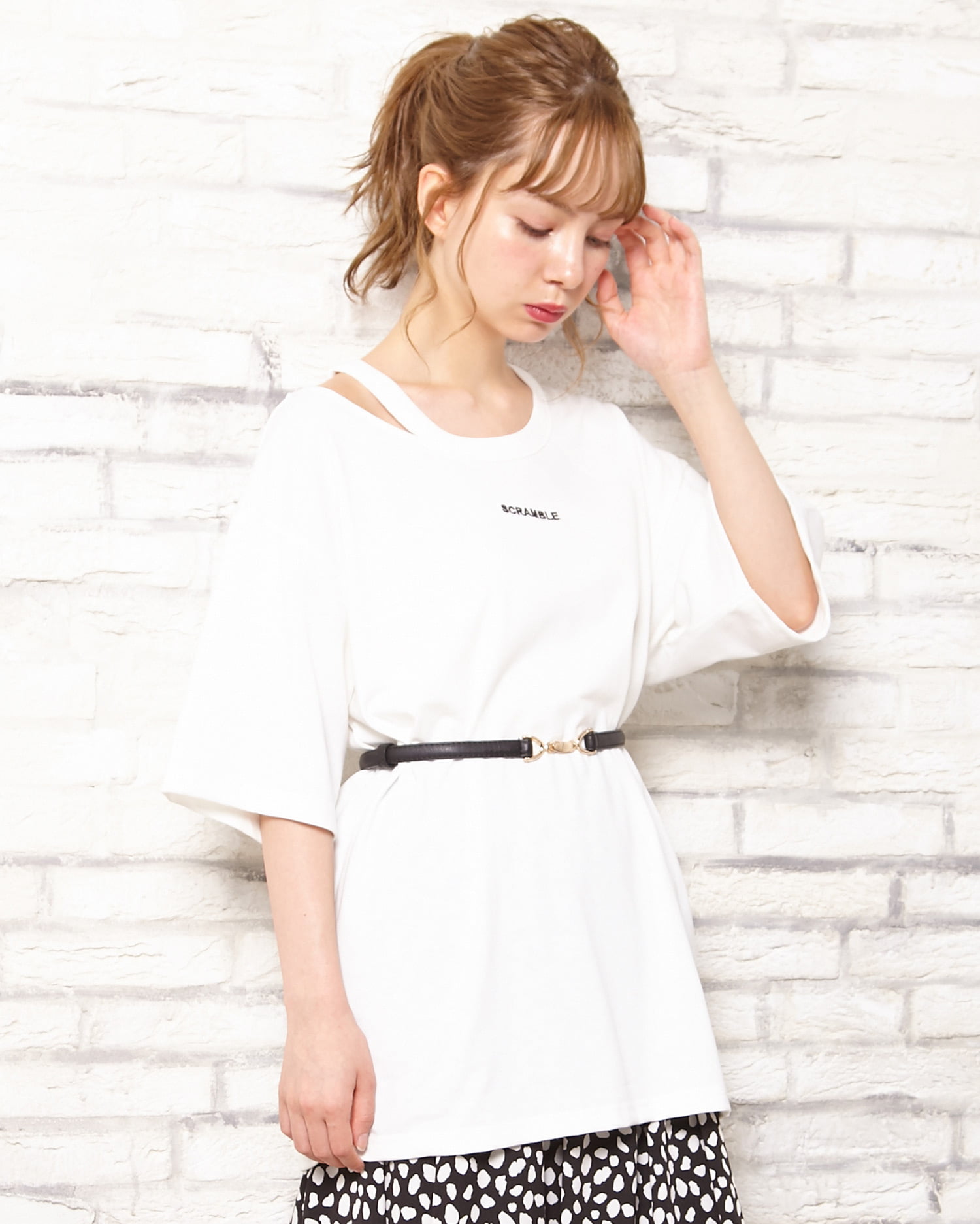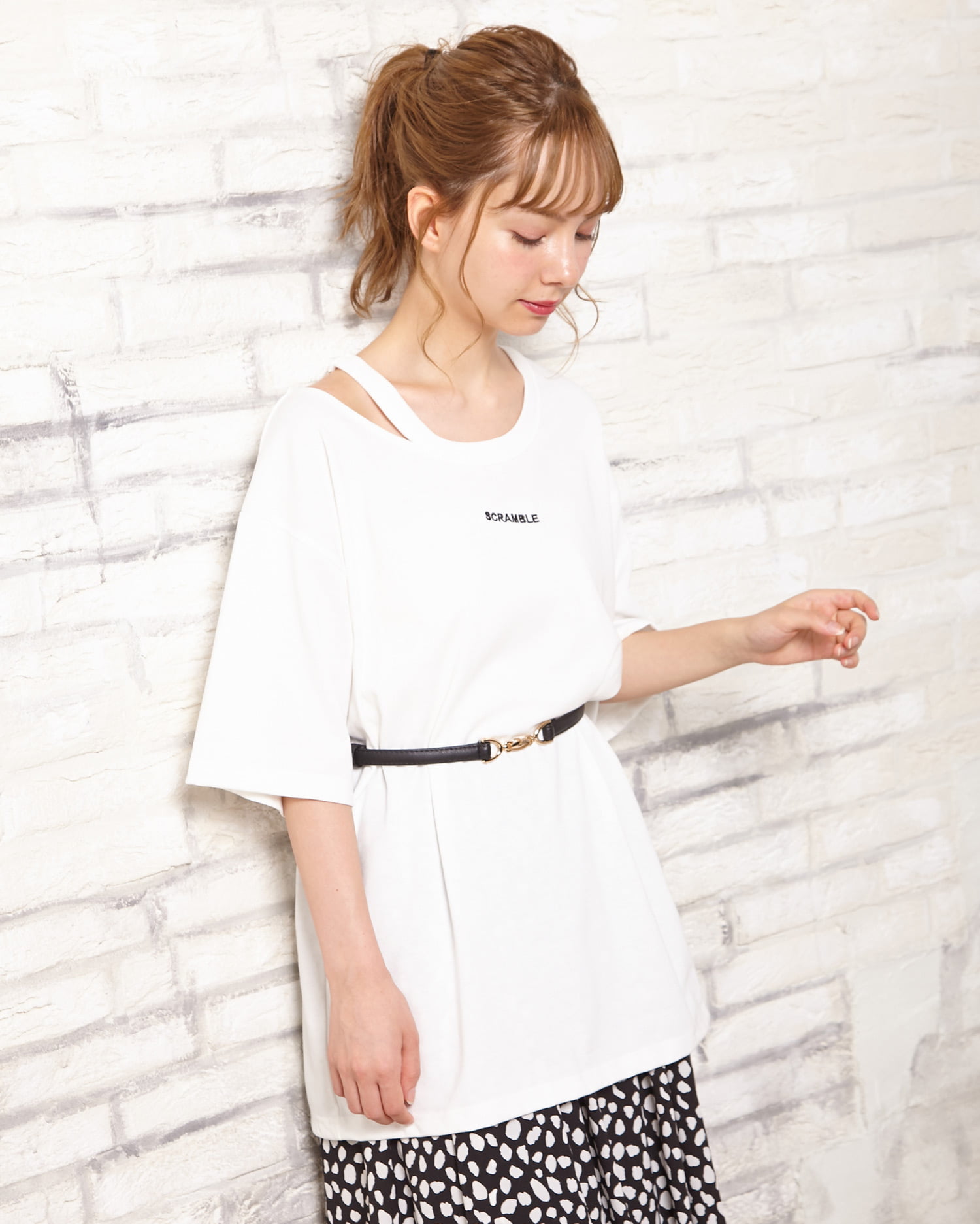 ドロップショルダーとゆったりシルエットでトレンド感たっぷりに着こなせるTシャツ。ネック部分の大胆なカッティングがクールな印象、華奢なデコルテラインを演出します。ベーシックなワンカラーもデザインで魅せる着こなしを実現。フロントには刺しゅうロゴをあしらってアクセントにしています。パンツと合わせてボーイズライクなスタイルはもちろん、スカートを合わせたミックススタイルも◎。