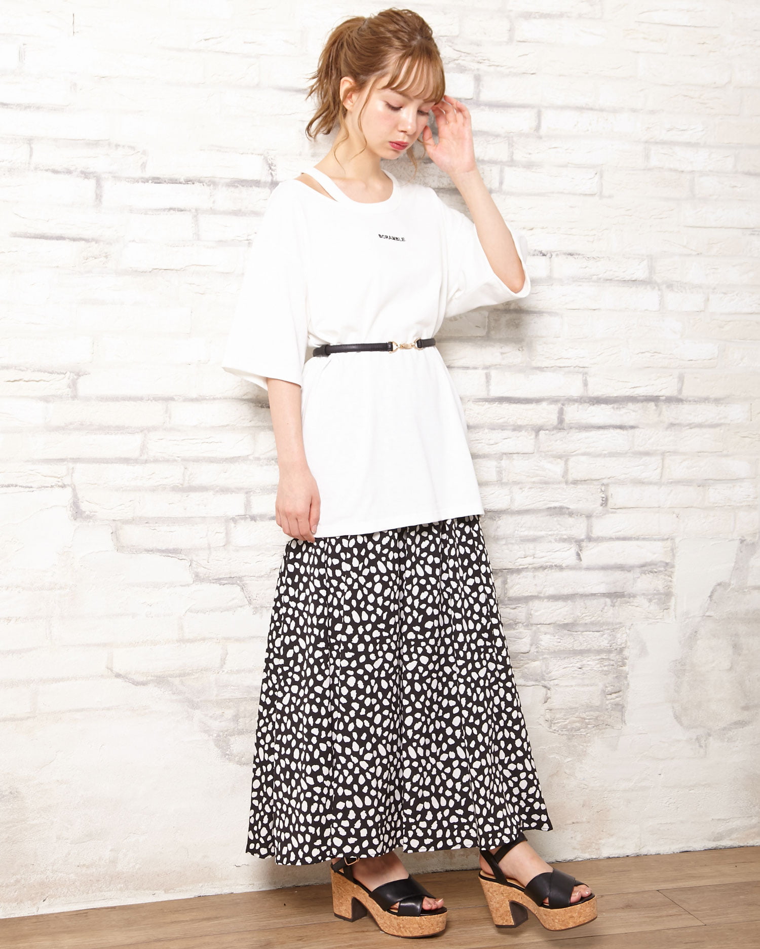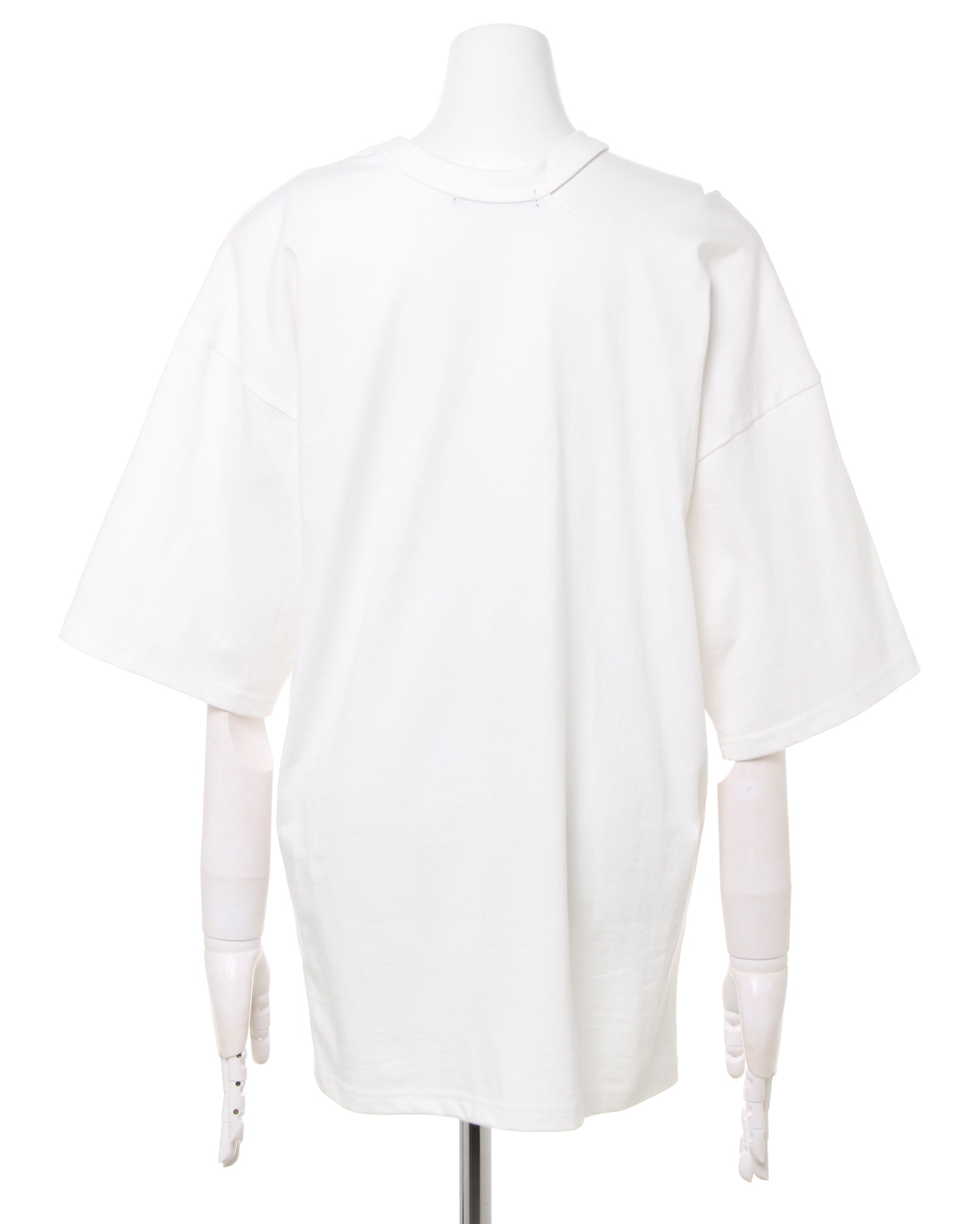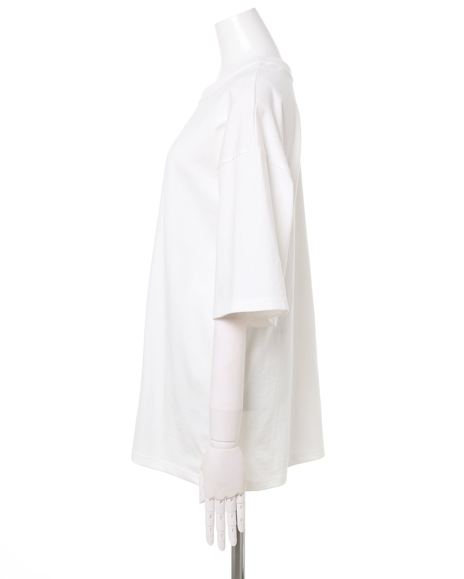 ドロップショルダーとゆったりシルエットでトレンド感たっぷりに着こなせるTシャツ。ネック部分の大胆なカッティングがクールな印象、華奢なデコルテラインを演出します。ベーシックなワンカラーもデザインで魅せる着こなしを実現。フロントには刺しゅうロゴをあしらってアクセントにしています。パンツと合わせてボーイズライクなスタイルはもちろん、スカートを合わせたミックススタイルも◎。