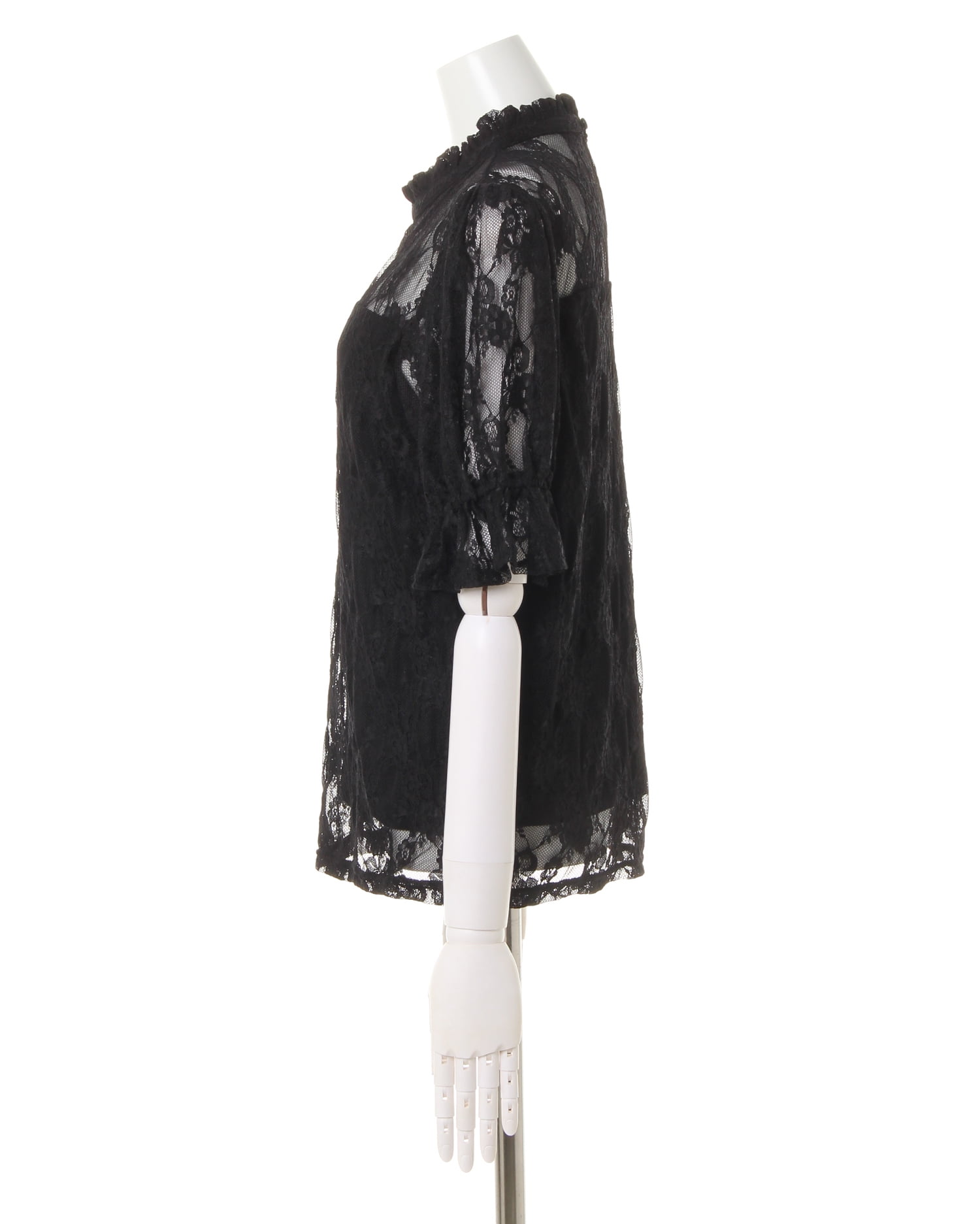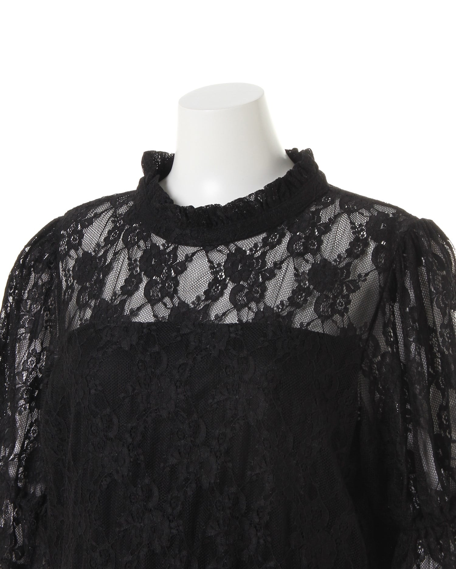 ハイネックとボリューム袖でどんなボトムスともバランス良く合わせられるレーストップス。繊細なレースのヨーク部分からほんのり透ける肌がエレガントなデザインに。顔周りを明るく華やかに見せてくれます。透け感のあるレースも裏地を貼り合わせているので、インナーを気にせず着られて安心。シンプルなワンカラーも表面感のある生地で、存在感のある1枚に仕上がりました。