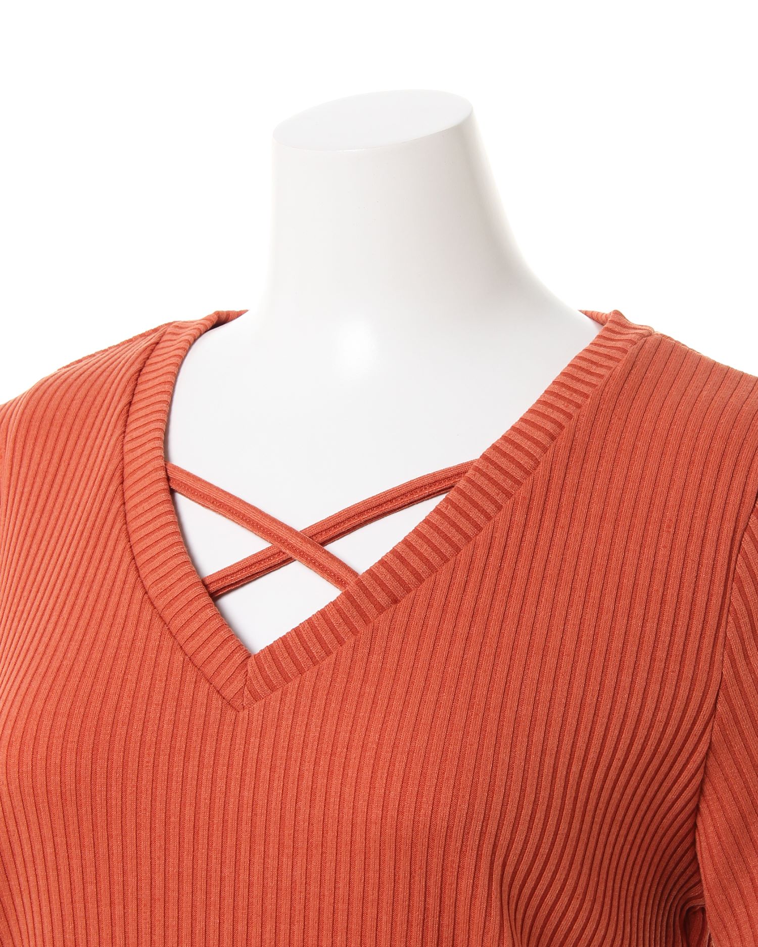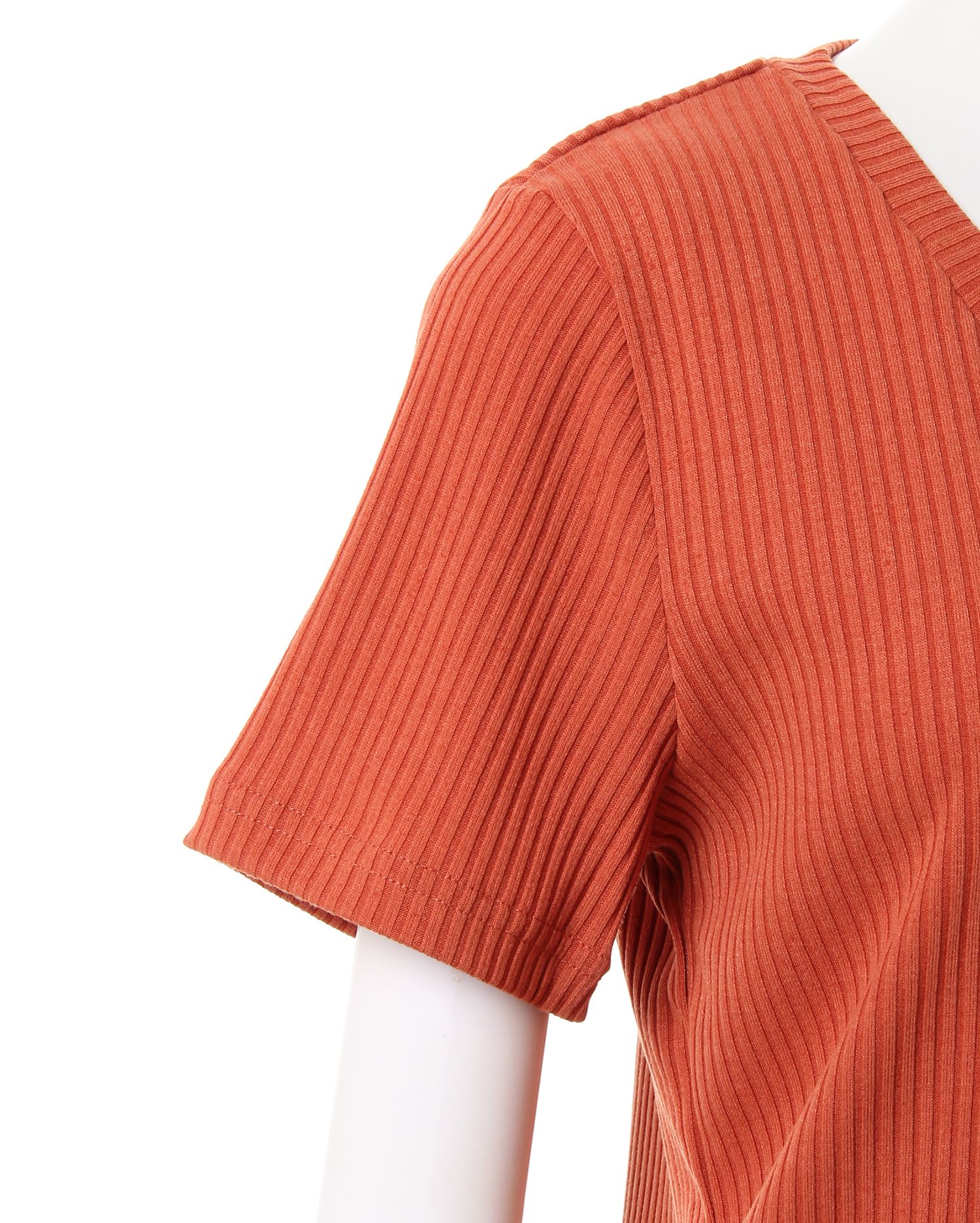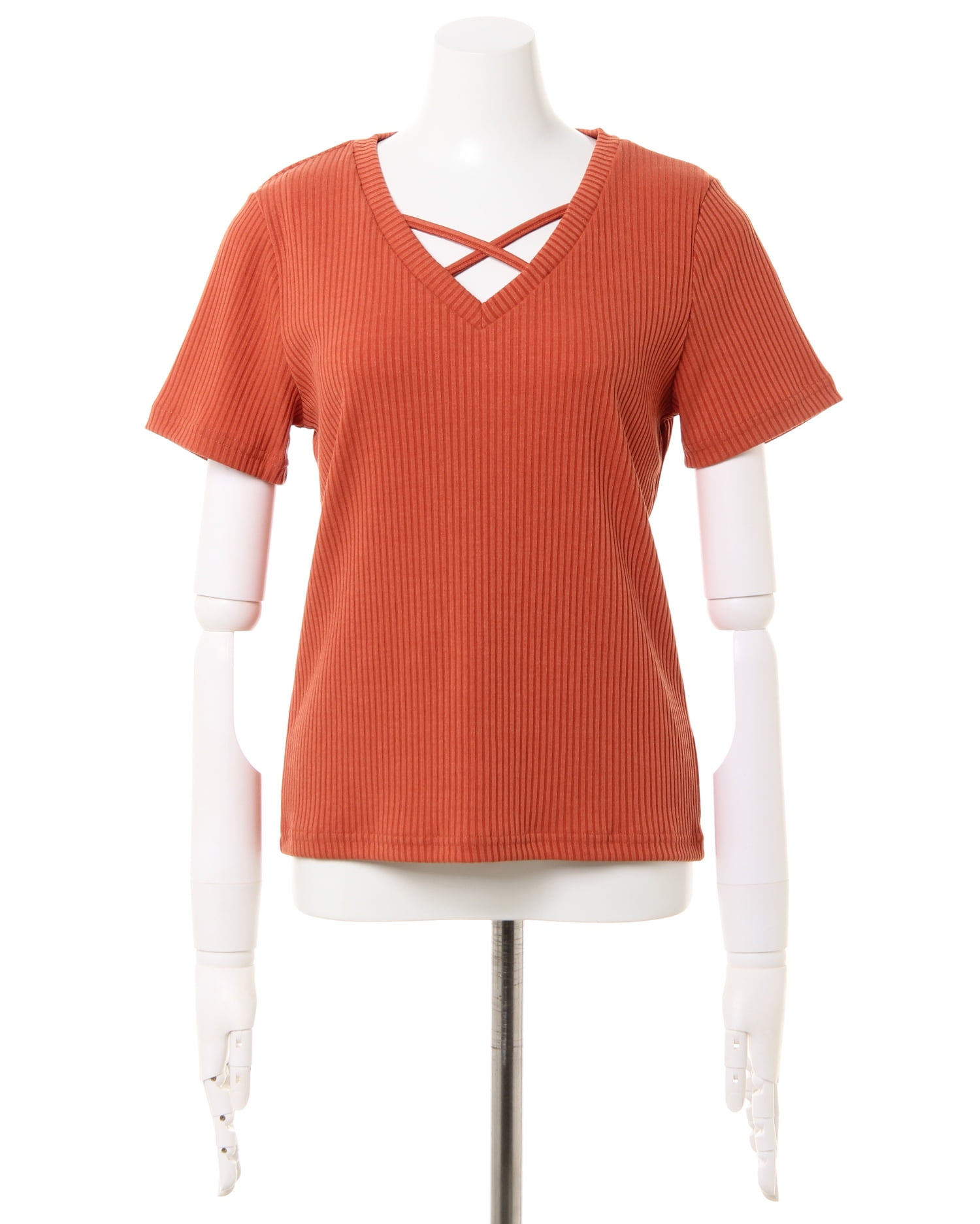 デコルテ部分のクロスデザインがすっきりとした印象のリブトップス。細畝のリブがボディを華奢に見せ、スタイルアップを叶えます。程よく開いたVネックが大人っぽい。ベーシックなアイテムなのでどんなボトムスともバランス良く合わせられます。1枚で着るのはもちろん、ジャケットやブルゾンのインにも着回せるのでシーズン長く活躍します。