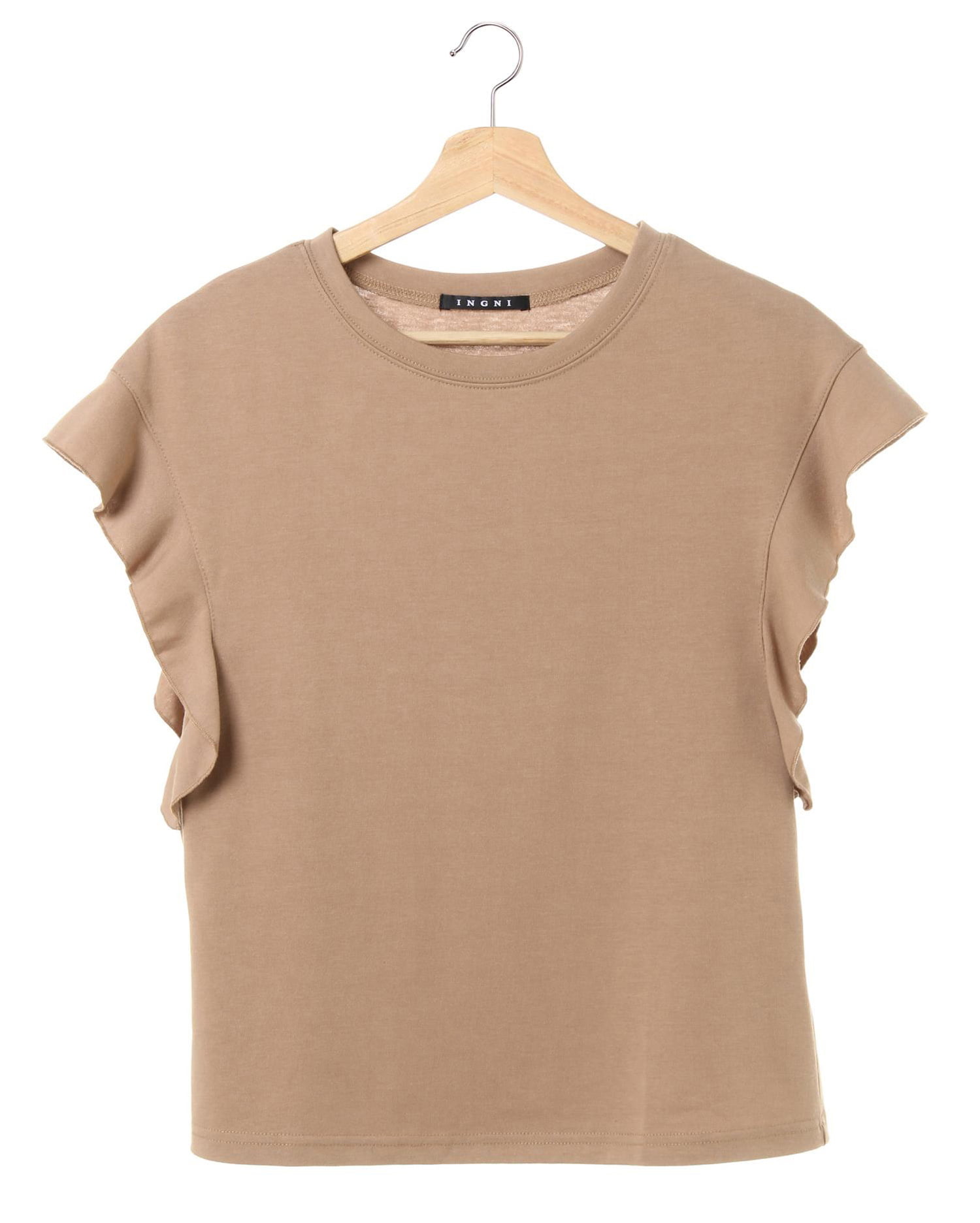 たっぷり入れた袖口のフリルがトレンド感のある着こなしを演出してくれるトップスです。伸縮性のある柔らかなカットソー素材は、肌触りが良く普段使いに重宝します。アームホールはインナーが見えにくいよう別布を貼って機能的な作りになっているのも注目。ワンカラーで合わせやすいのも魅力的です。カジュアルにもきれいめスタイルにも重宝するので揃えておくと便利。