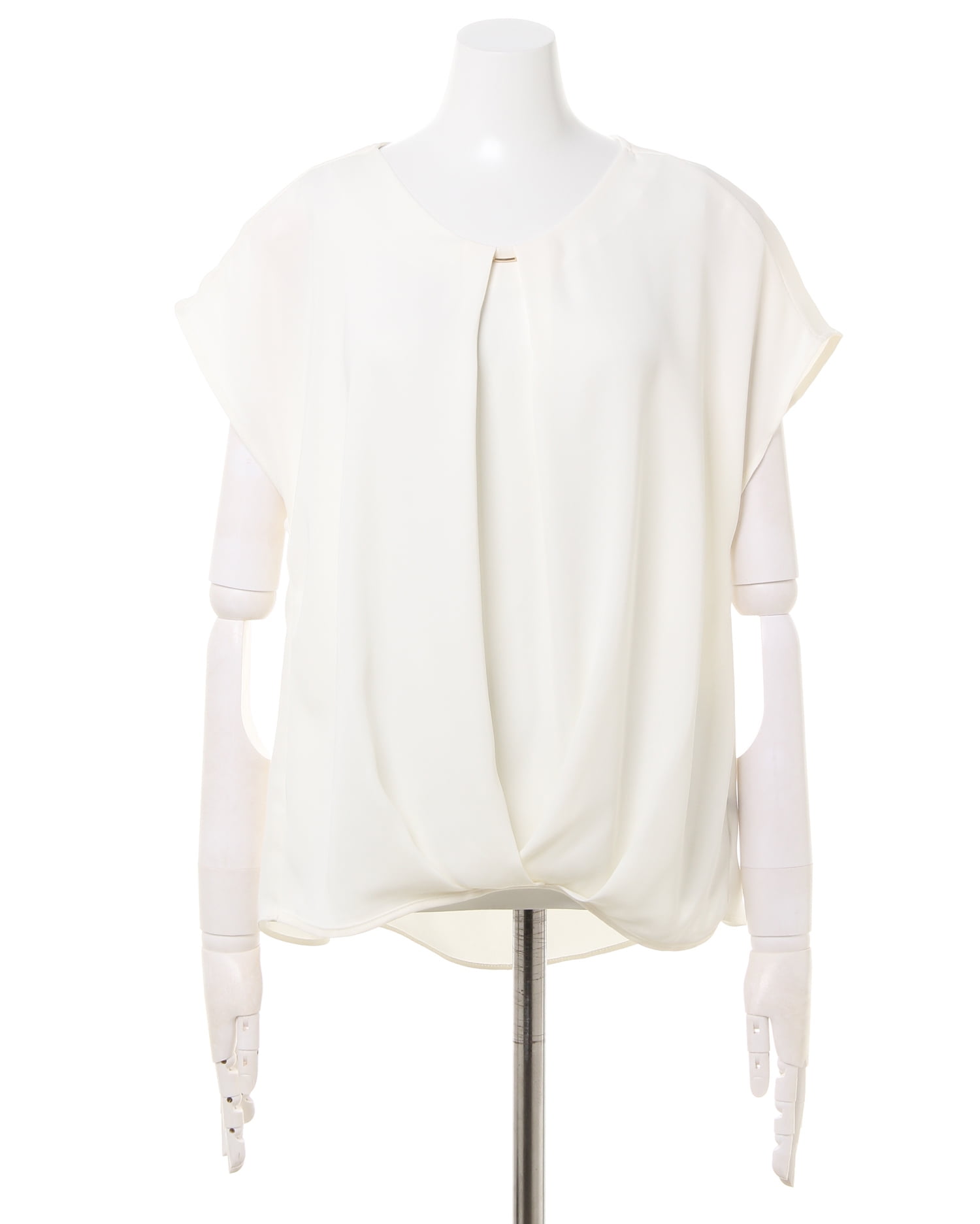 シンプルで着回し力抜群のブラウスはオンオフ問わずに活躍するオススメの1枚。フロント部分にはタックを入れてふんわりと。きれいなドレープが出るように計算された美シルエットは、気になるお腹周りもすっきり見せてくれます。さらりとした肌触りの生地で快適な着心地。ワンカラーに襟元のメタリックなバーがポイントです。カラーバリエーションも豊富なので何枚も欲しくなること間違いなし。