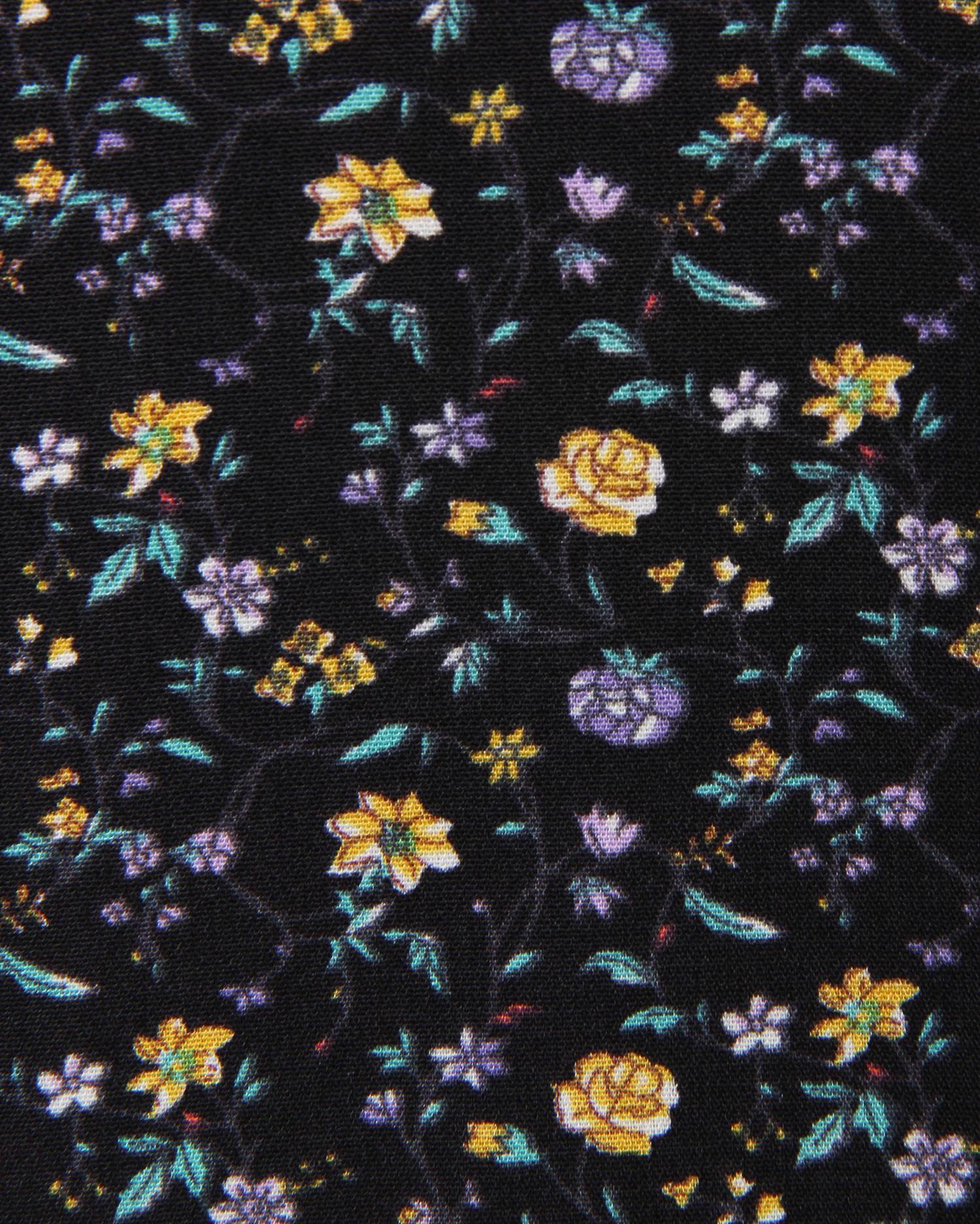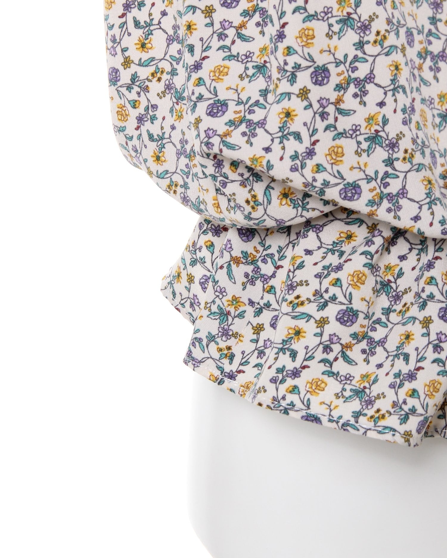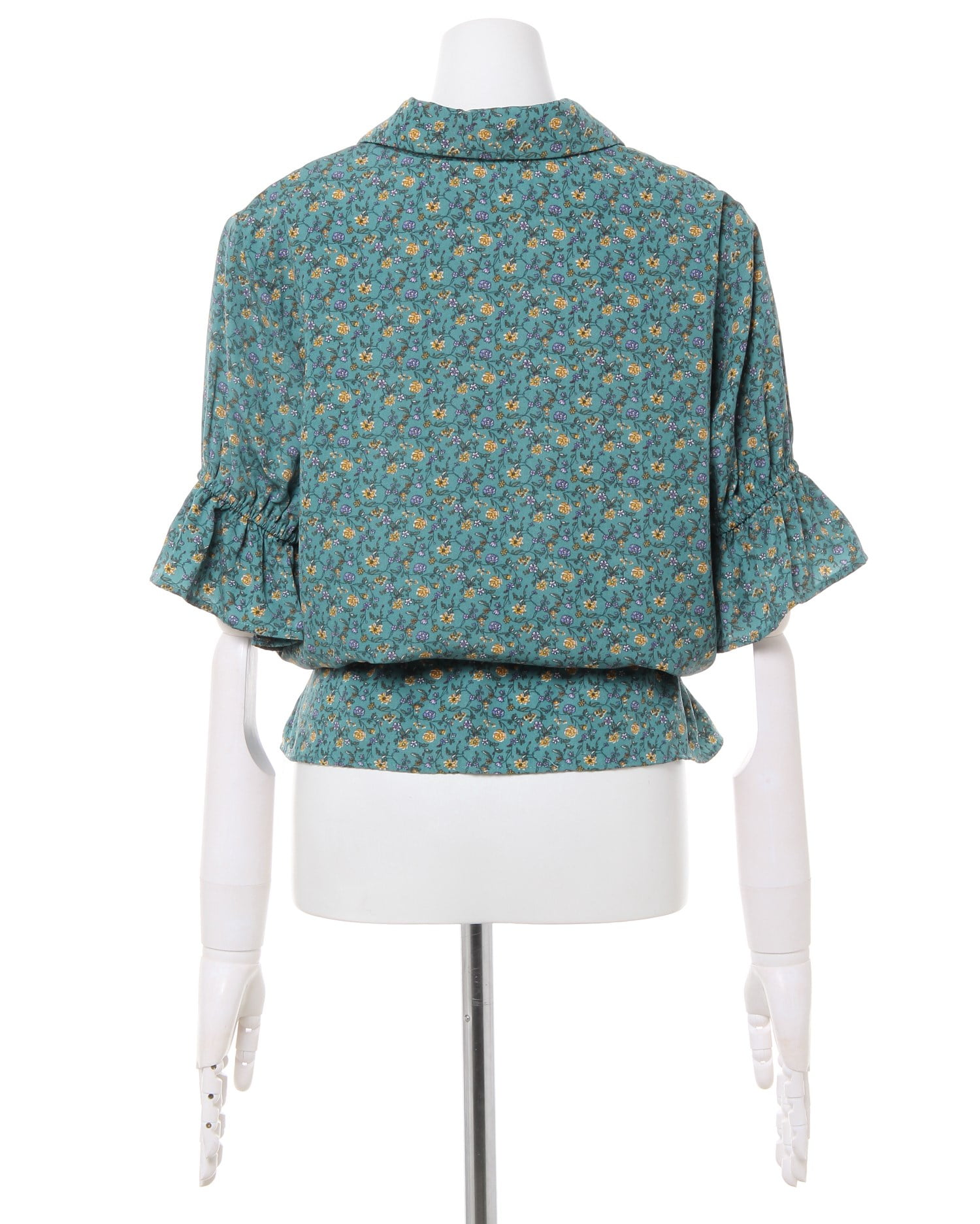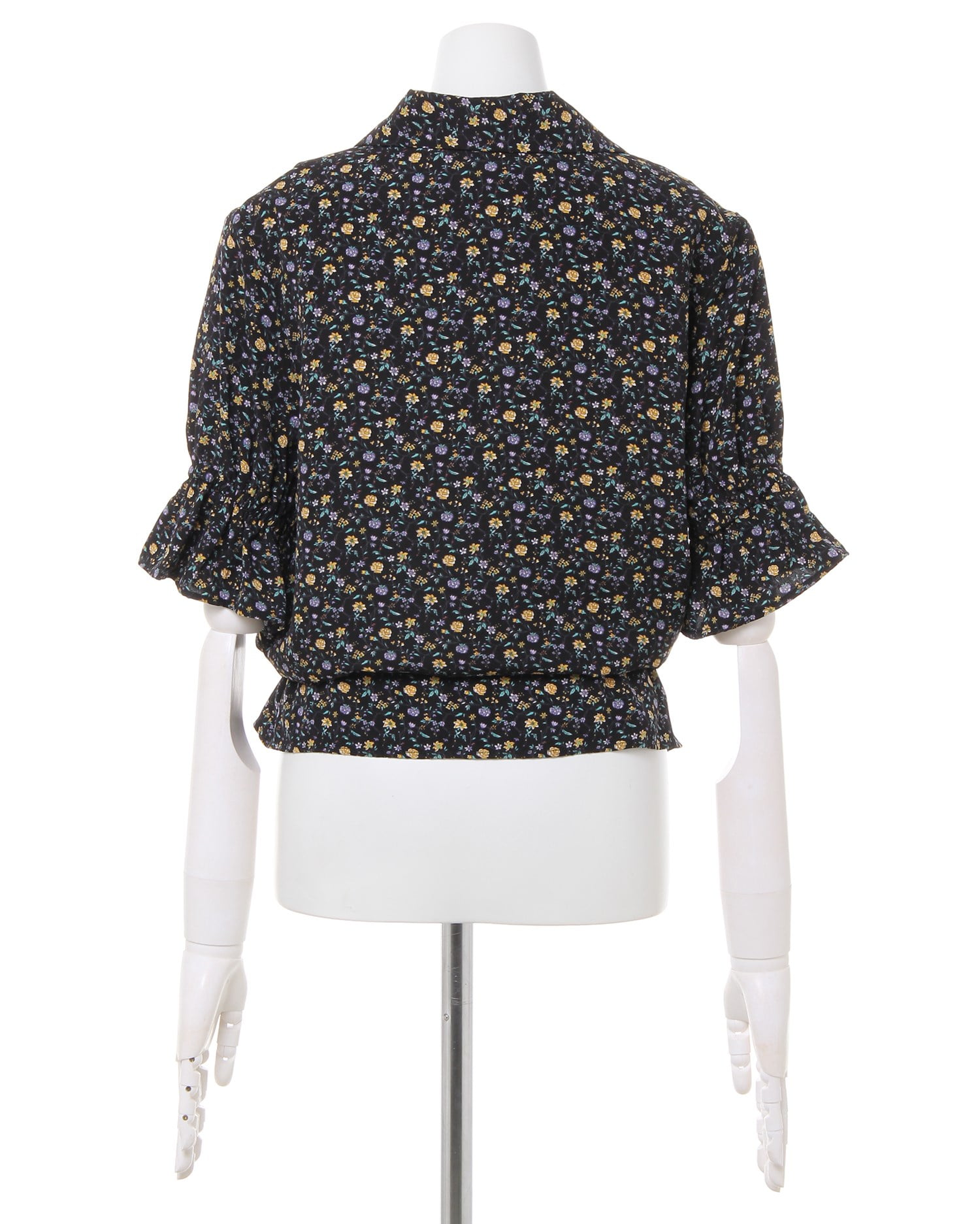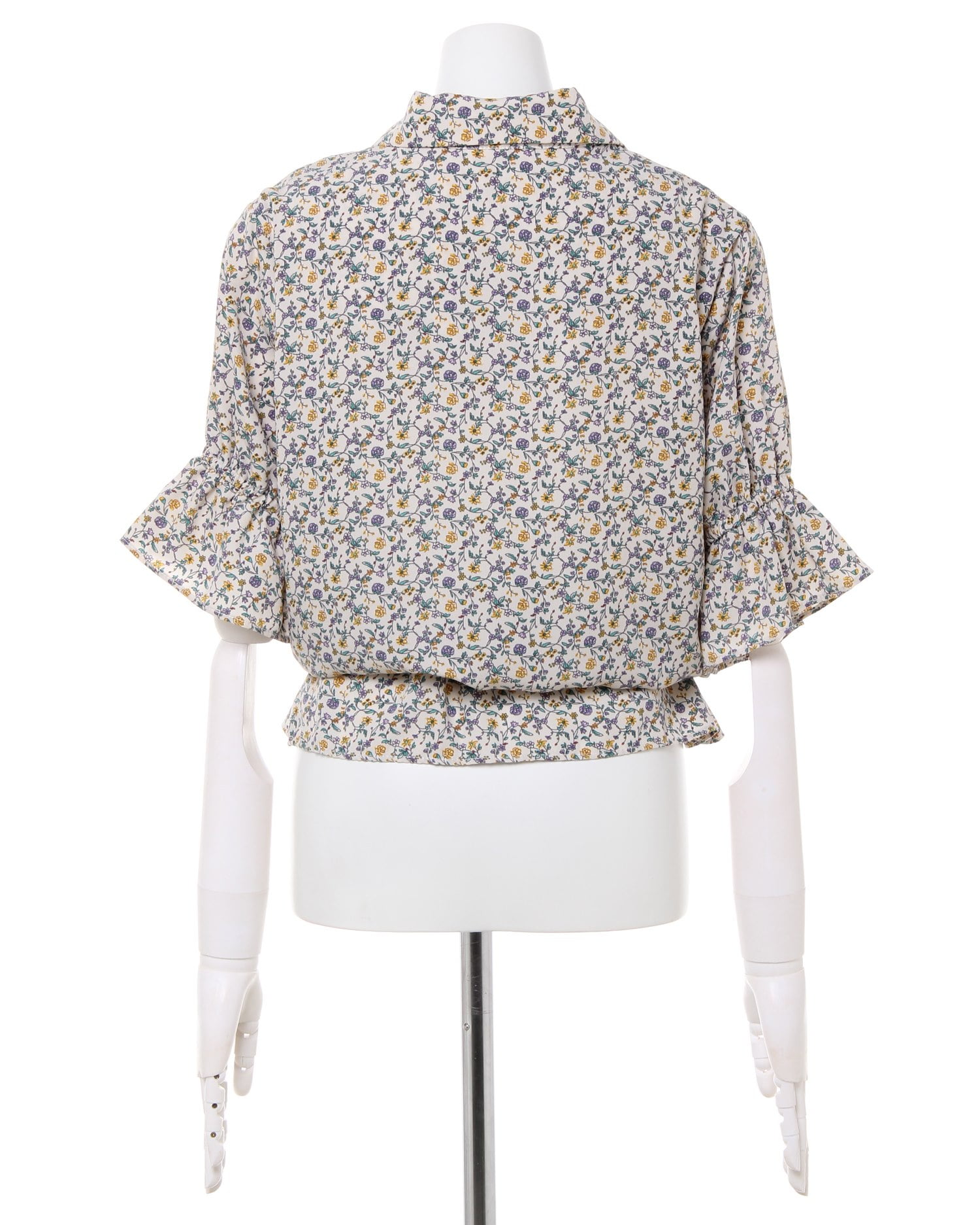 フェミニンなフラワープリントが着こなしのアクセントになるブラウス。小さめのフラワーと落ち着いたカラー使いで大人っぽく着こなせます。デコルテラインをきれいに彩る開襟デザインも◎。ウエスト部分にはドローストリングをあしらい、絞ることでメリハリのあるスタイルが完成します。フロントのボタンは全て開くので、羽織りとしても着回せる優秀アイテムです。