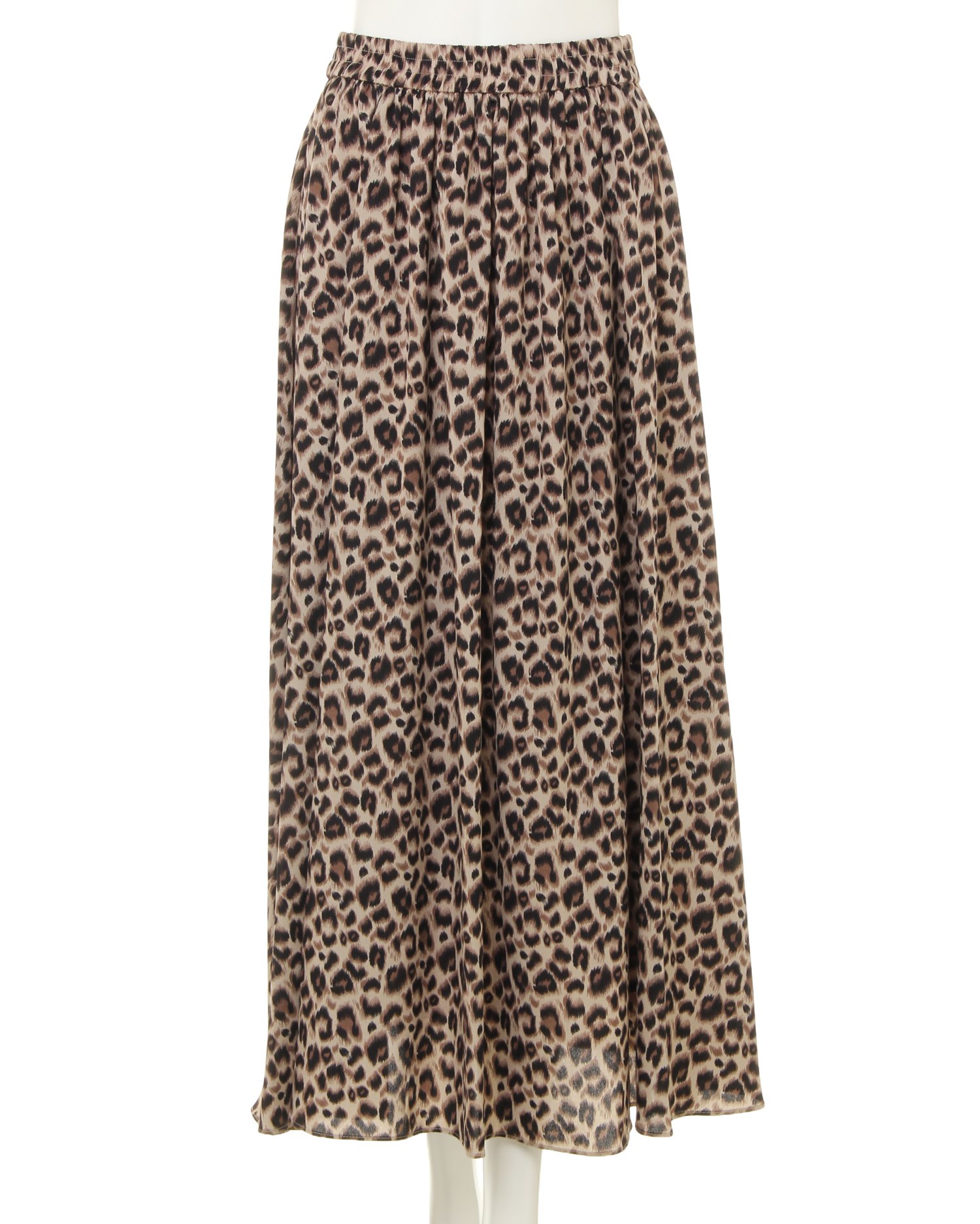 軽やかな素材で上品に着こなせるヒョウ柄のロングスカート。存在感のあるスカートは、フレアシルエットが女性らしさを引き立てます。すっとしたラインでスタイルアップ効果も期待できる優れもの。ウエストゴムなので脱ぎ穿きも楽チンです。ボリュームのあるトップスと合わせたルーズな着こなしが◎。裏地付きでインナーを気にせず穿けるのも嬉しい。