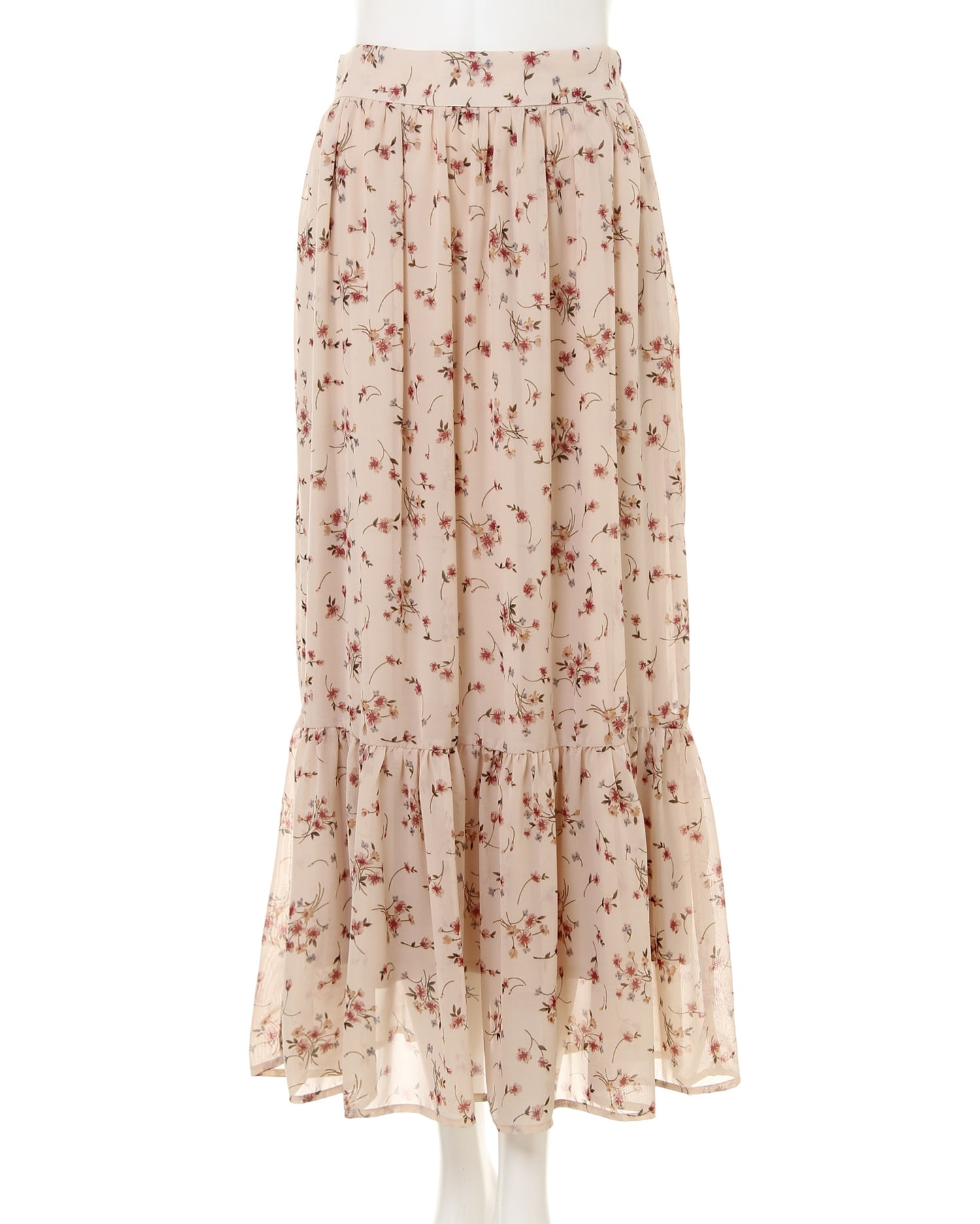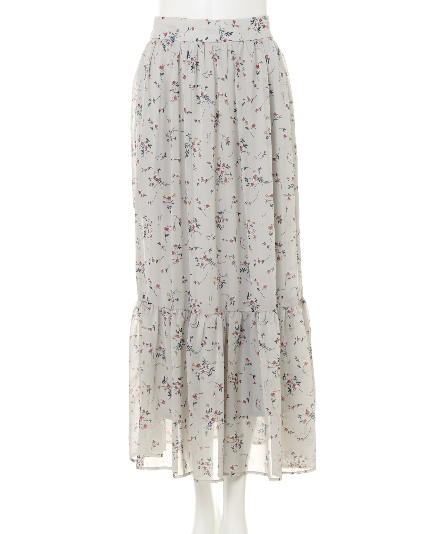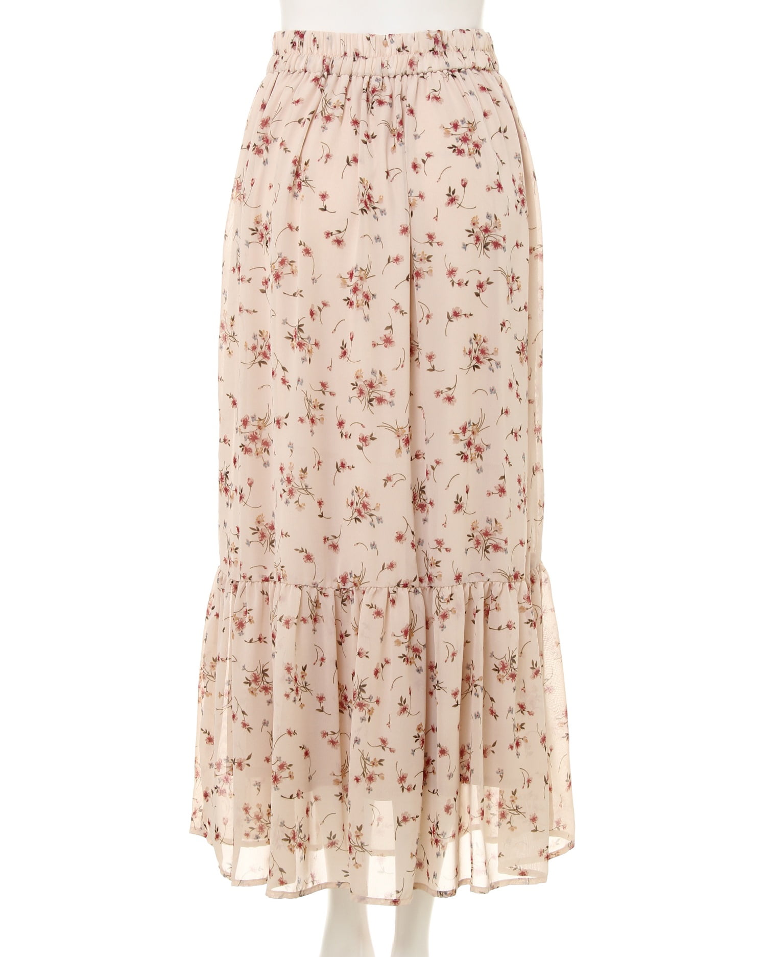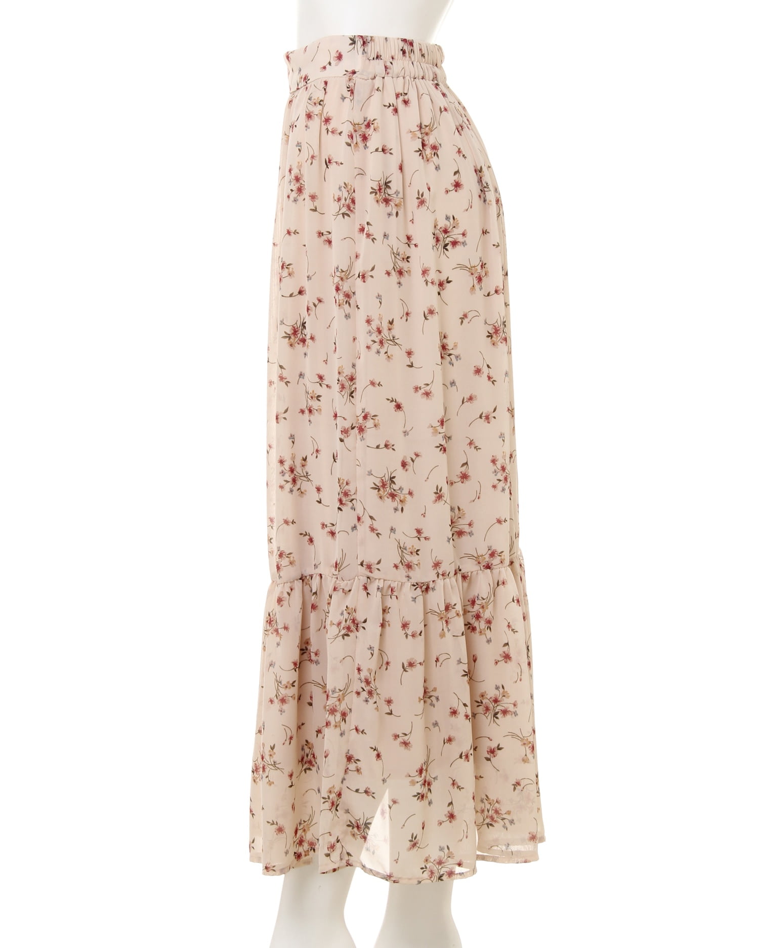 ふんわりとしたシフォン素材に散りばめられた花柄プリントがクラシカルでフェミニンなロングスカート。歩くたびに揺れるティアードデザインがスタイリッシュさと華やかさをプラス。ウエスト後ろ部分はゴム仕様でストレスフリーな着心地、着脱も楽チンです。滑らかな裏地付きで足さばきもスムーズ。パーカーを合わせたミックススタイルや、トップスインにカーデを合わせたきれいめコーデも◎。