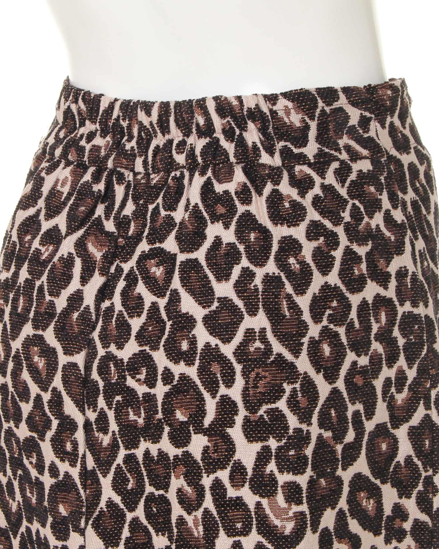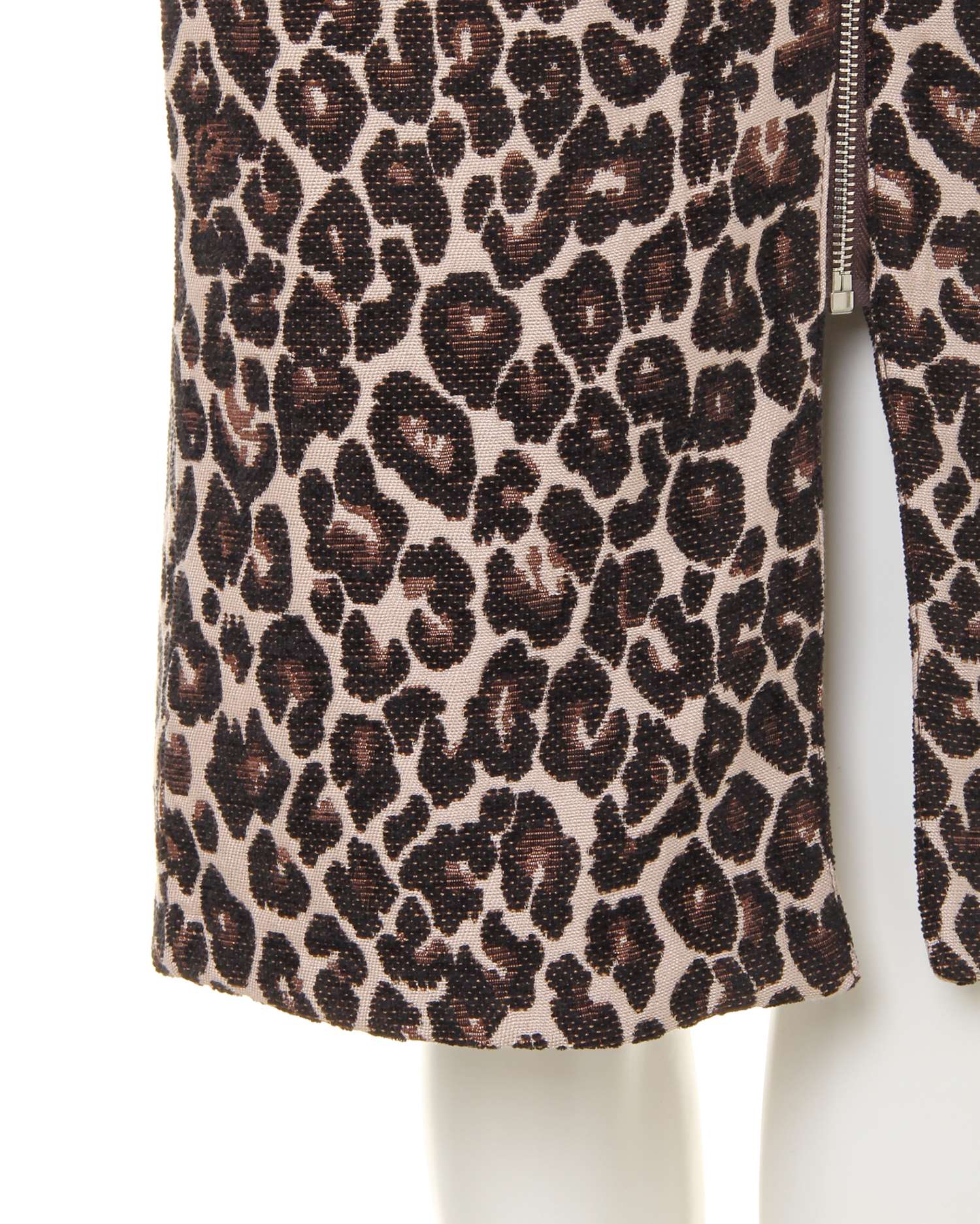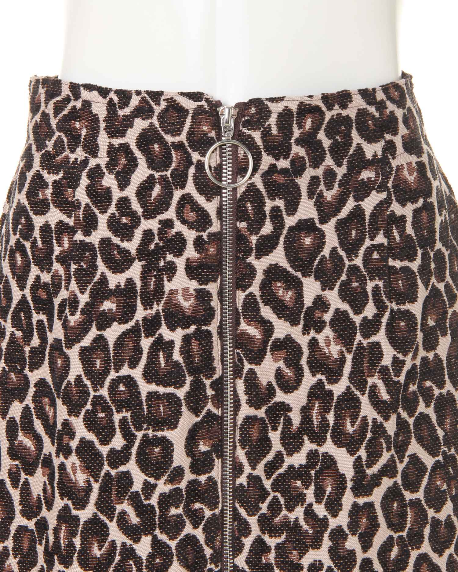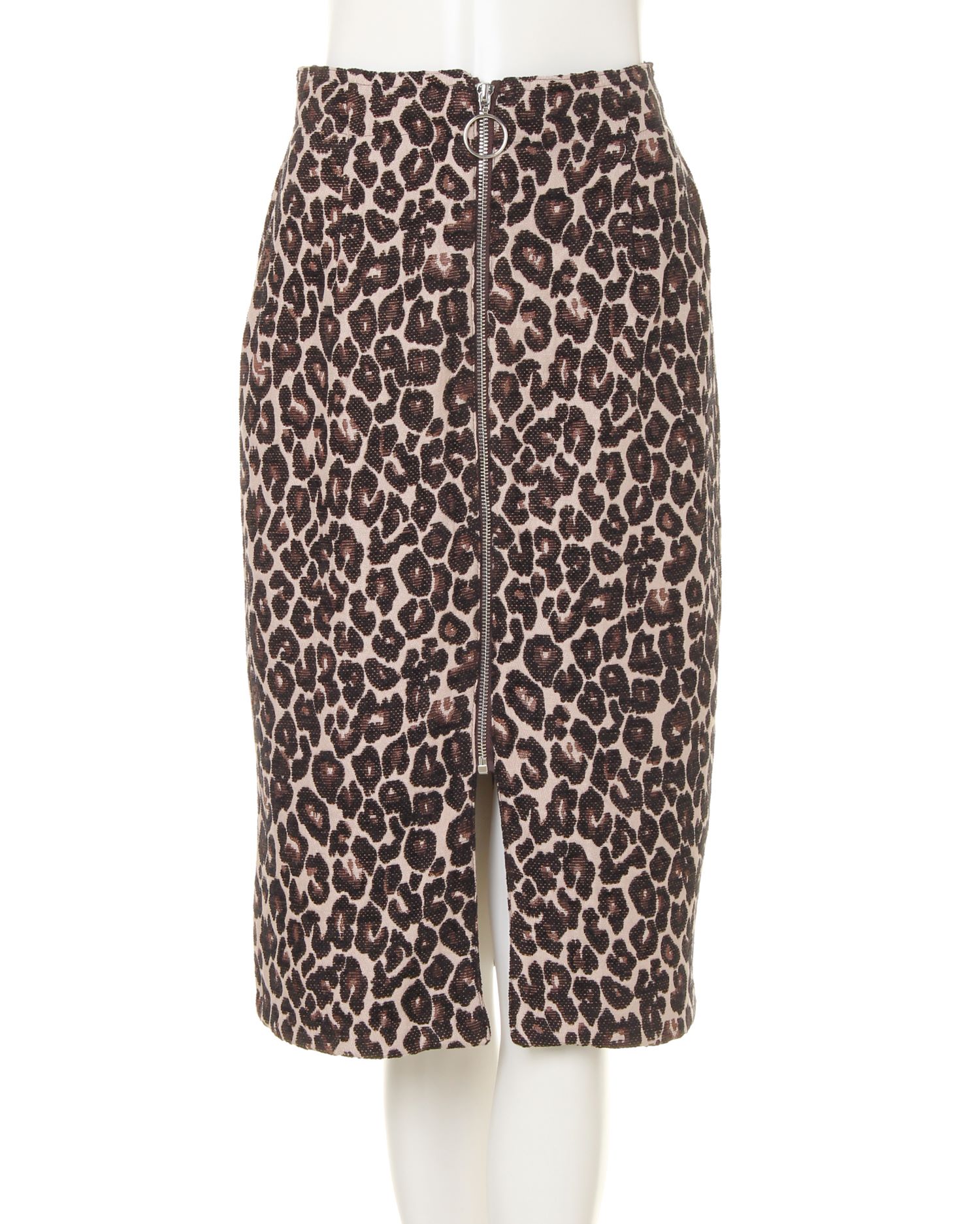 全体にあしらったレオパード柄がインパクト抜群のスカート。Iラインを強調し、スタイルアップを叶えてくれるナローシルエットが◎。リング付きのジップがクールなアクセントになっています。フロントにスリットを入れることで足さばきも軽快。バックウエストは動きやすいゴム仕様になっています。